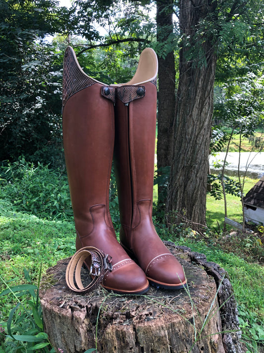 Since its inception, The Distinguished Rider has always been proud to offer custom Kingsley boots to our clients. Kingsley, a Dutch brand, is known for its customization features and 3-D configurator. Kingsley boots are laser cut and hand stitched in the factory in Portugal. They are measured four times throughout the manufacturing process to ensure the measurements are accurate. What can we say about Kingsley? We just love the products! These boots are known for quality, comfort, and limitless design options. Their beauty and grace is unparalleled!