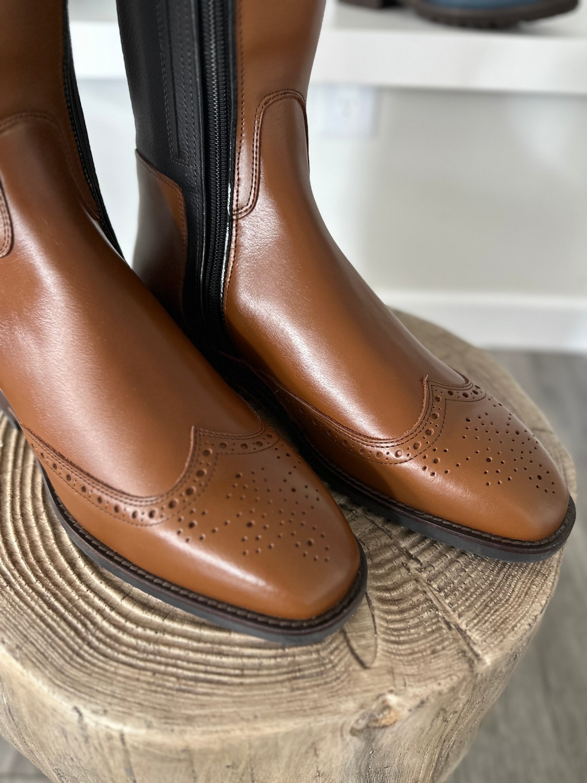 Description: Pull up Cognac base with crystals on top, brogue toe