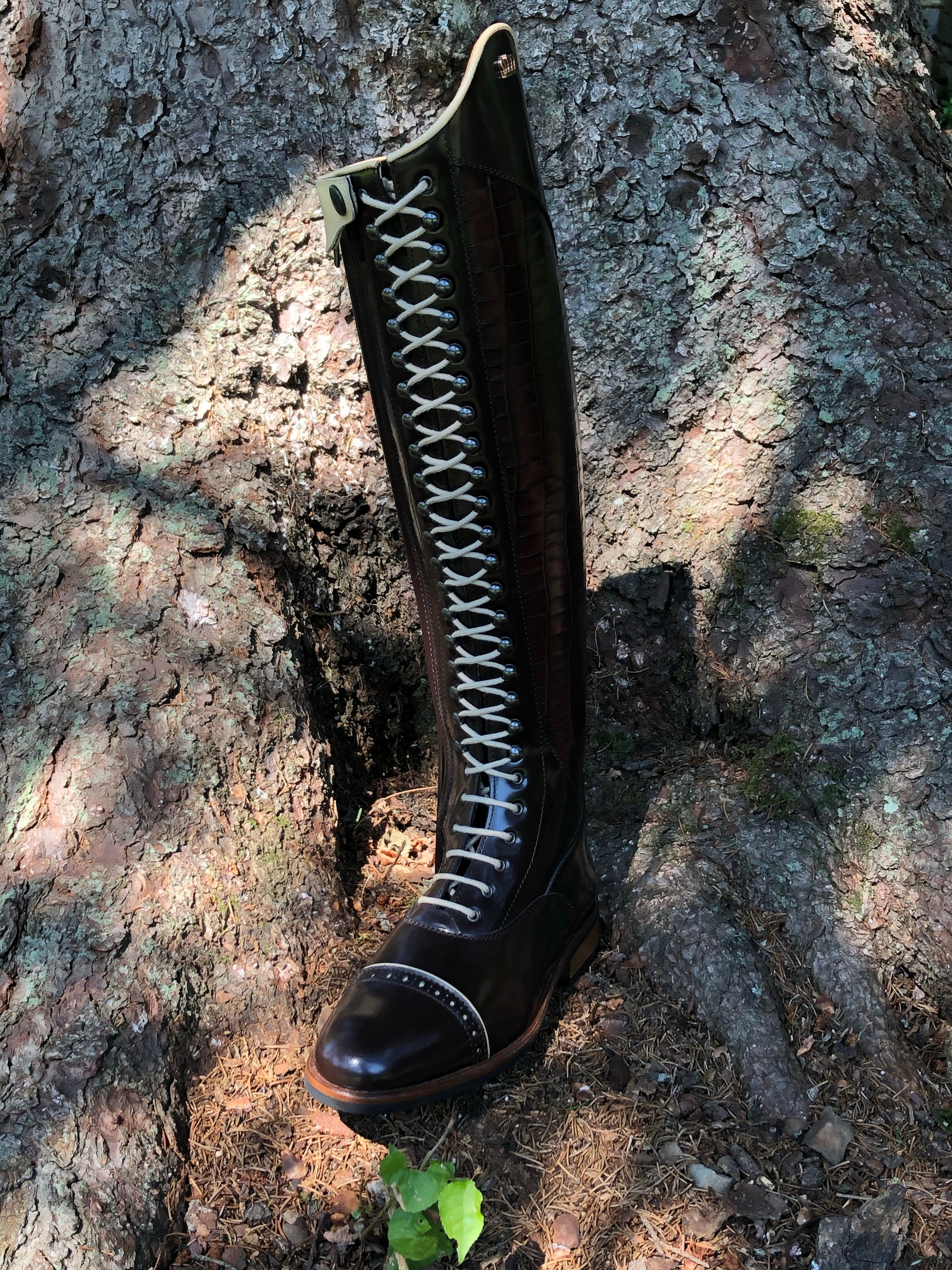 Uragano dark brown leather, croco beleza brown, beige laces and piping.