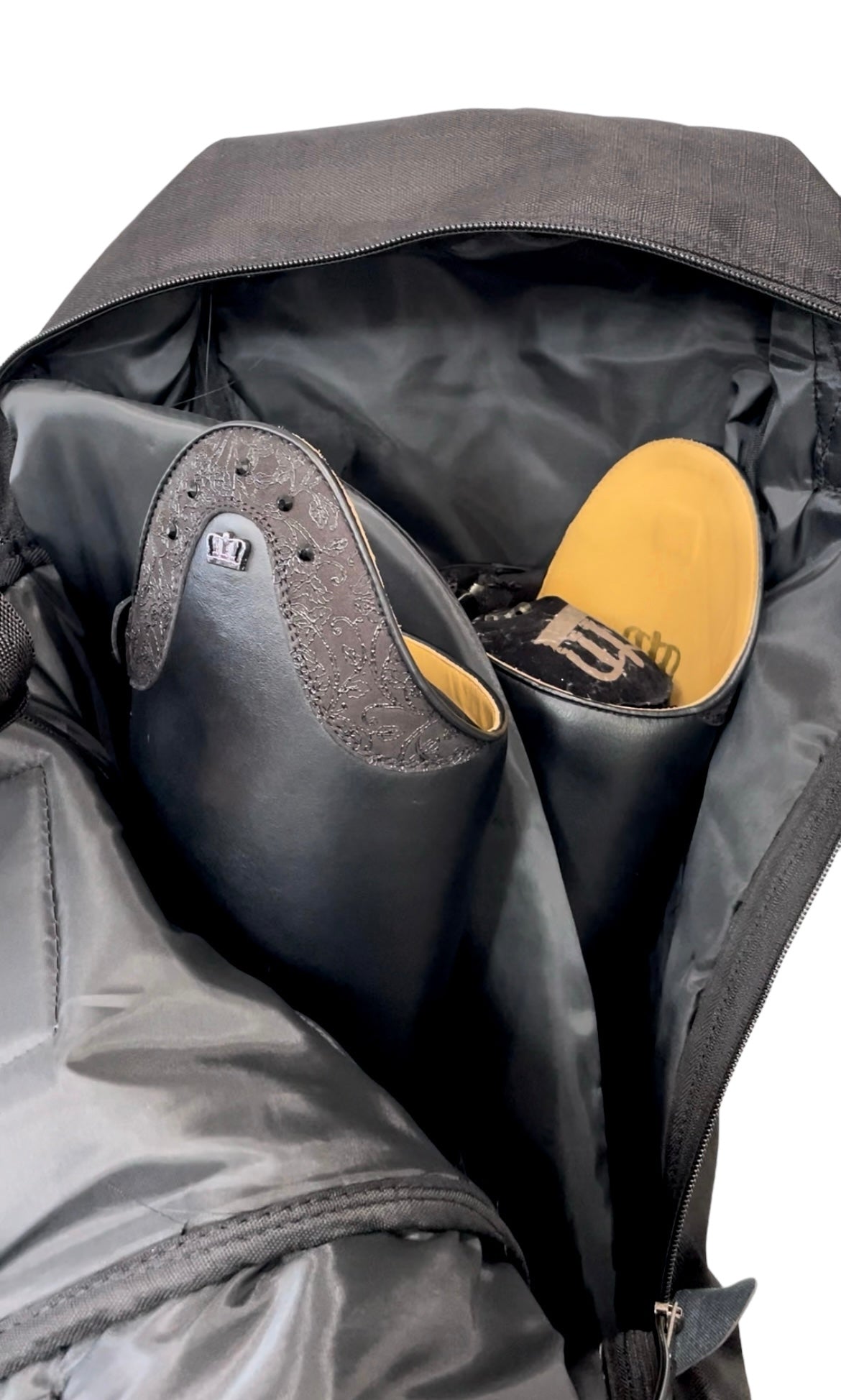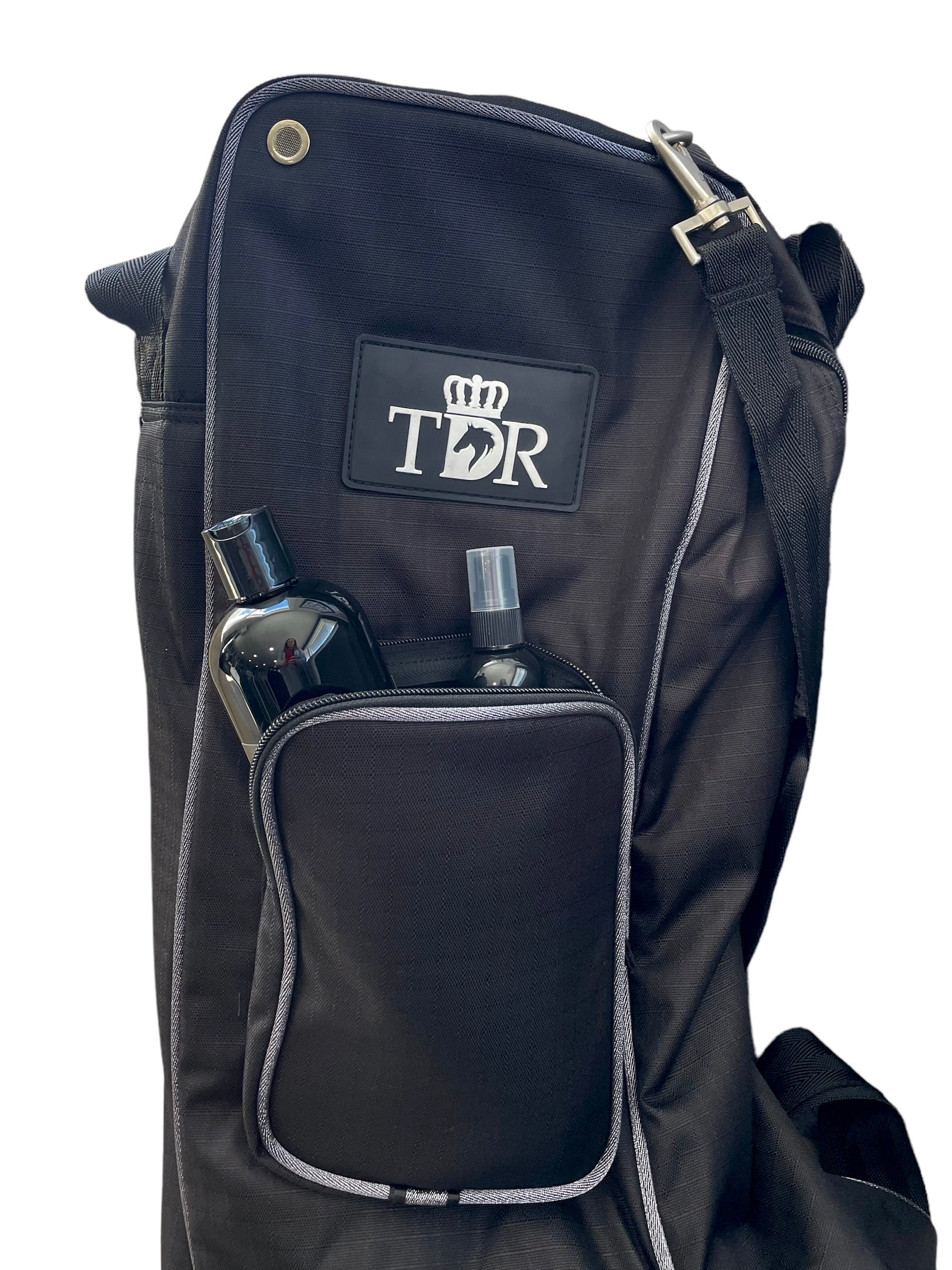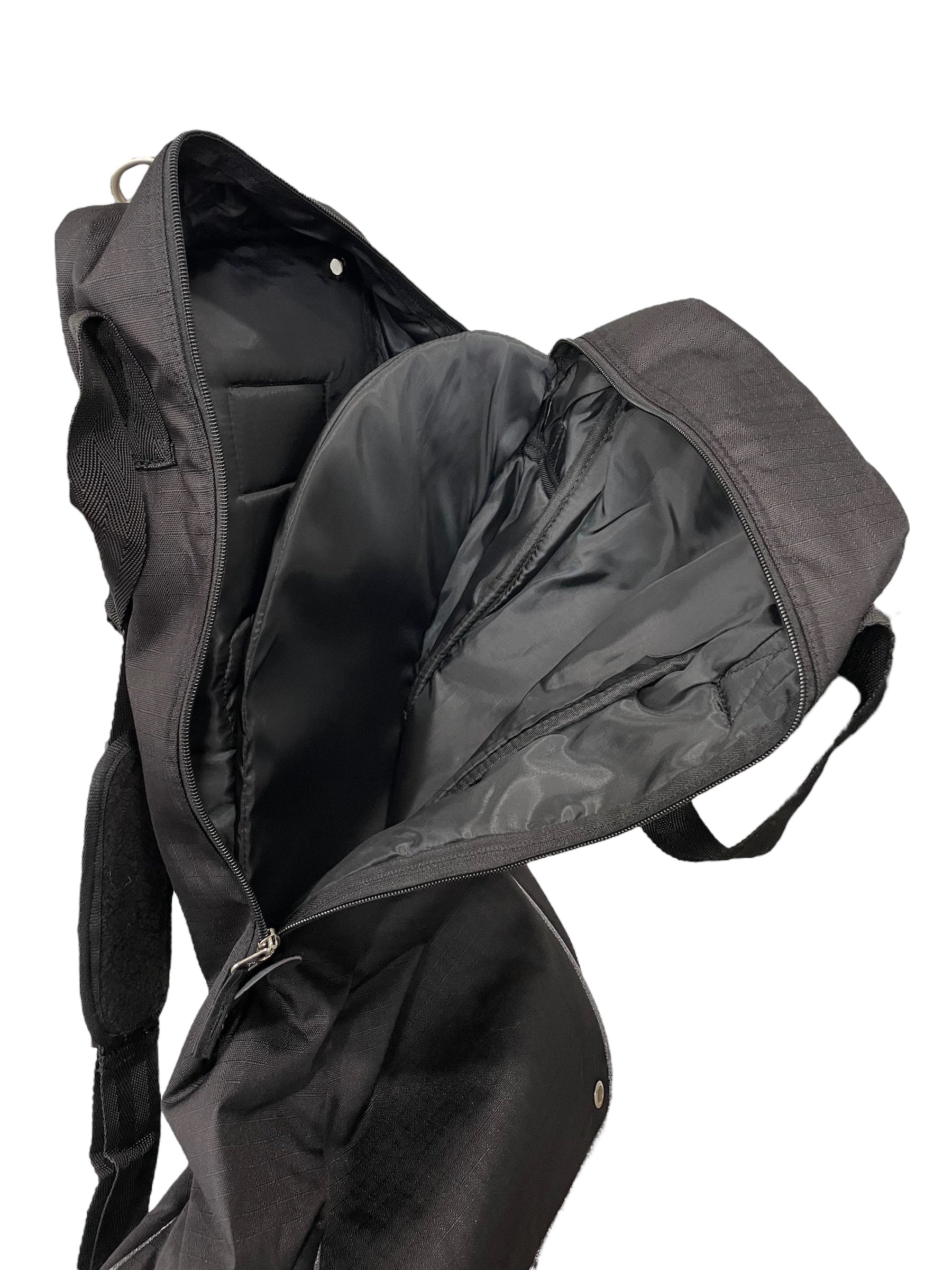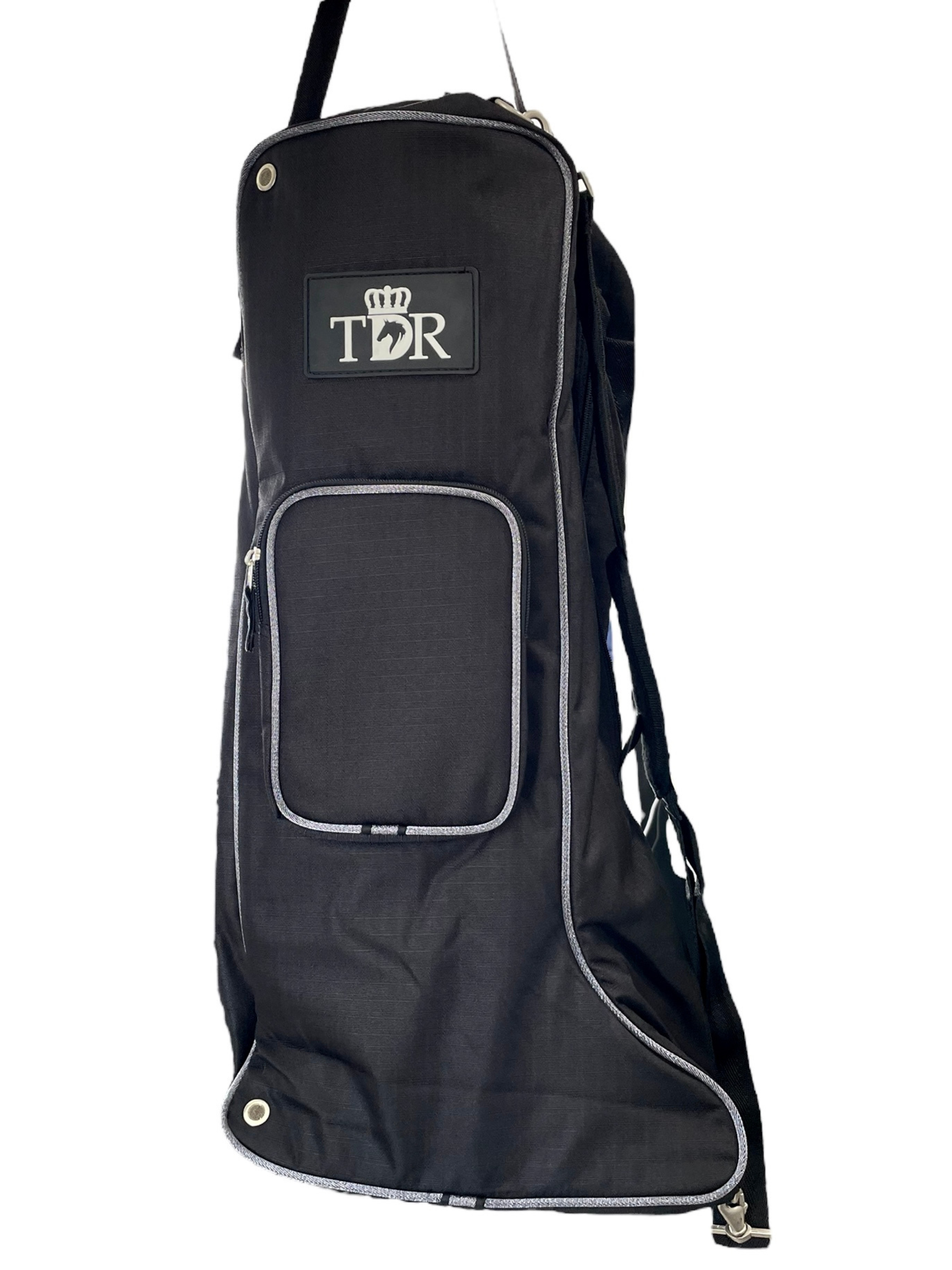 Striking protection for your boots, made of water-repellent turnout fabric. This boot bag features small vents for the drainage of moisture. Equipped with a removable shoulder strap, handles, zipper pocket and name card slot.