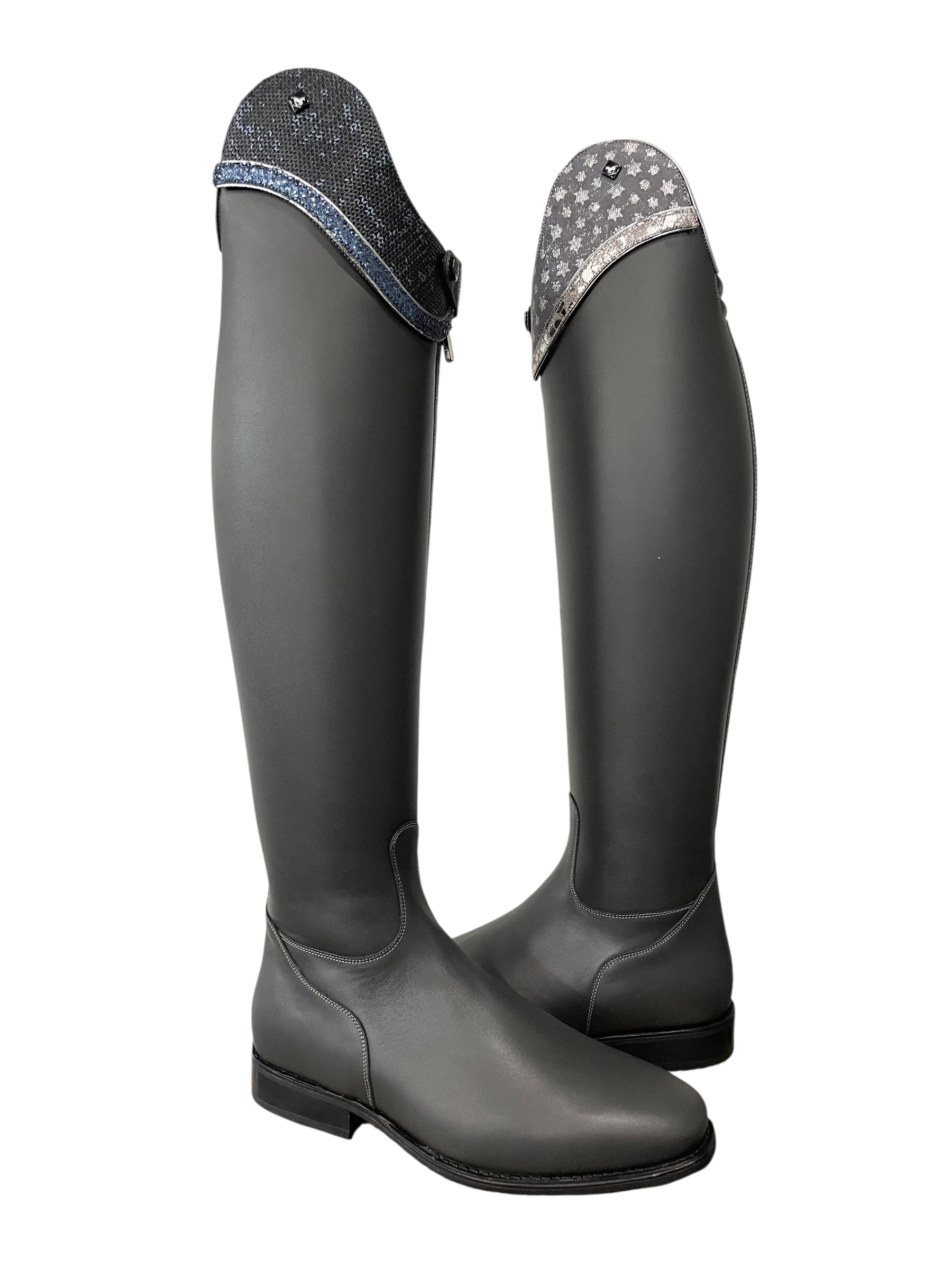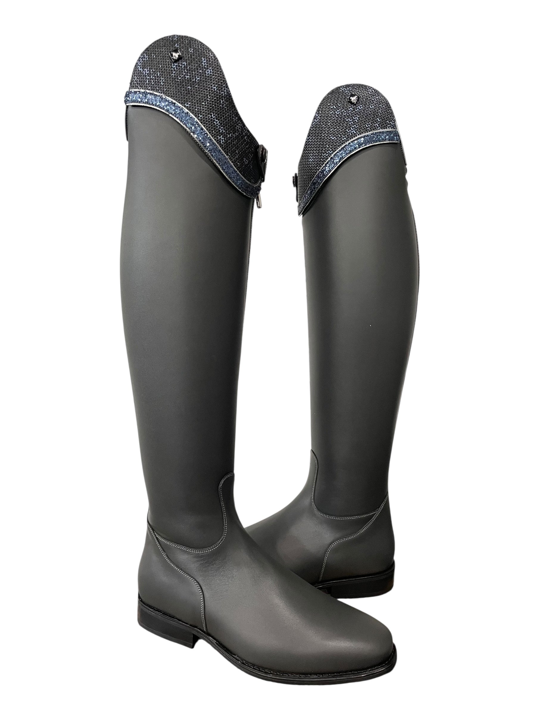 Description: WRAT anthracite base with luxory 602 top piping, G25 Lisa interchangeable top (see details below), light grey stitching, Q13 comfort knee, and black outsole.