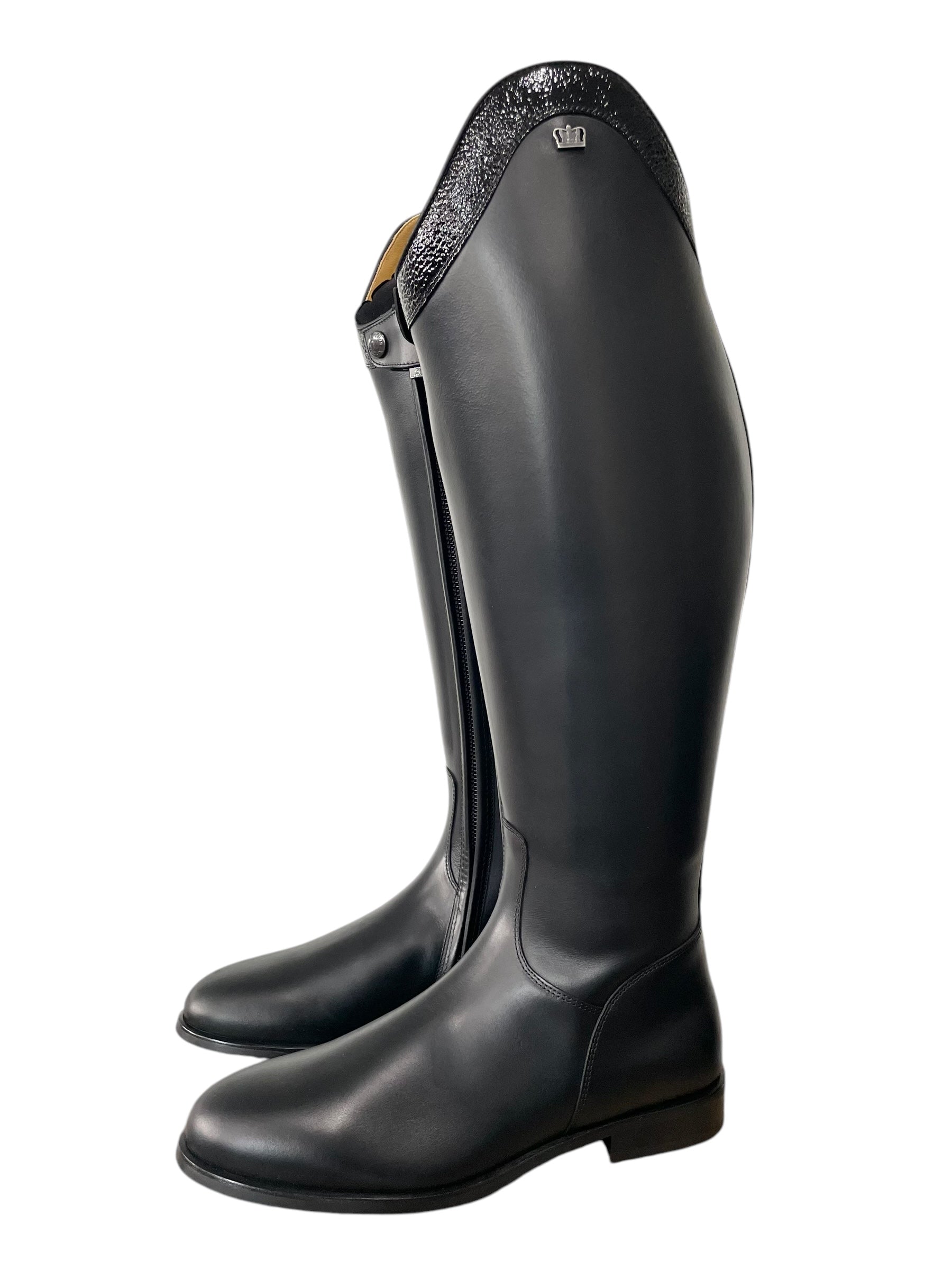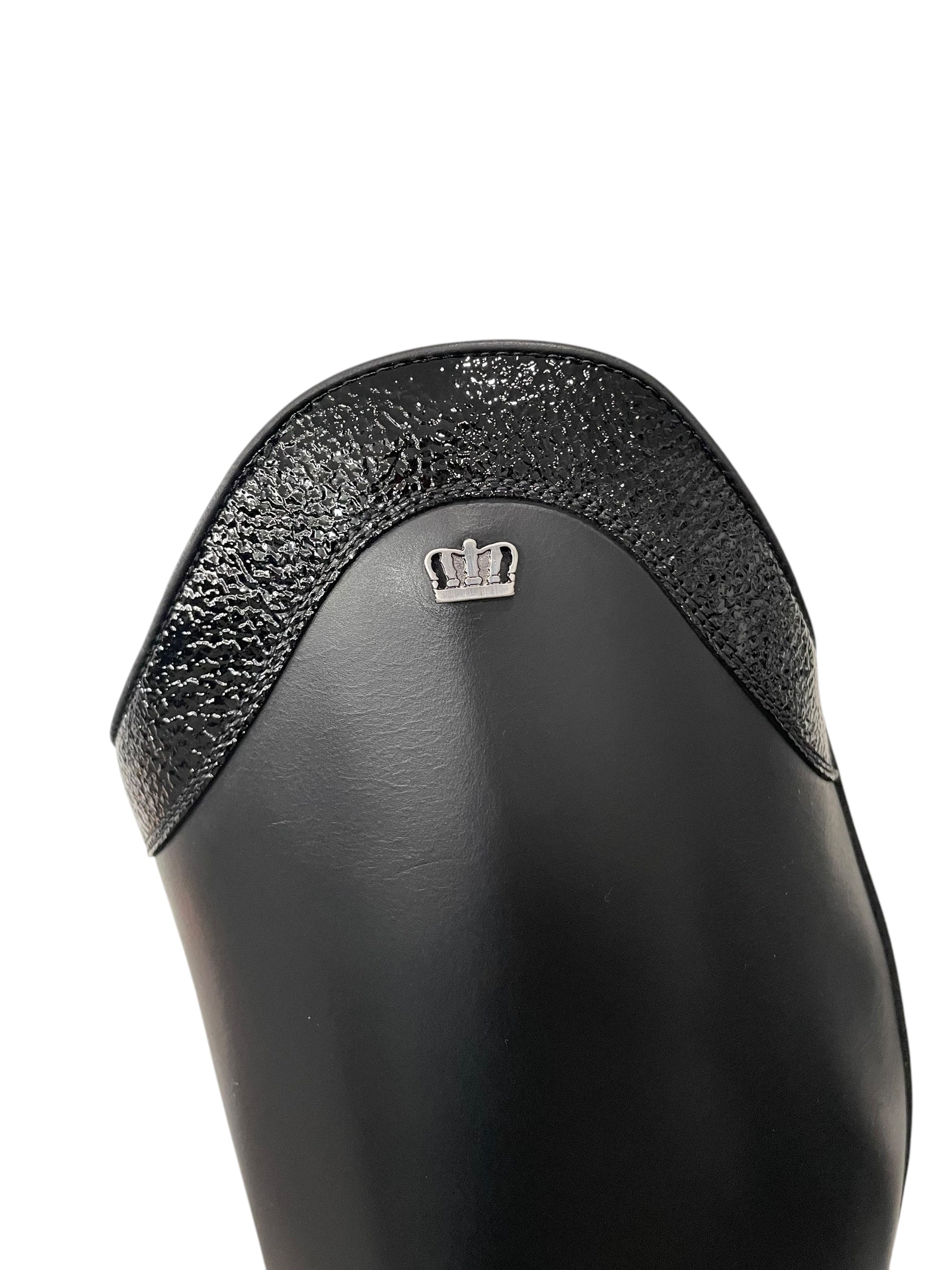 Description: Nature black base, Jenny top in verniz black, polished black logo crown, and black outsole.