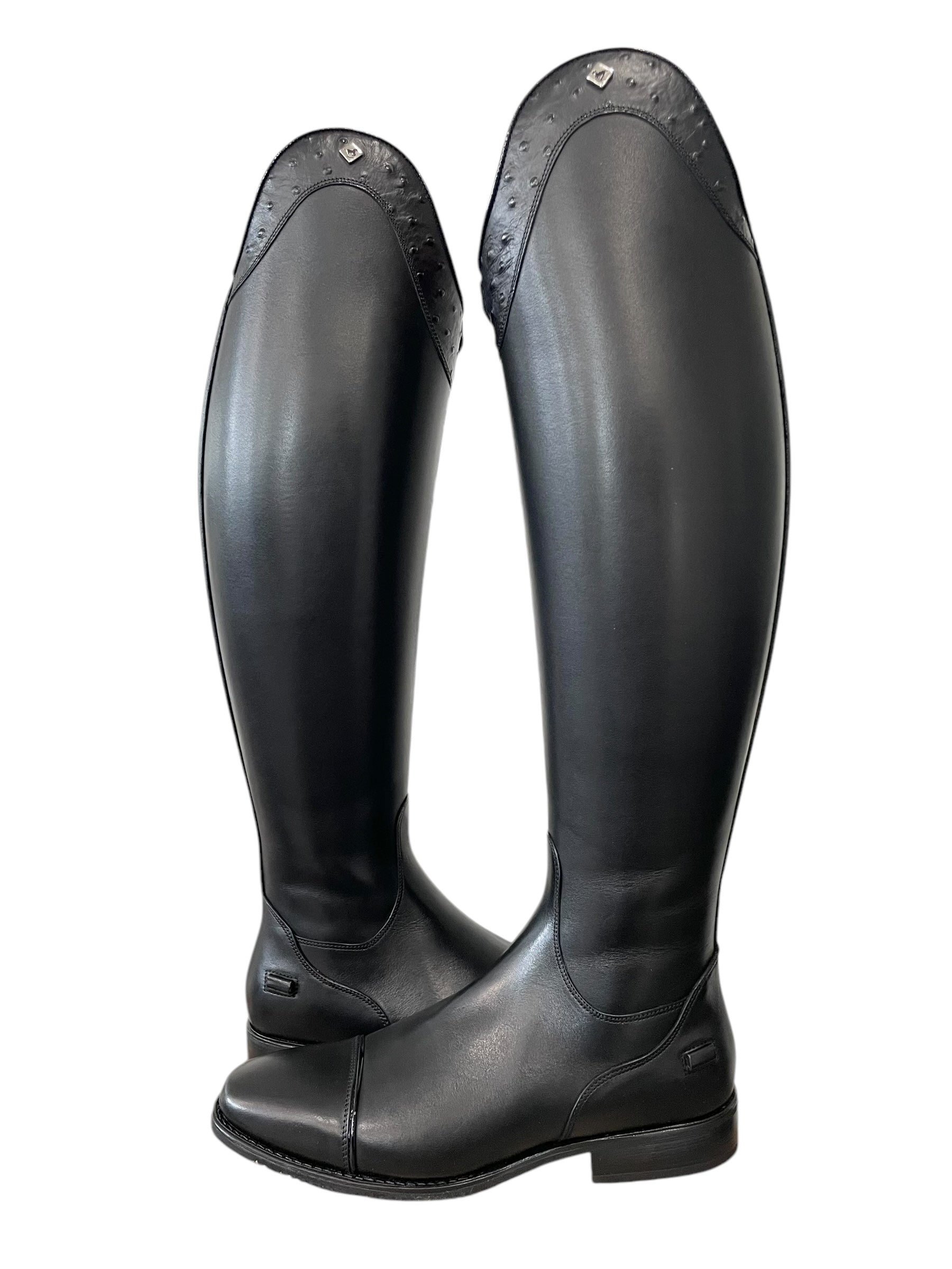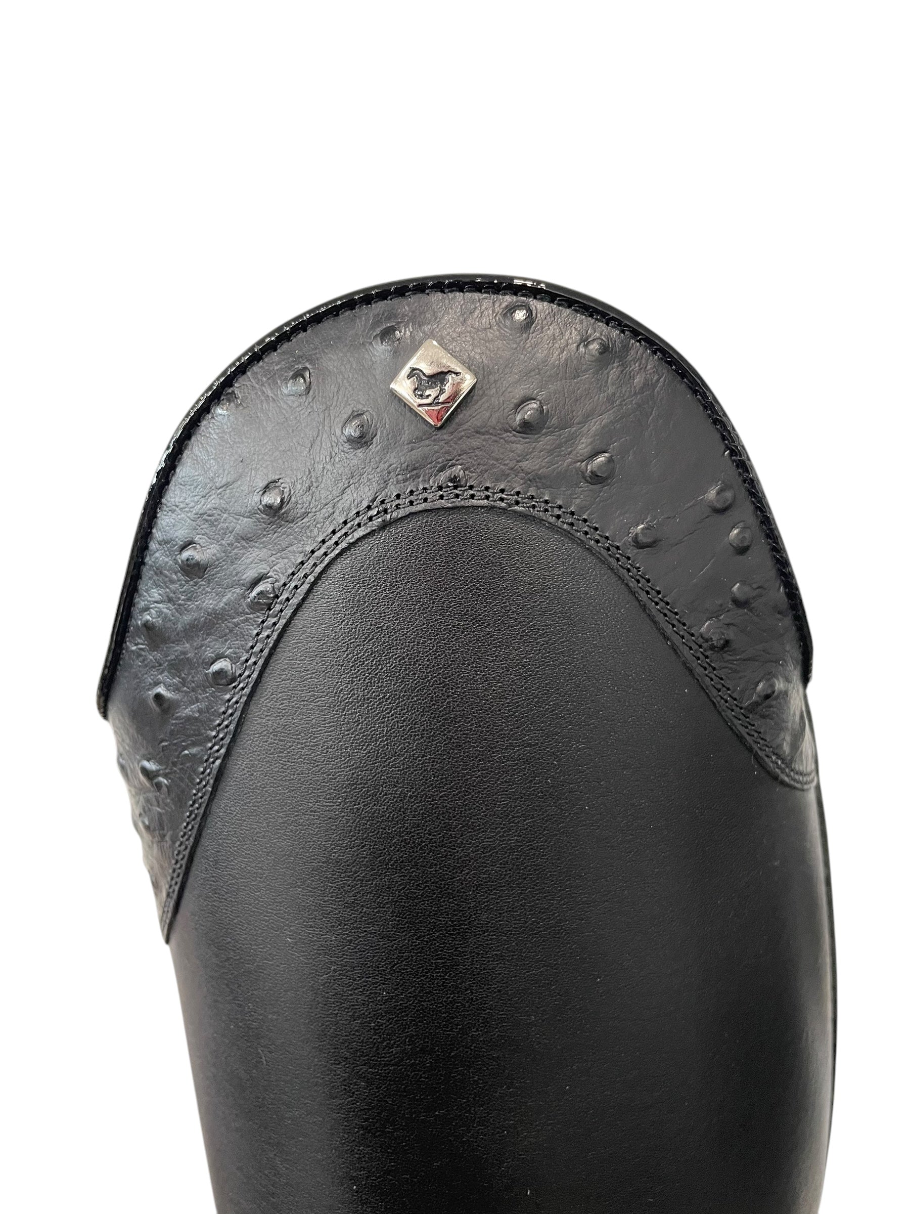 Description: WRAT black base, G28 Aurora top in ostrich black, patent black top and toecap piping, silver logo, and black outsole.