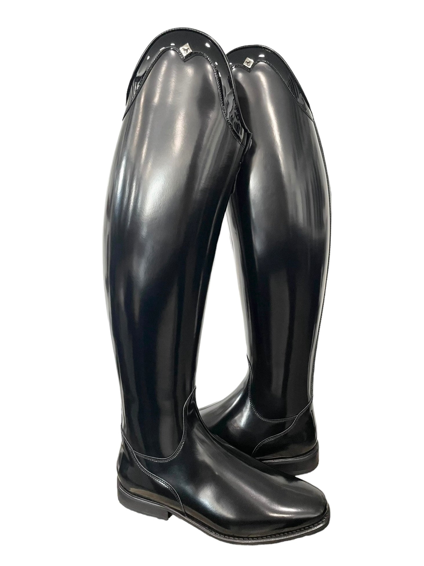 Description: Brushed black base, G9 Rondine top in patent black, silver logo, and black outsole.