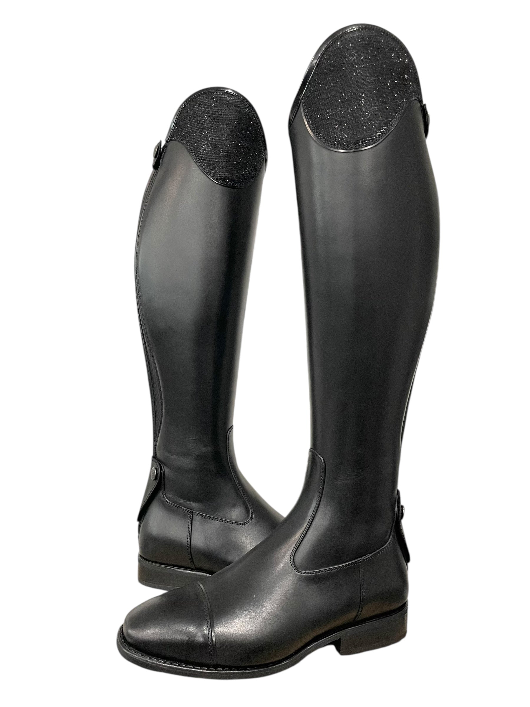 Description: WRAT black base, top in iride black with brushed black piping, toecap with brushed black piping, no logo, and black outsole.