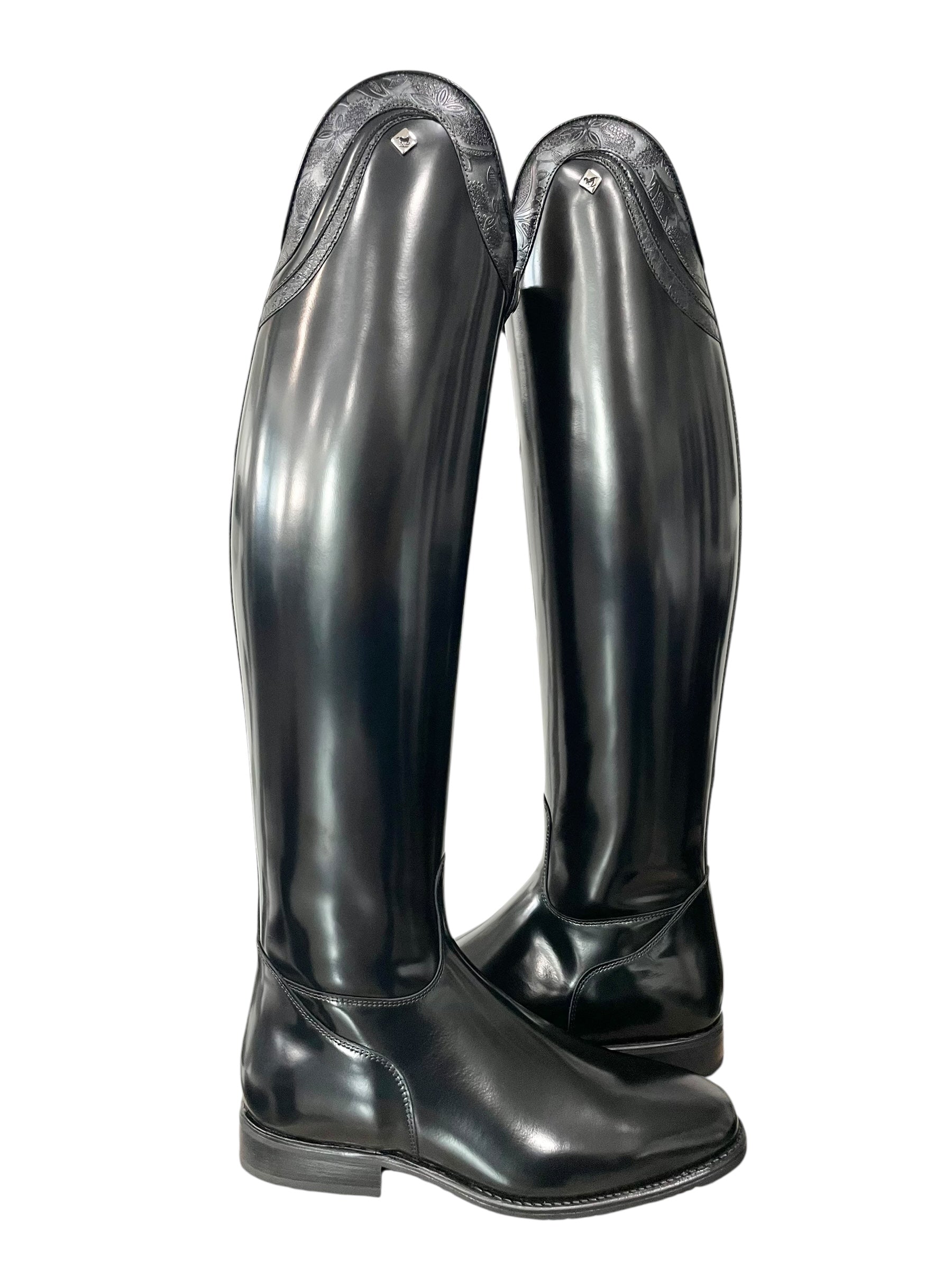 Description: Brushed black base, G42 top in greta grey, brushed black, and buongiorno black, top piping in WRAT black, silver logo, and black outsole.