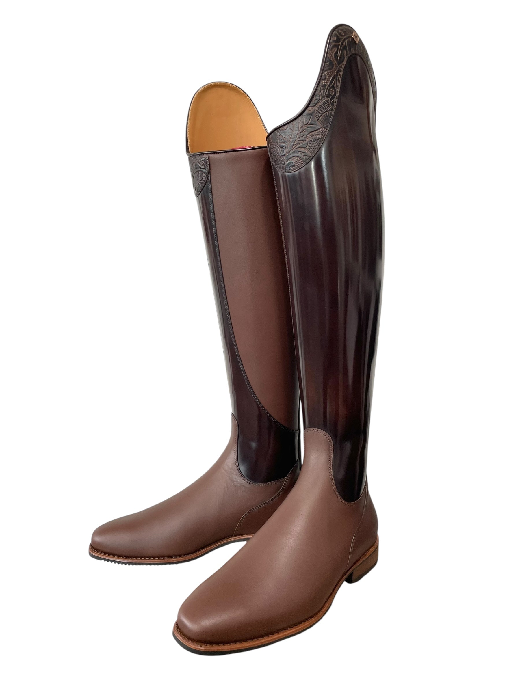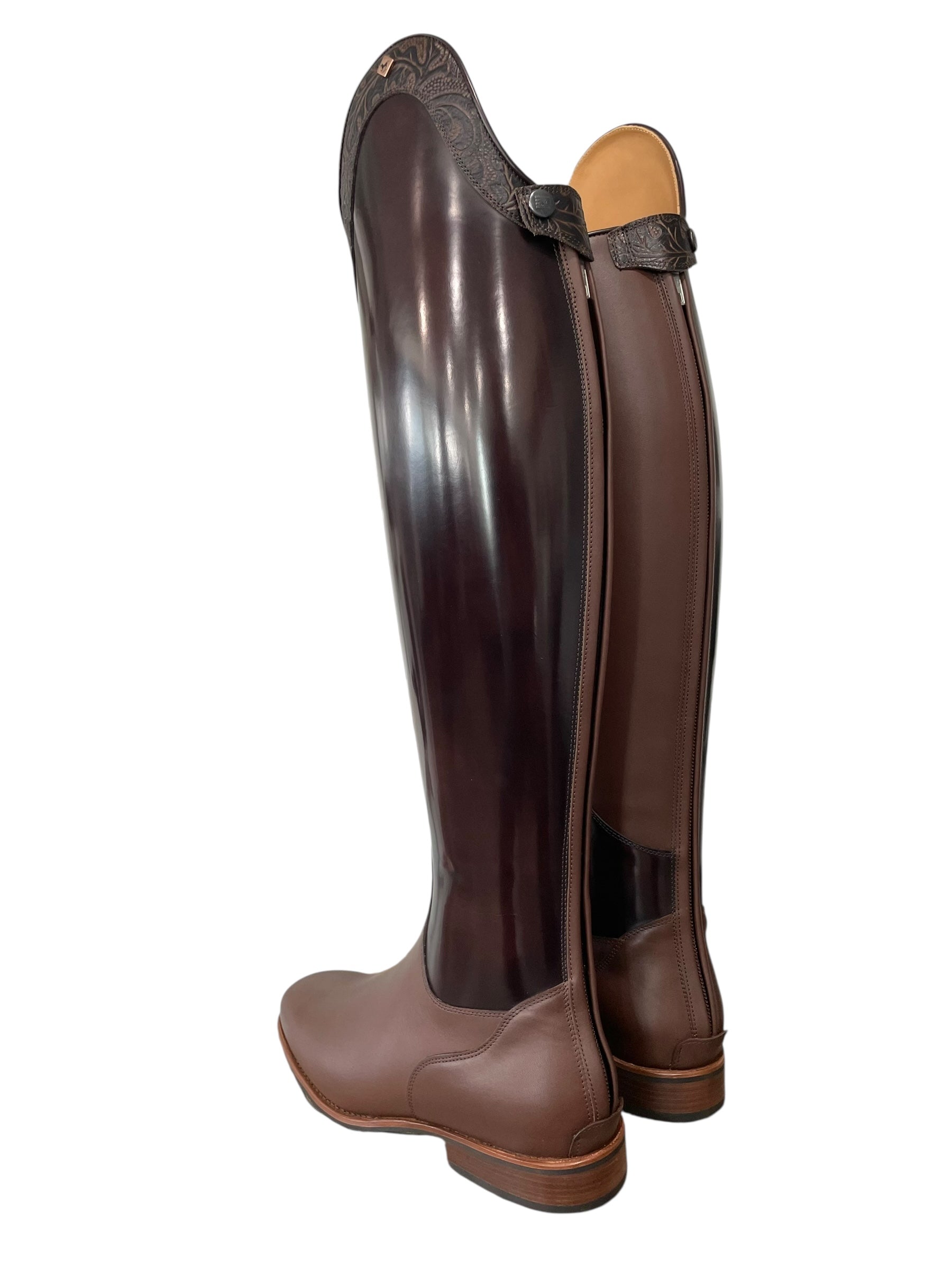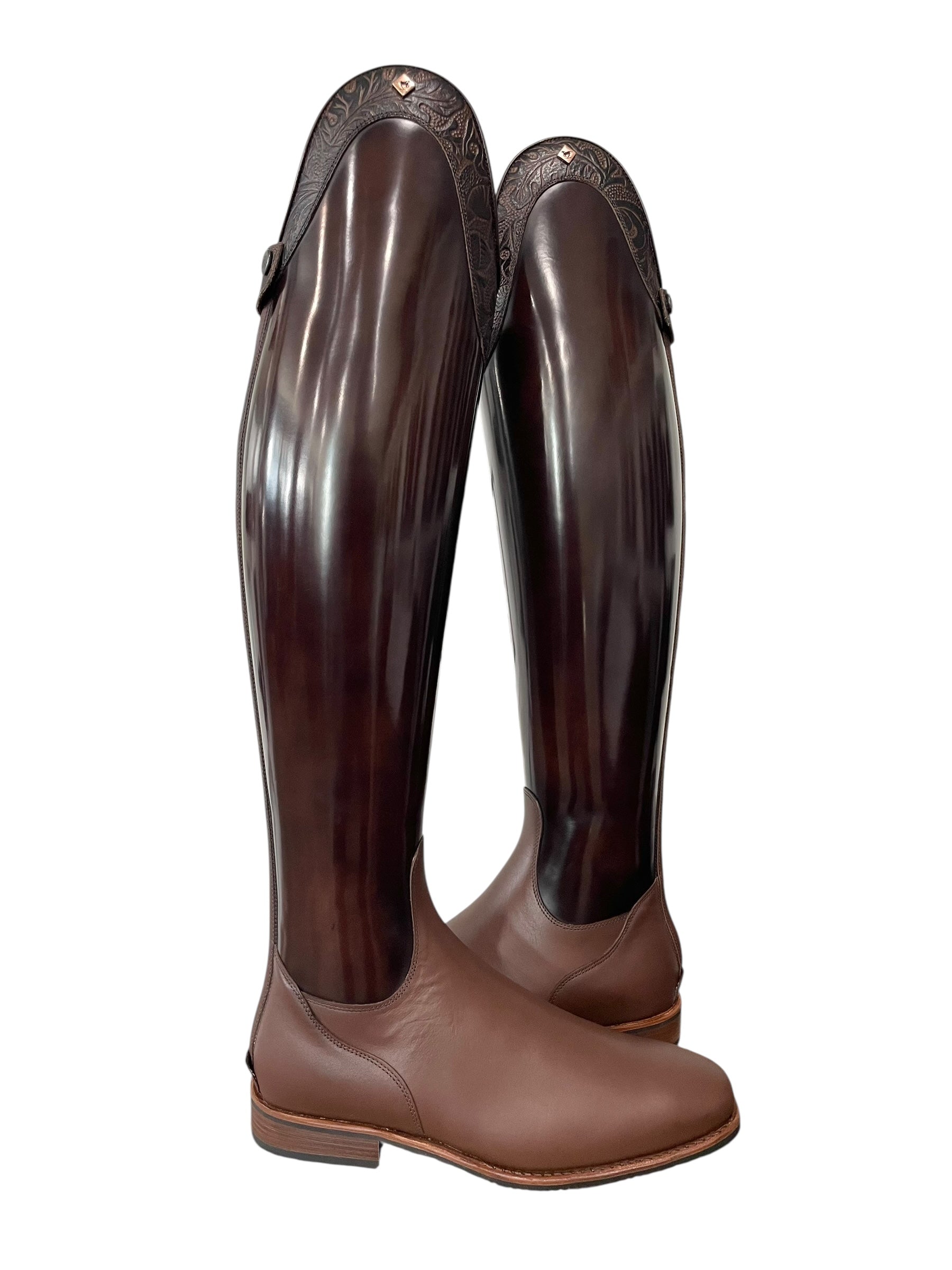 Description: WRAT brown 527 foot, brushed brown shaft, G28 Aurora top in anna brown, rose gold logo, and brown outsole.