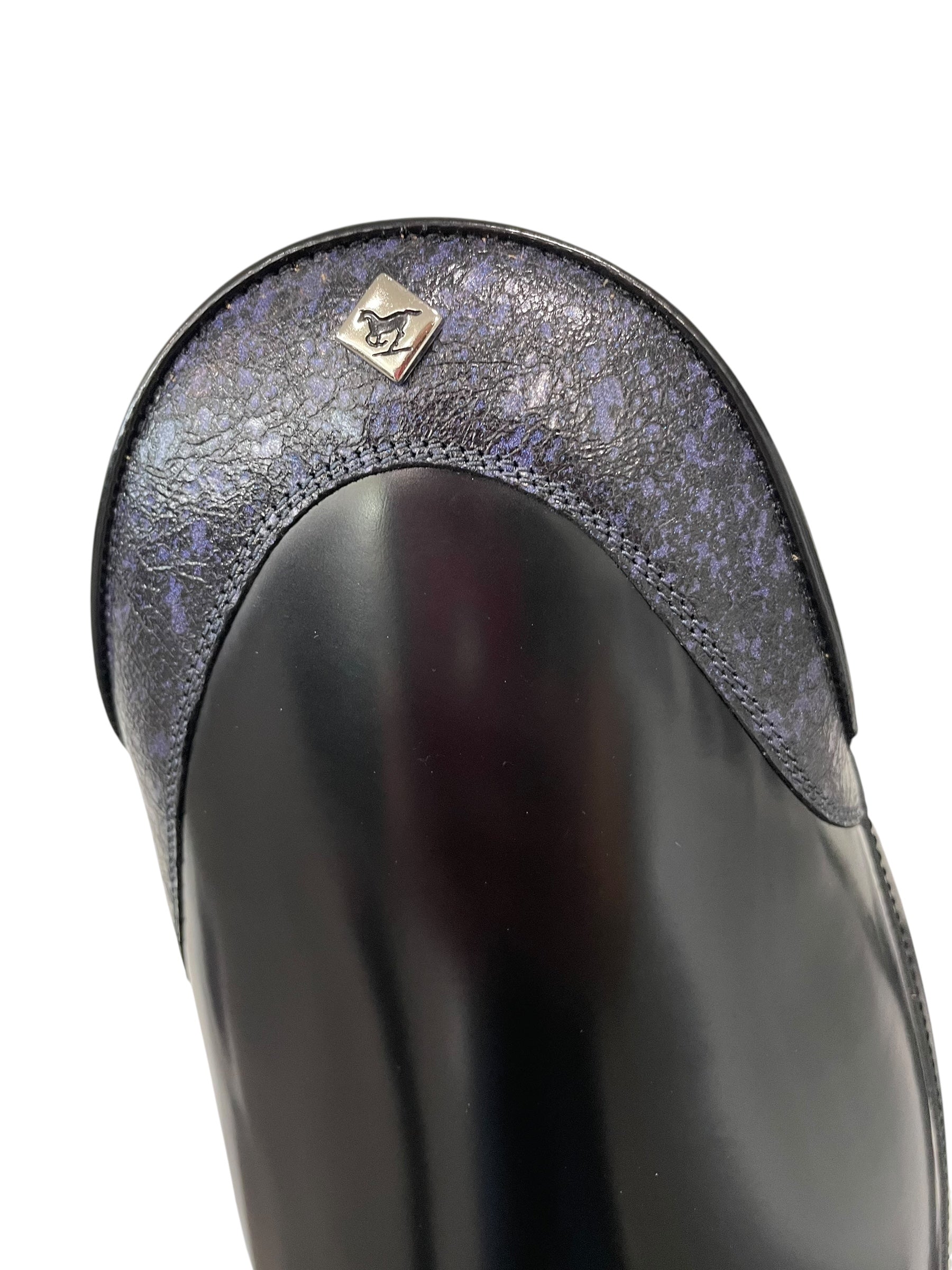 Description: Brushed black base, G28 Aurora top in pioggia mora, silver logo, and black outsole.