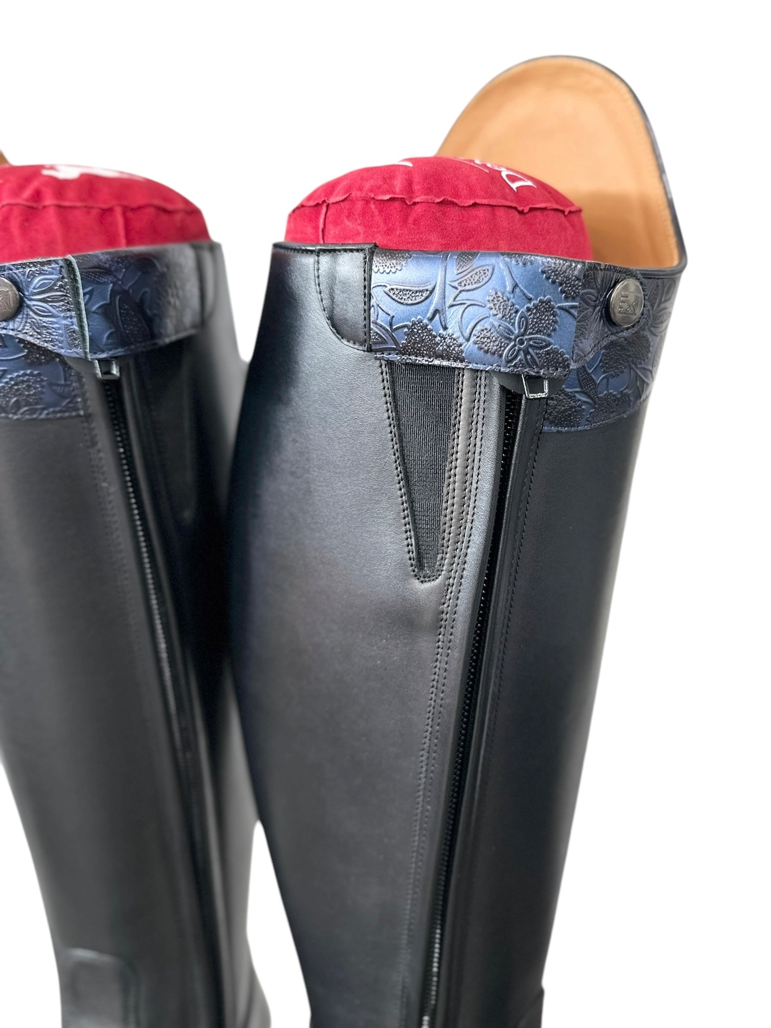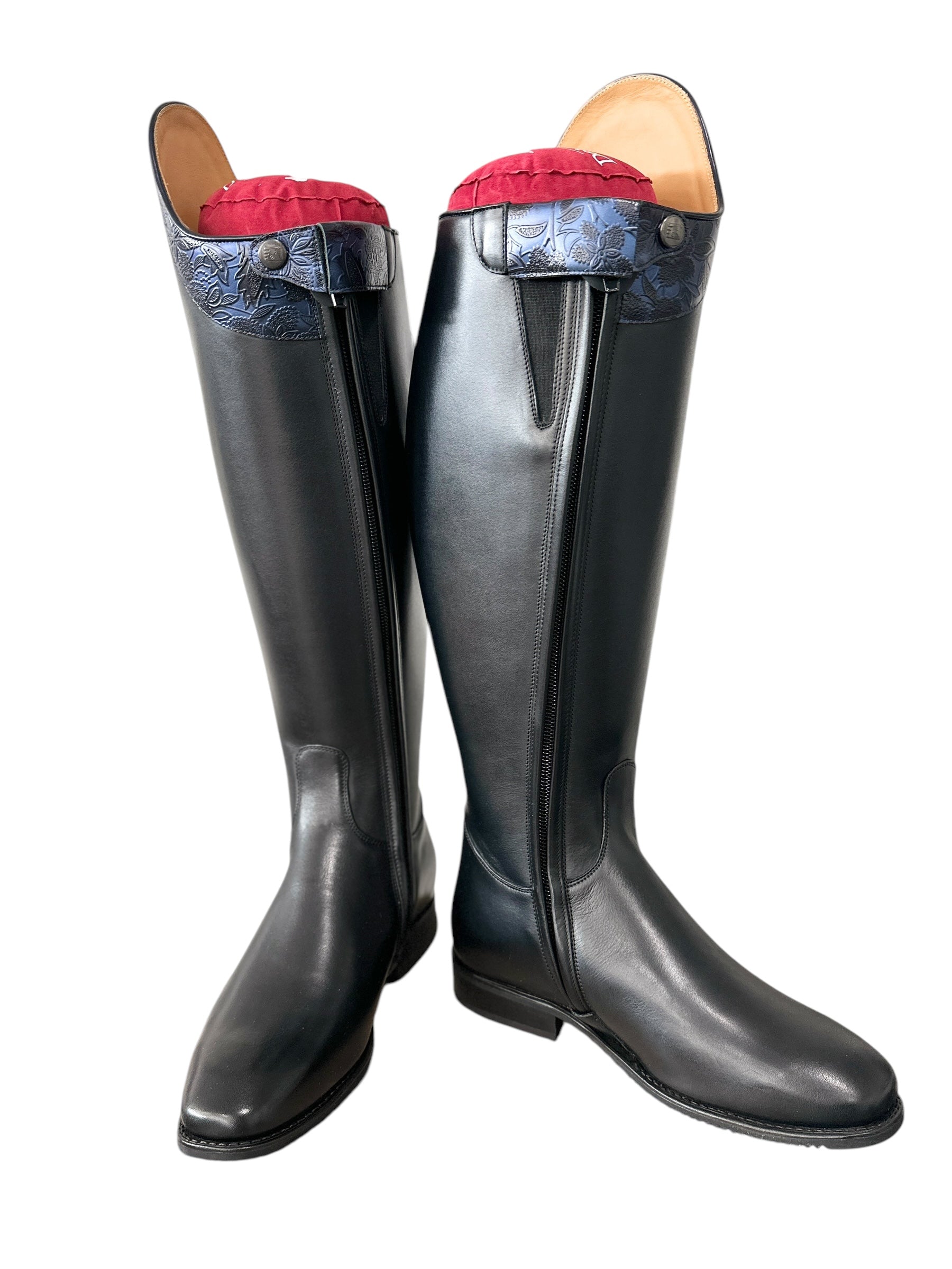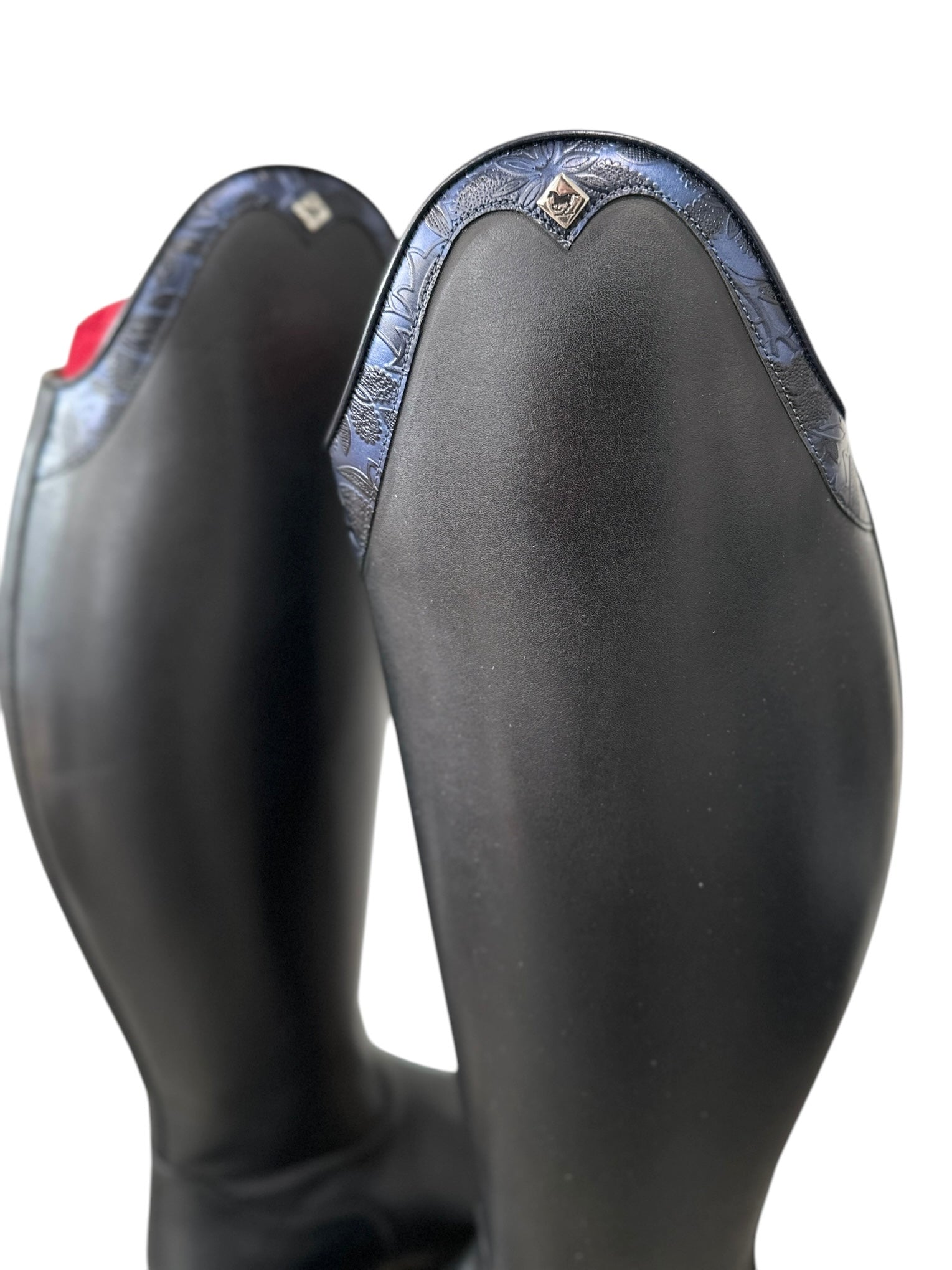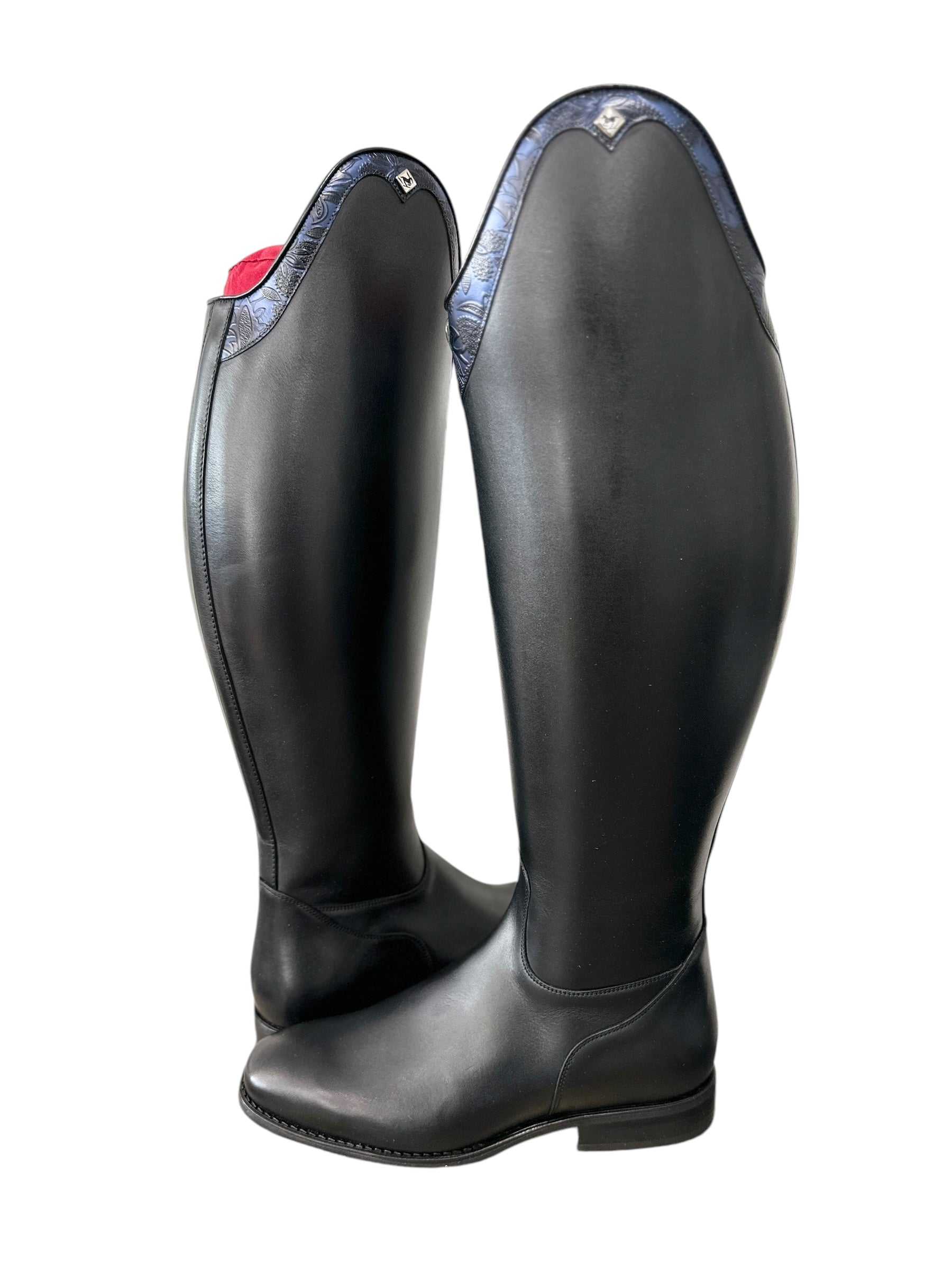 Description: WRAT black base, Q12 V gusset, G34 Capinera top in greta blue, silver logo, and black outsole.