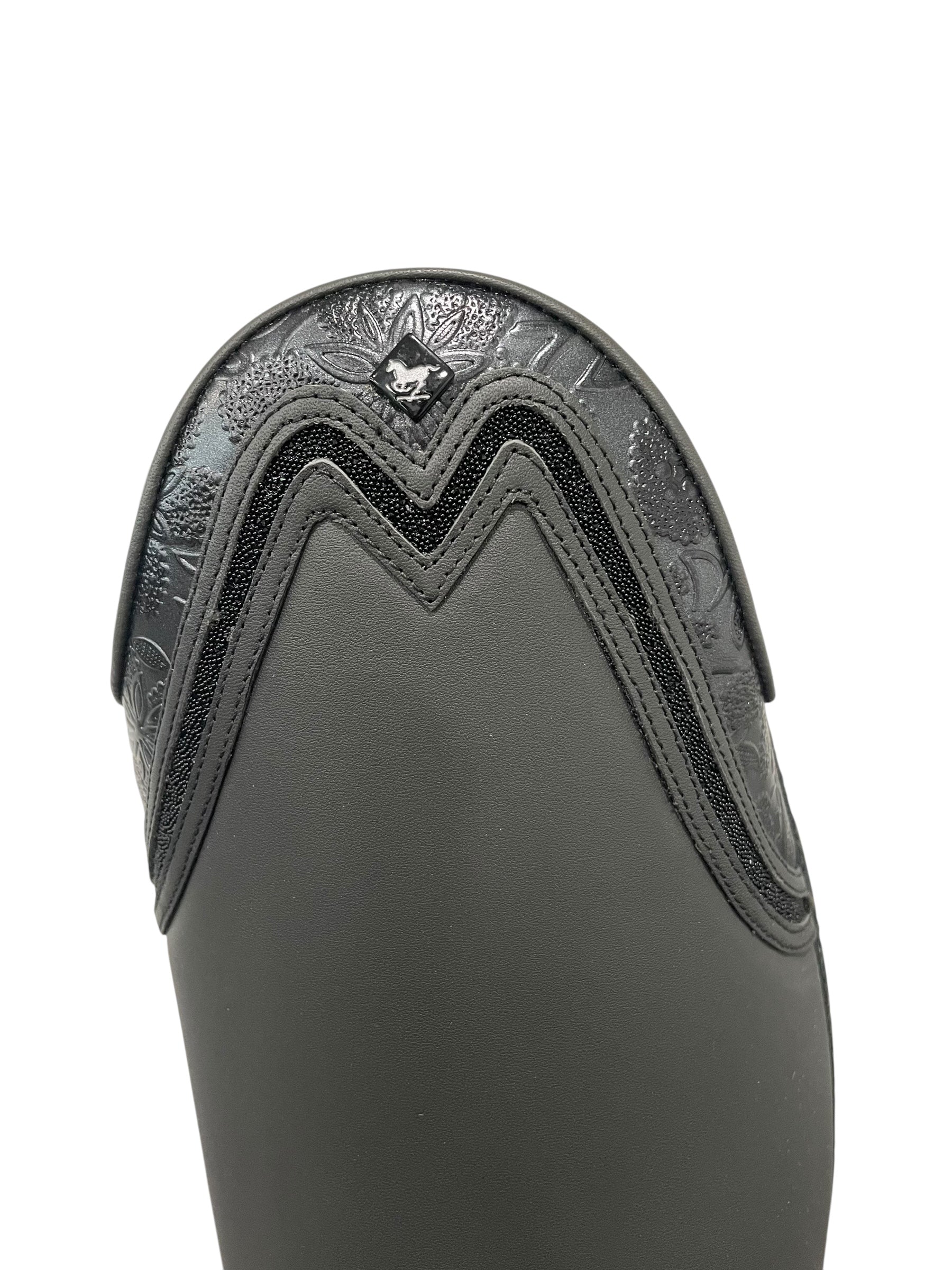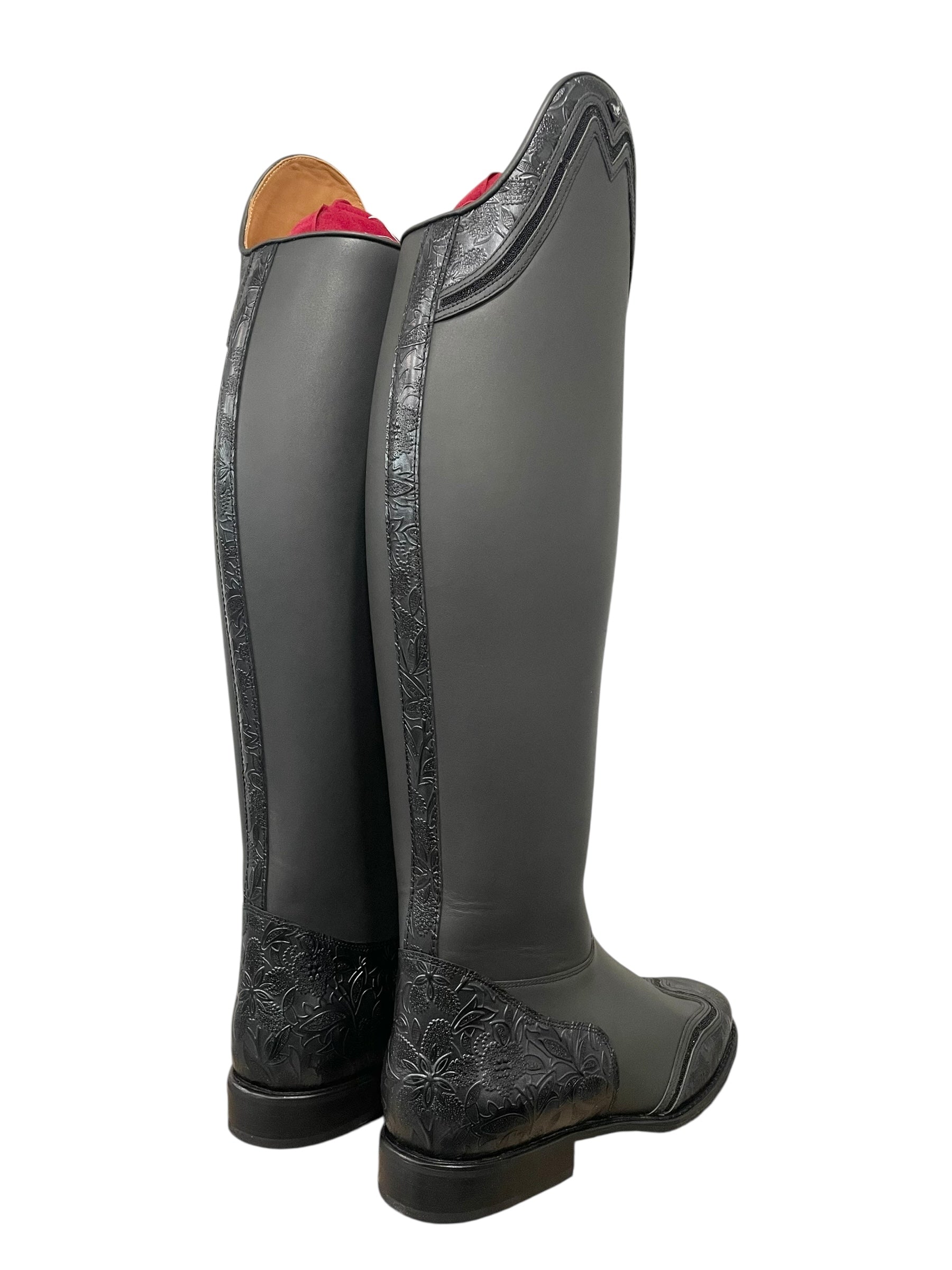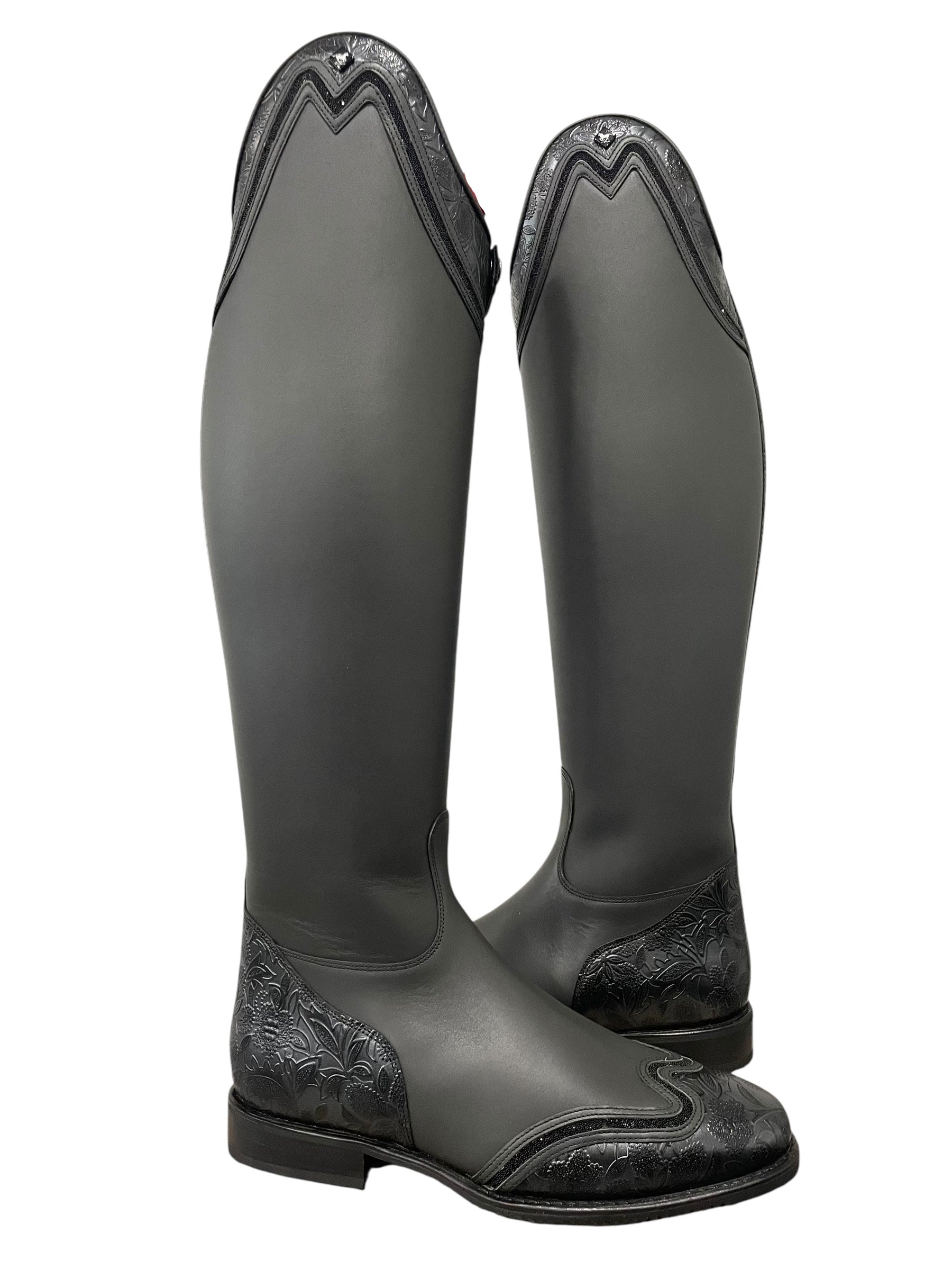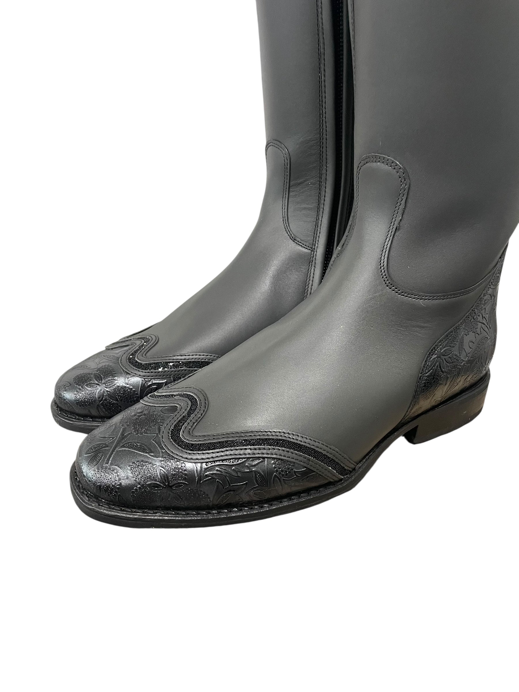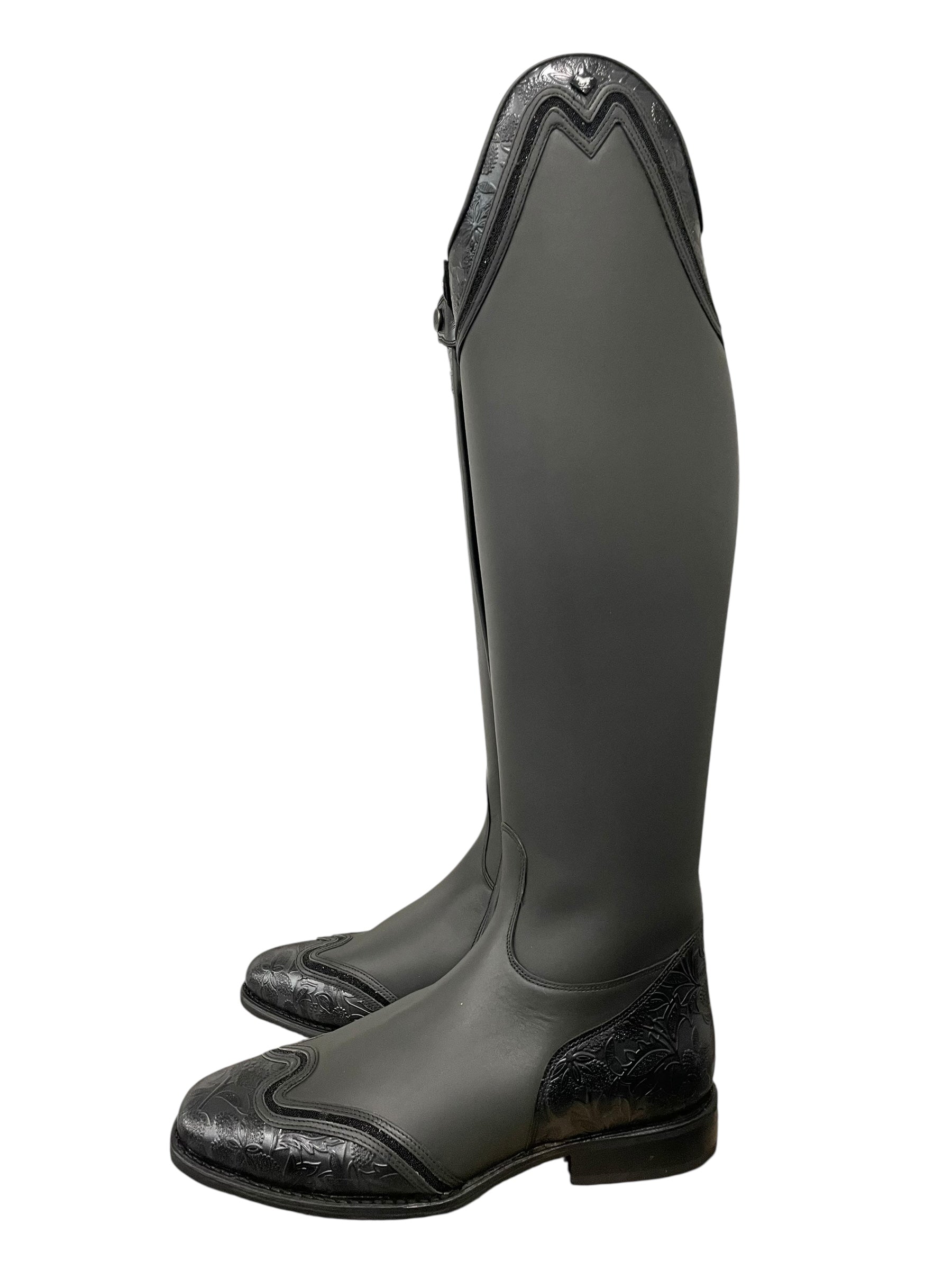 Description: WRAT anthracite base, G34 Capinera top in greta grey with WRAT anthracite frame and SW nut fabric channel, heel and back stripe in greta grey, top zip guard in greta grey, E9 toecap in greta gray with WRAT anthracite frame and SW nut fabric channel, black logo, and black outsole.