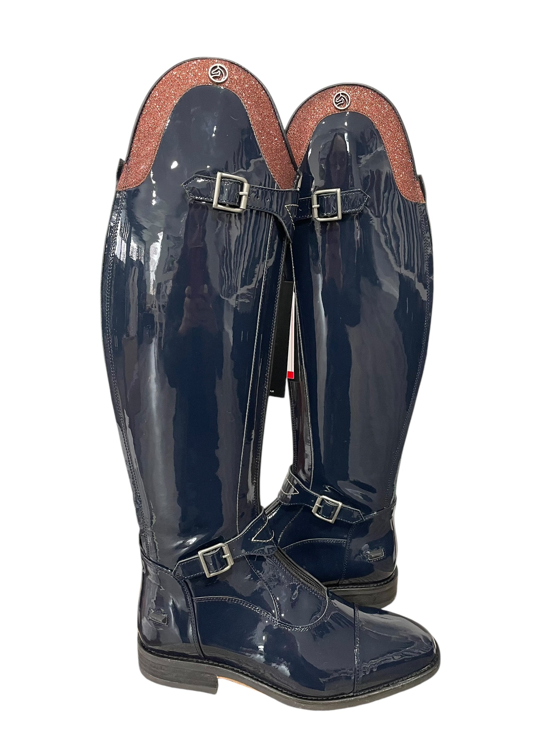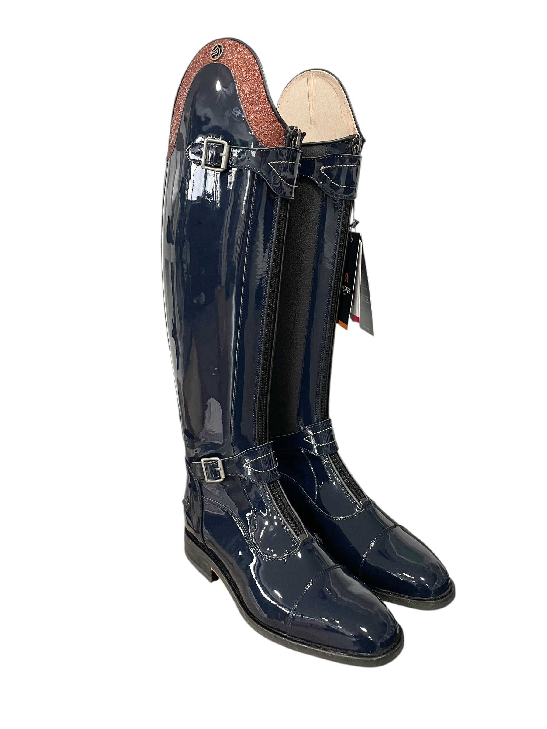 Description: P7 patent blue base, T3 top in P36, SR3 spur rests, B1 toecap, and black S1 outsole.