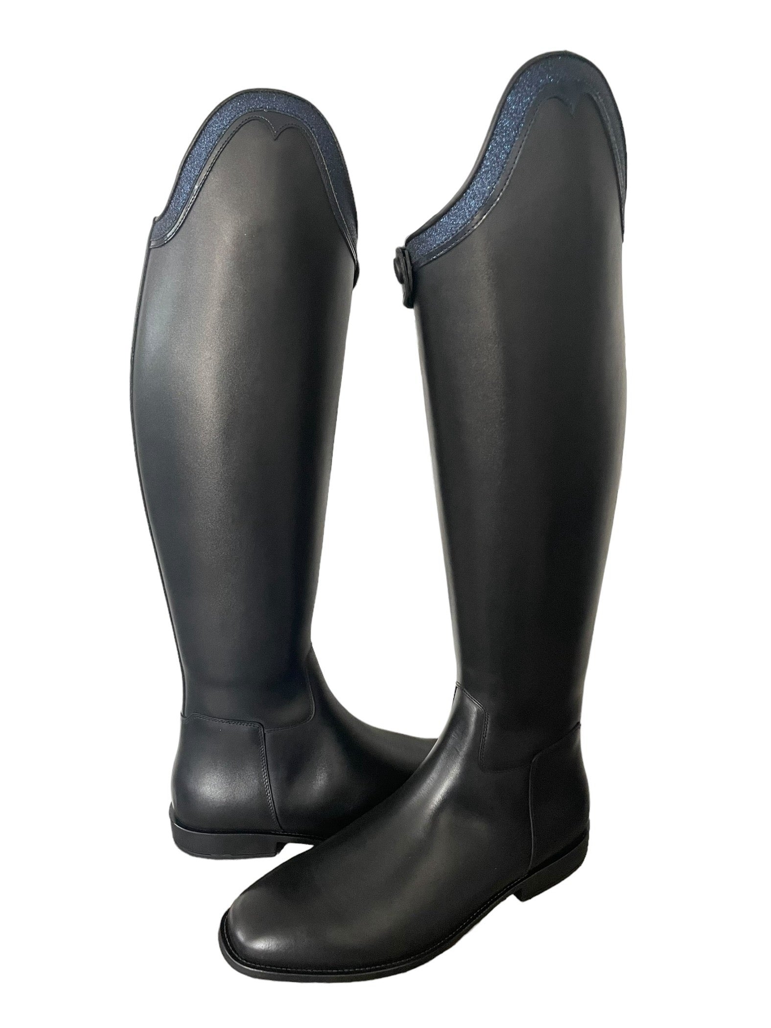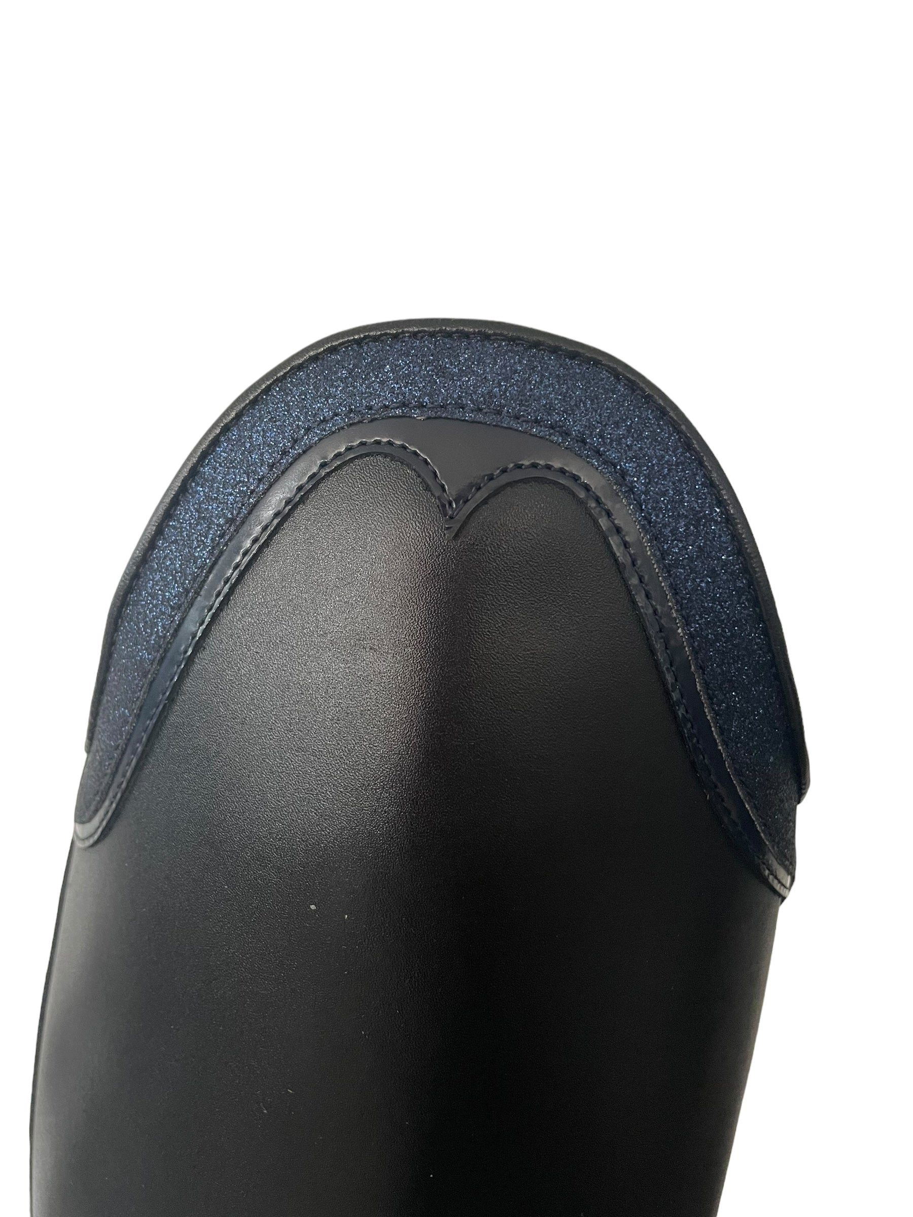 Description: Black base, T4 top in blue glitter and blue patent, and S3 outsole.