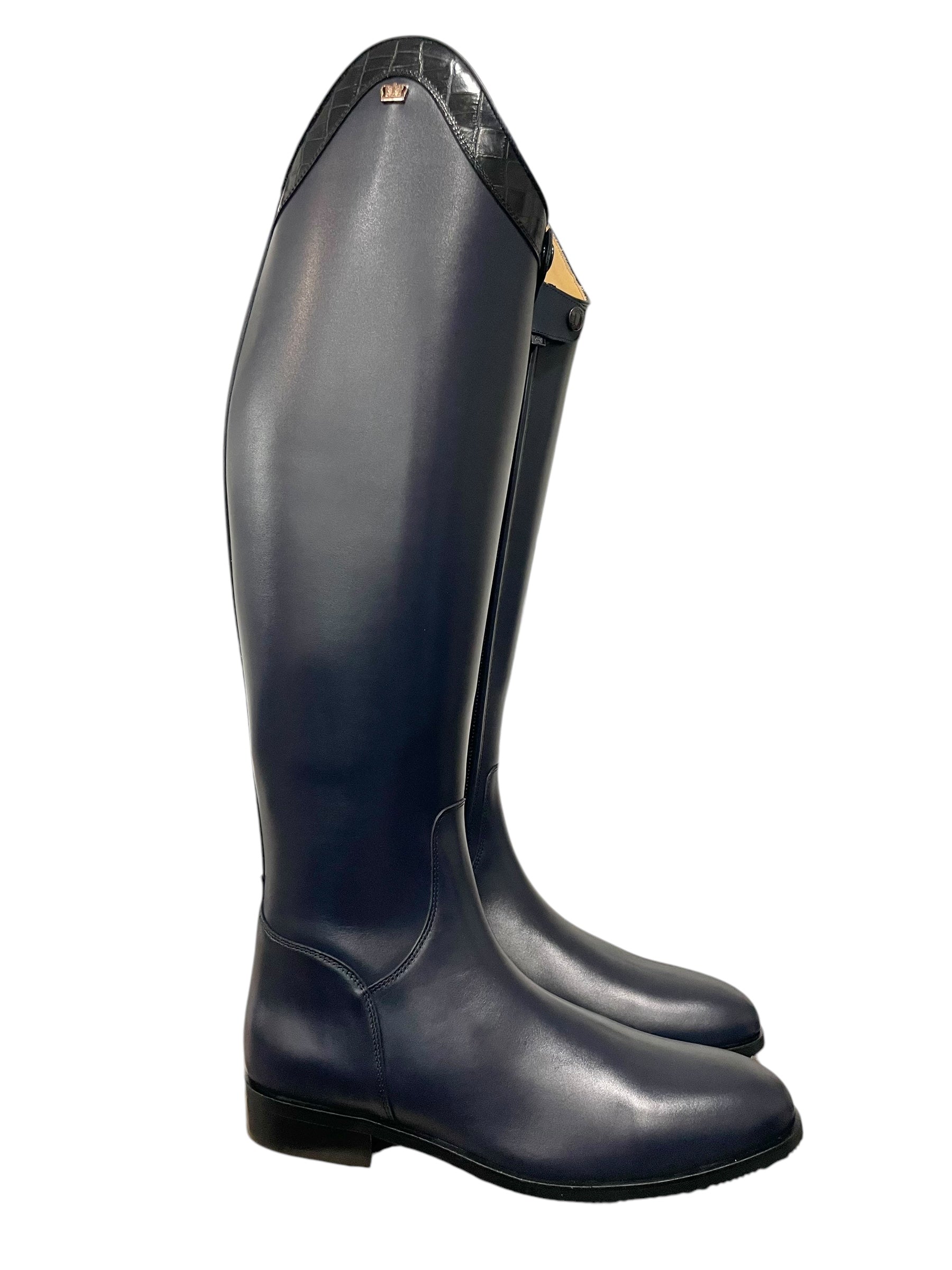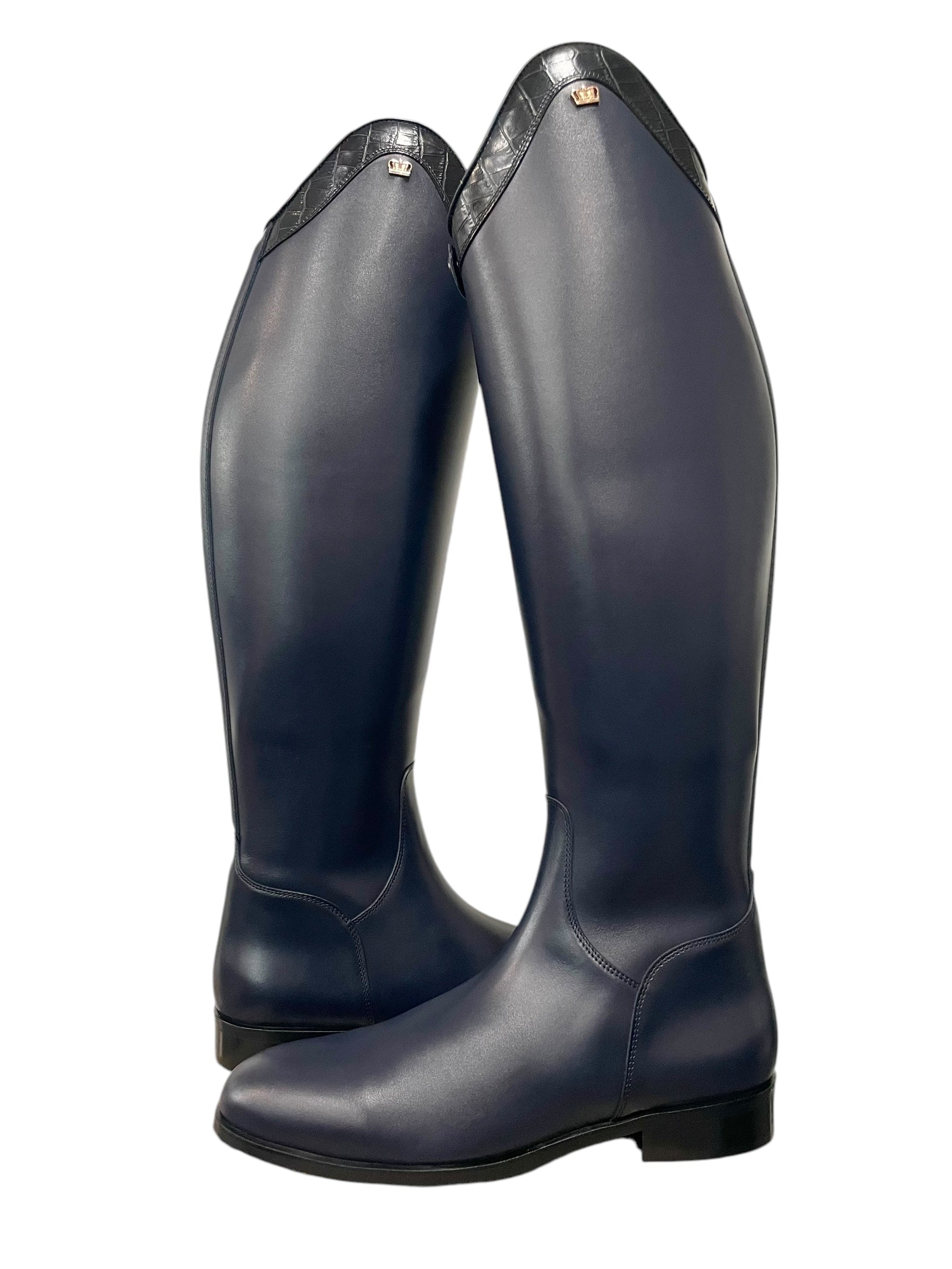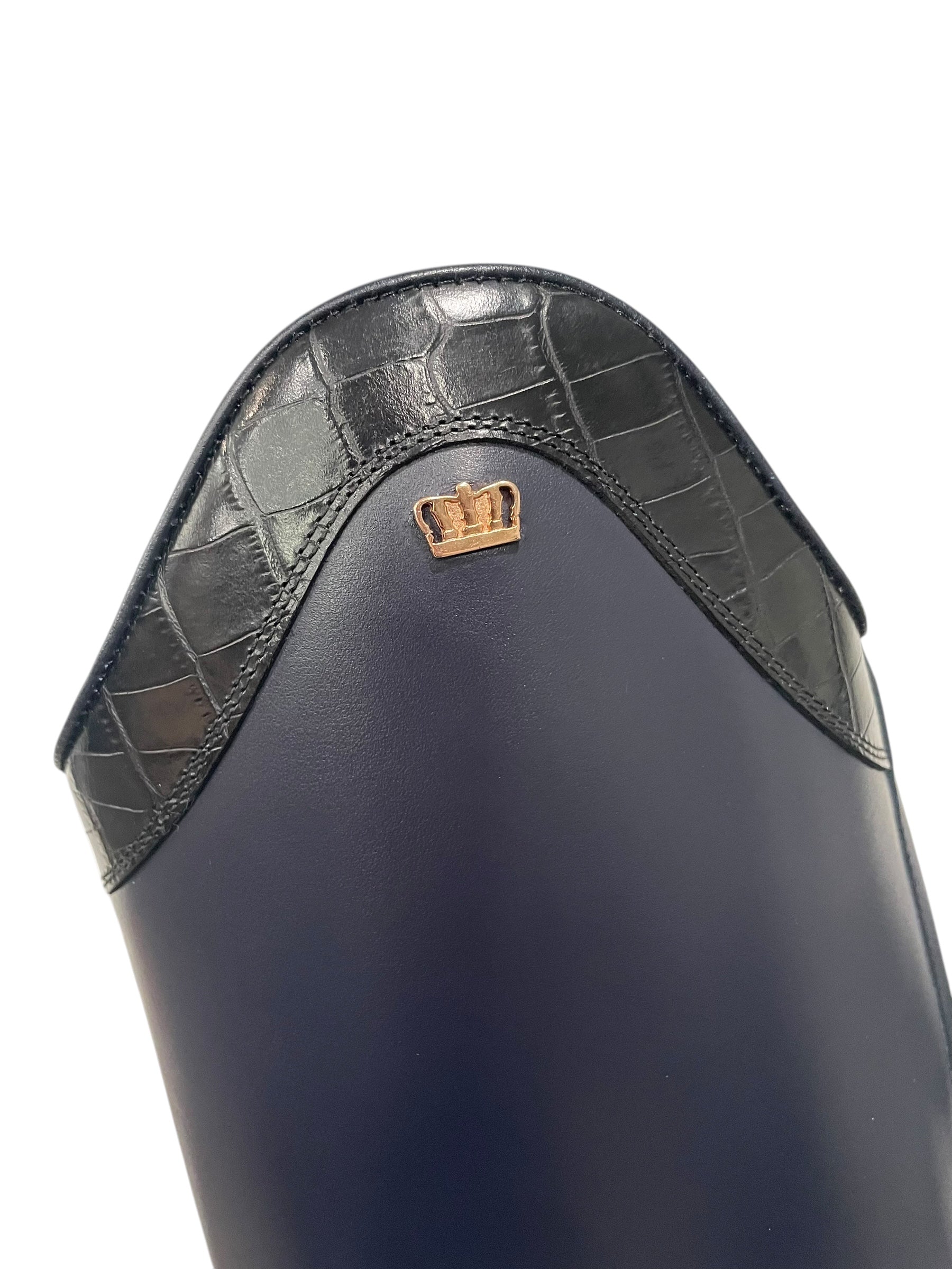Description: Aspen blue base, Jenny top in croco beleza black, rose gold logo, and black outsole.