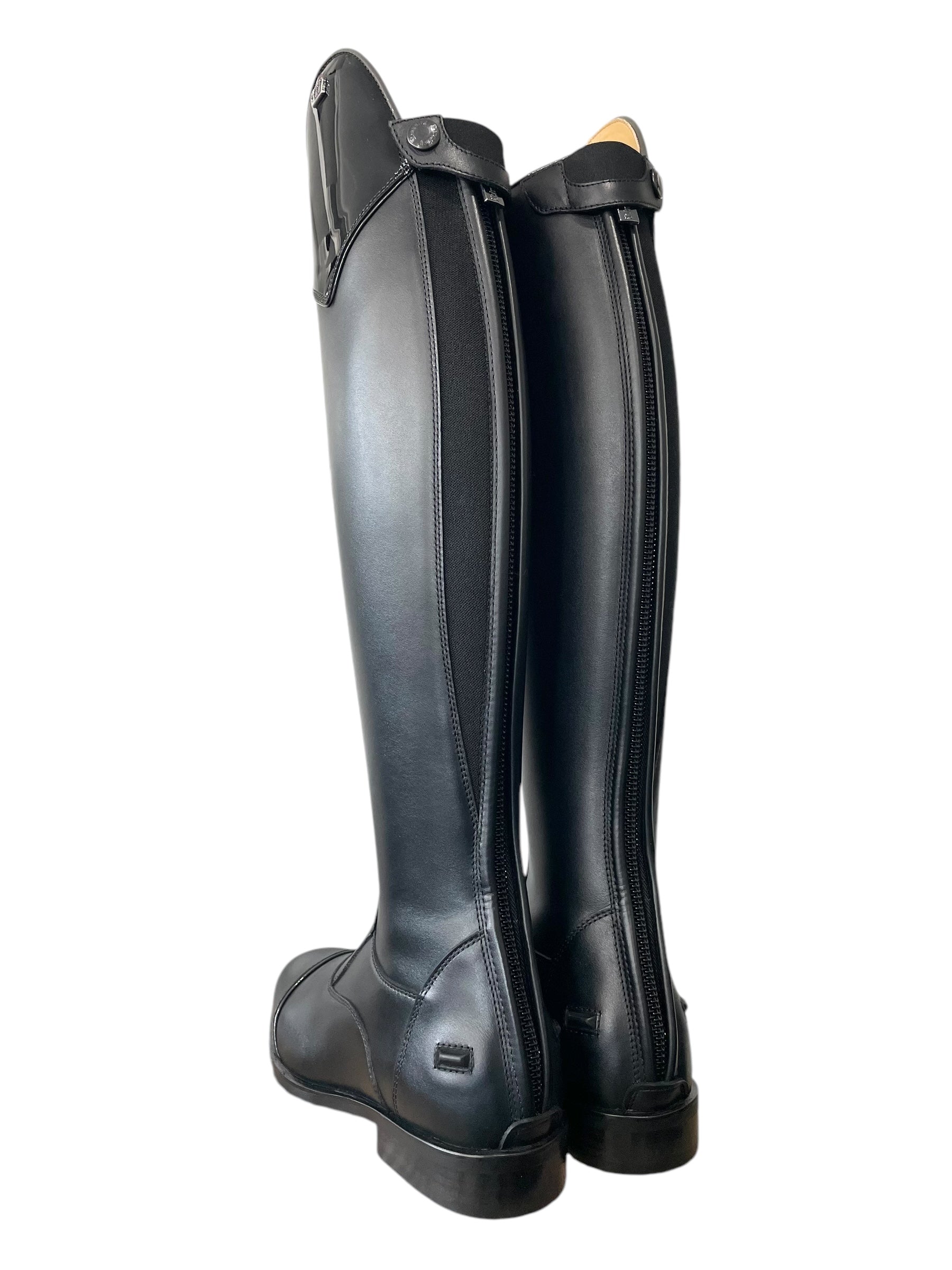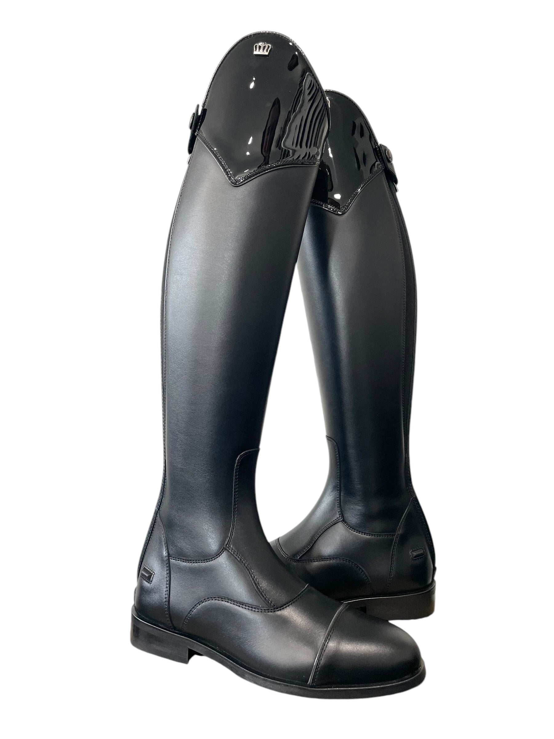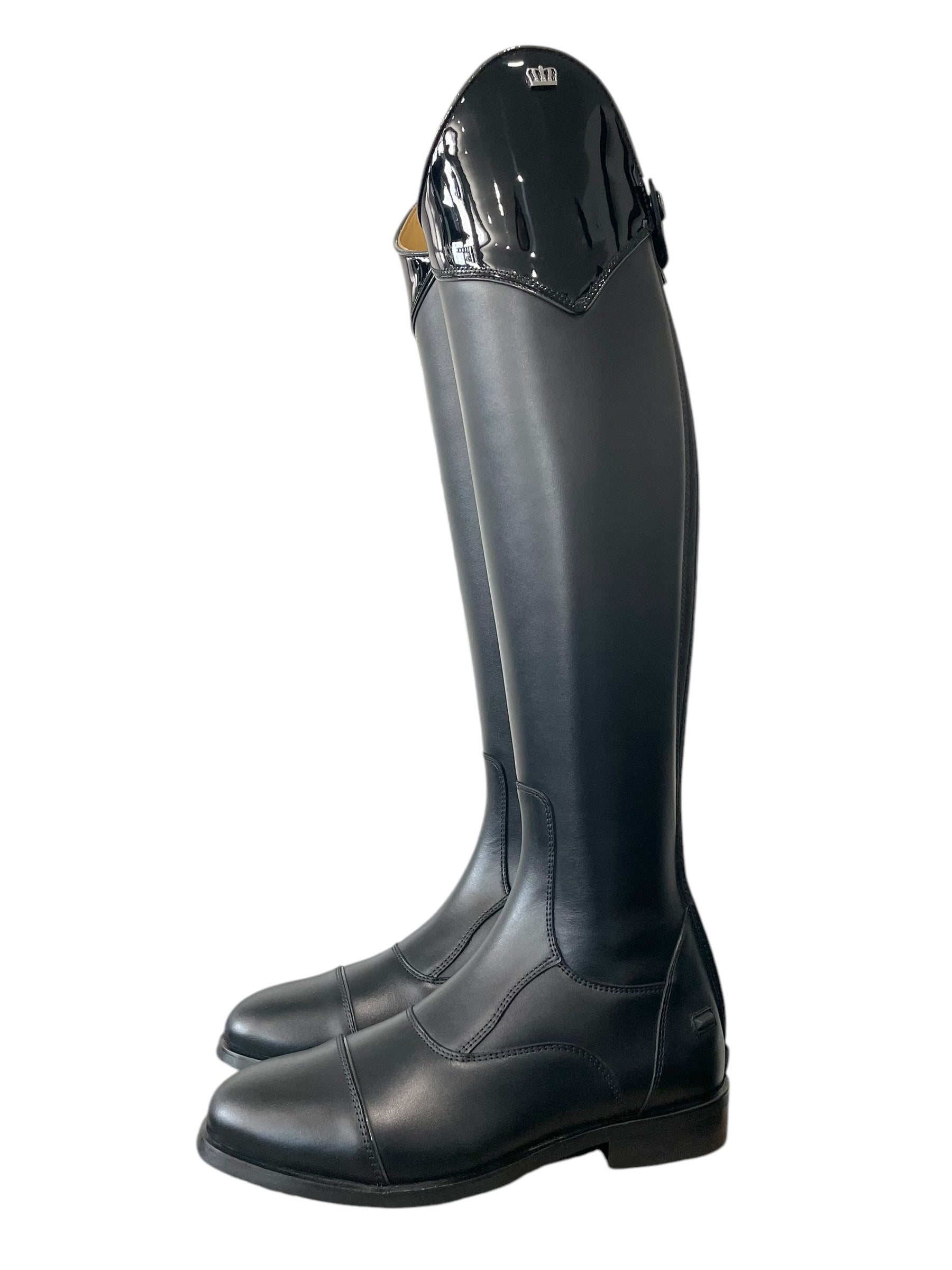 Description: Aspen black base, Anna top in roma black with roma grey piping, silver logo crown, and black outsole.