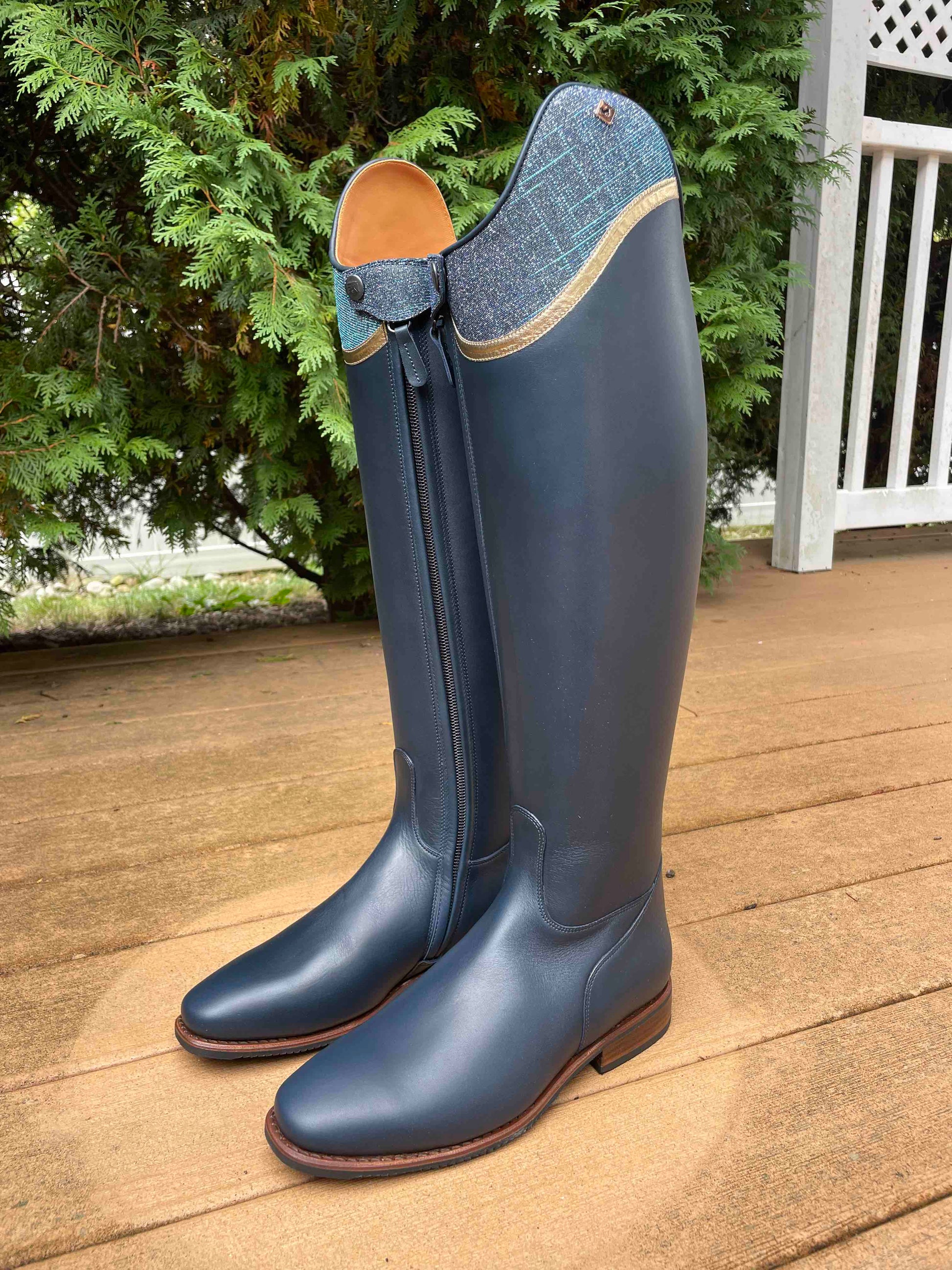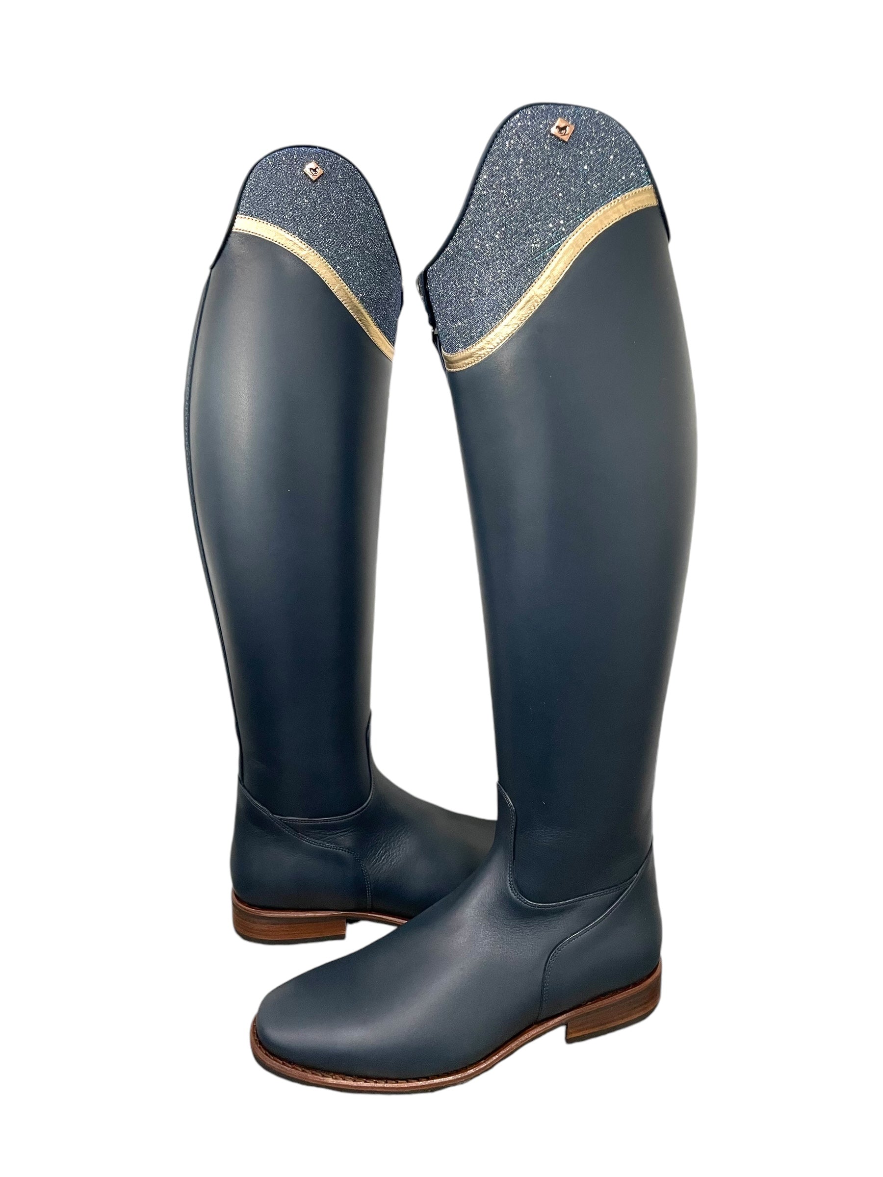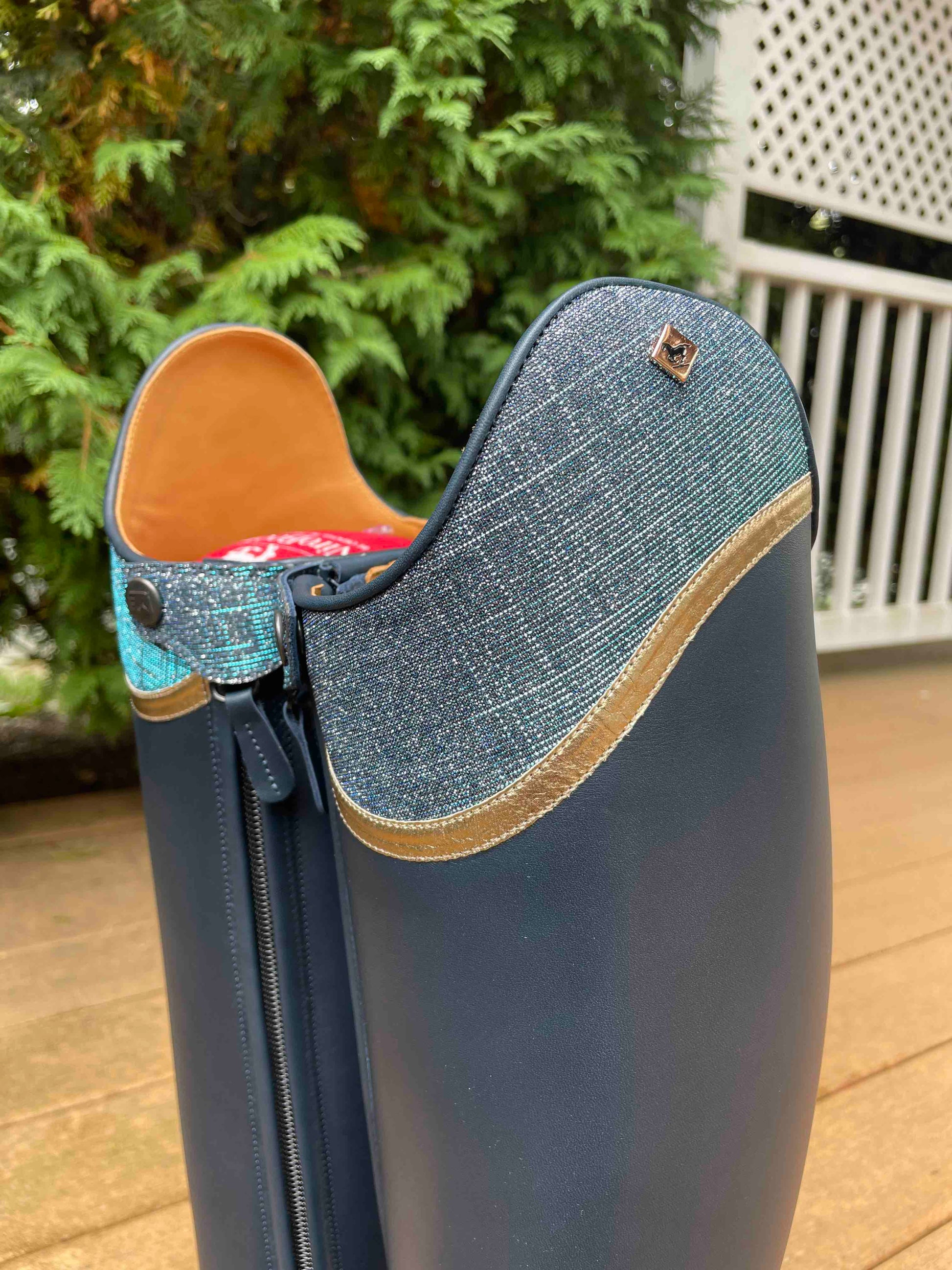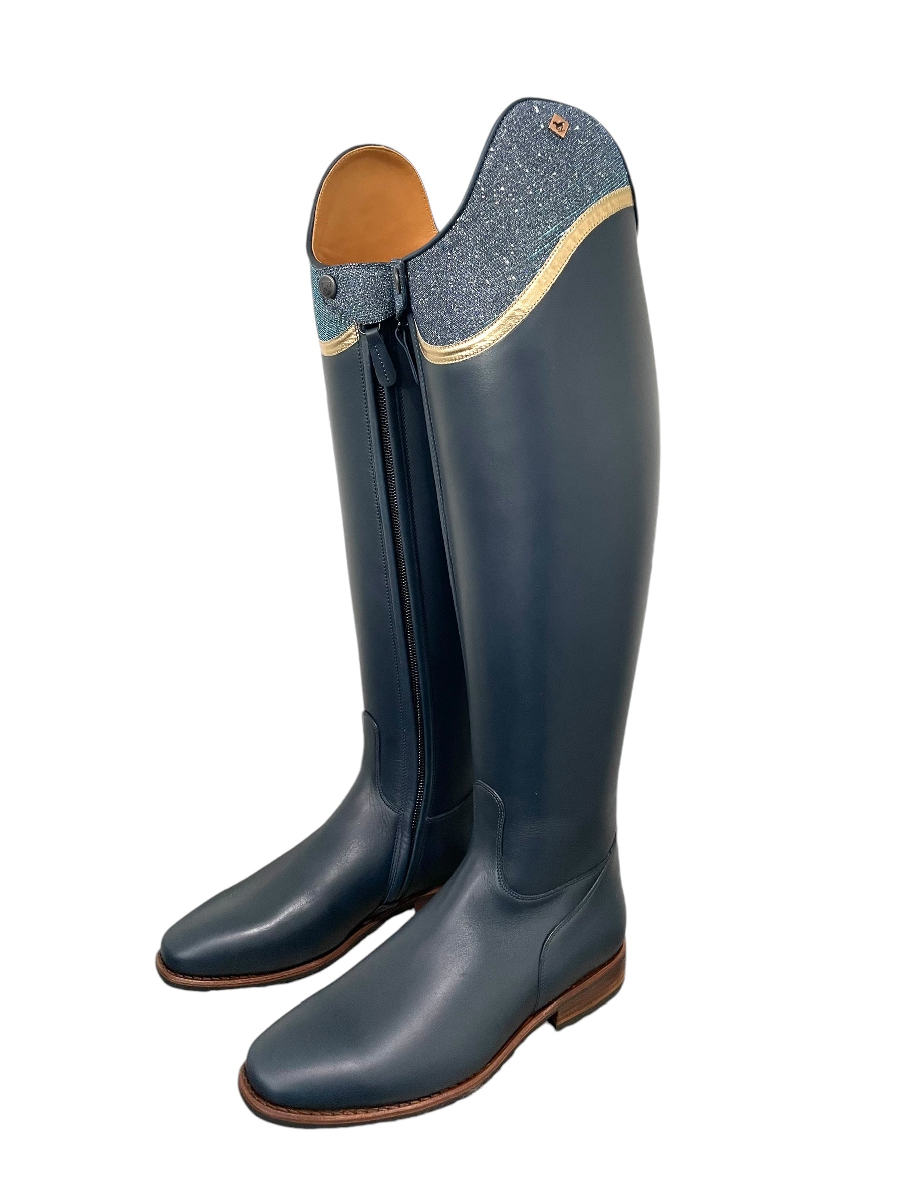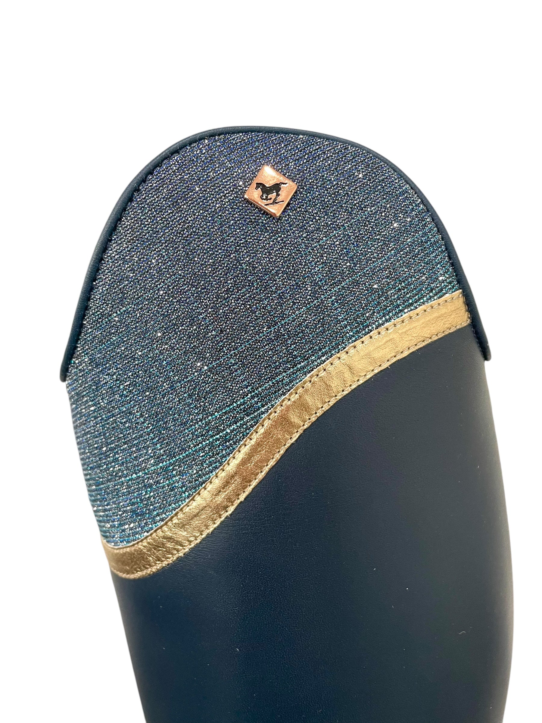 Description: WRAT blue oceano base, G25 Lisa top in iride blue and satin 627, rose gold logo, and brown outsole.