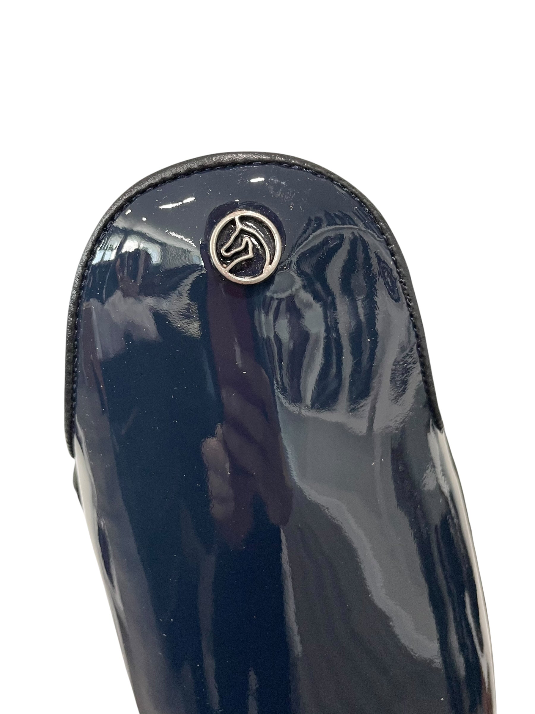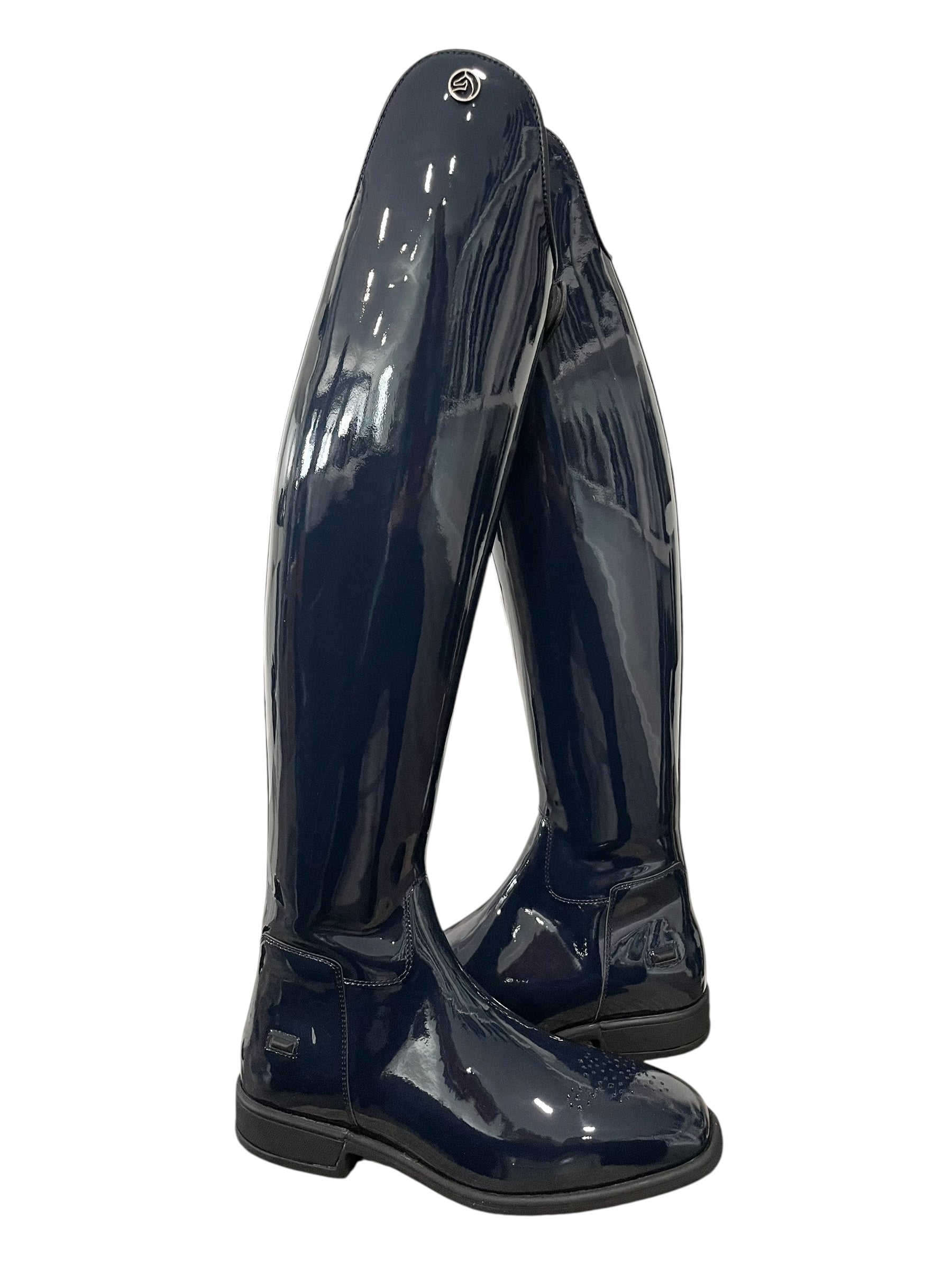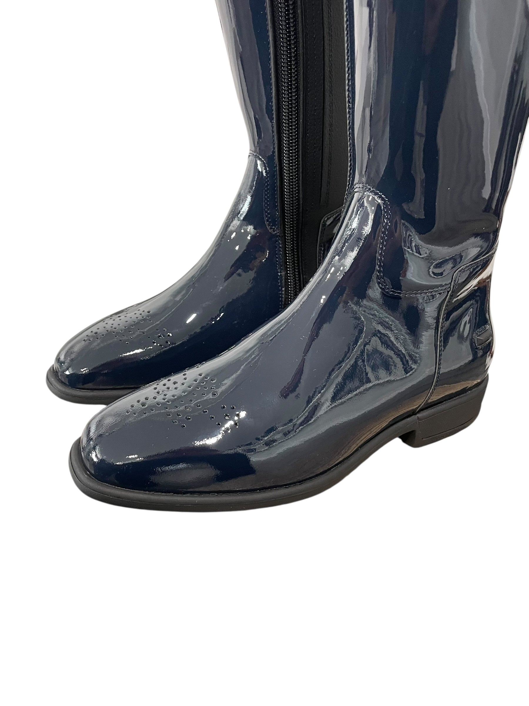 Description: Navy patent base, brogues on the toe, and black outsole.