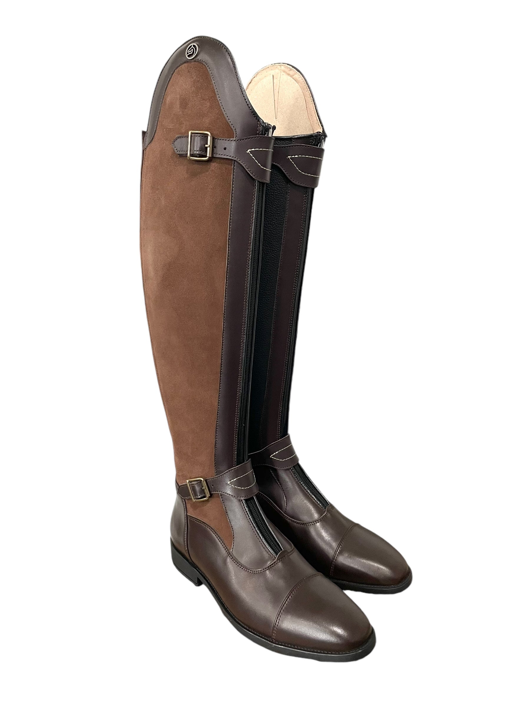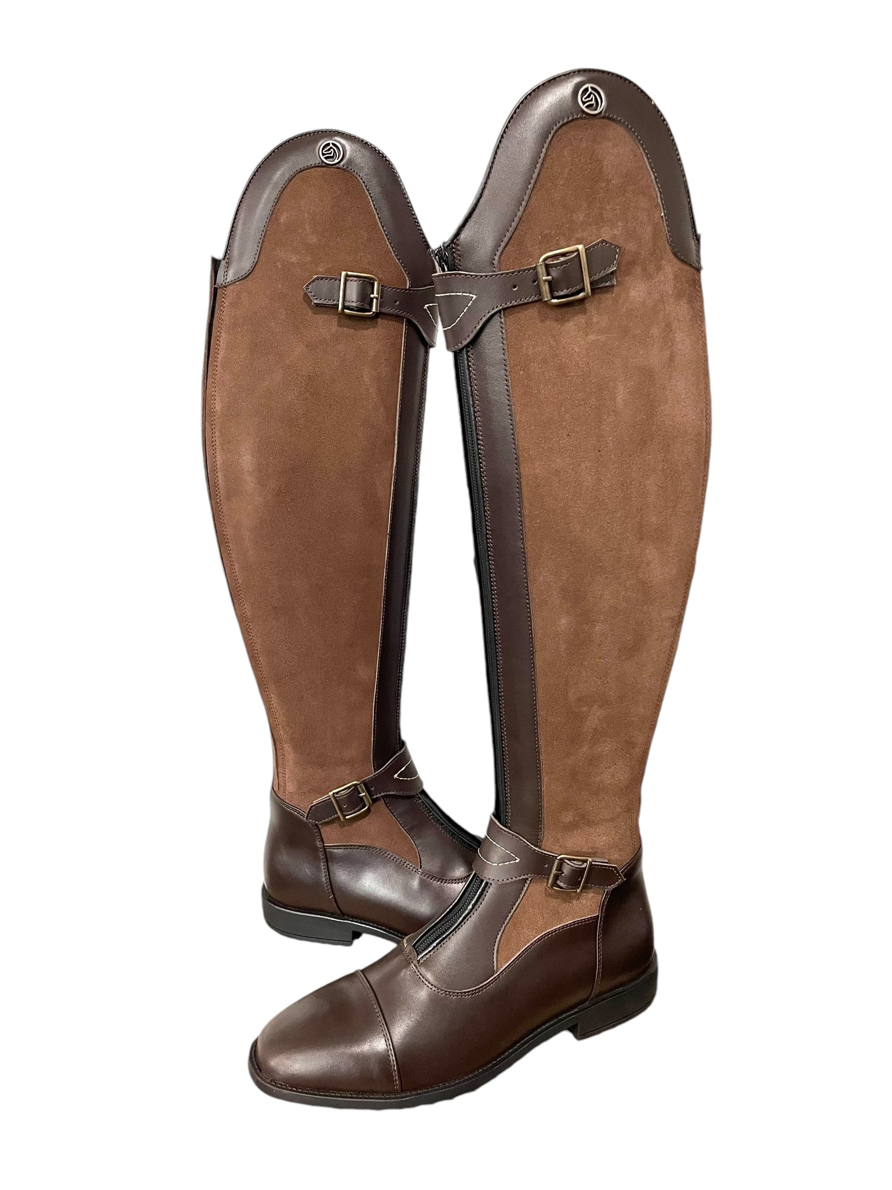 Description: P3 brown base, P8 brown suede shaft, T3 top in P3 brown, and black S3 outsole.