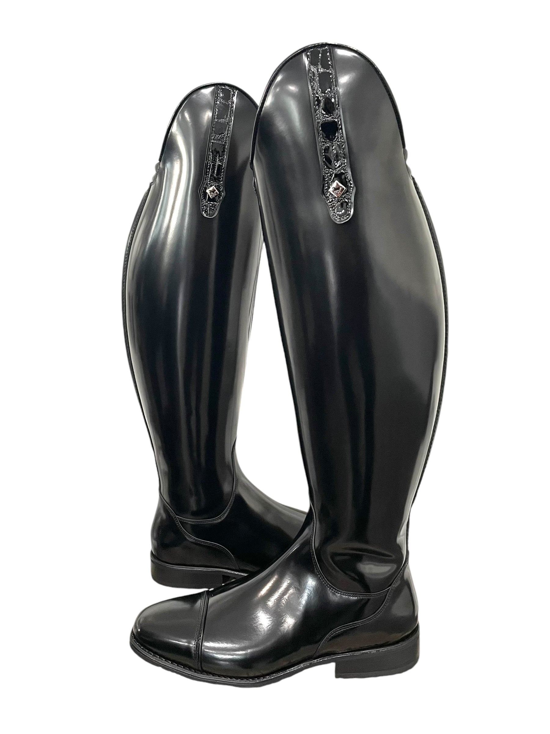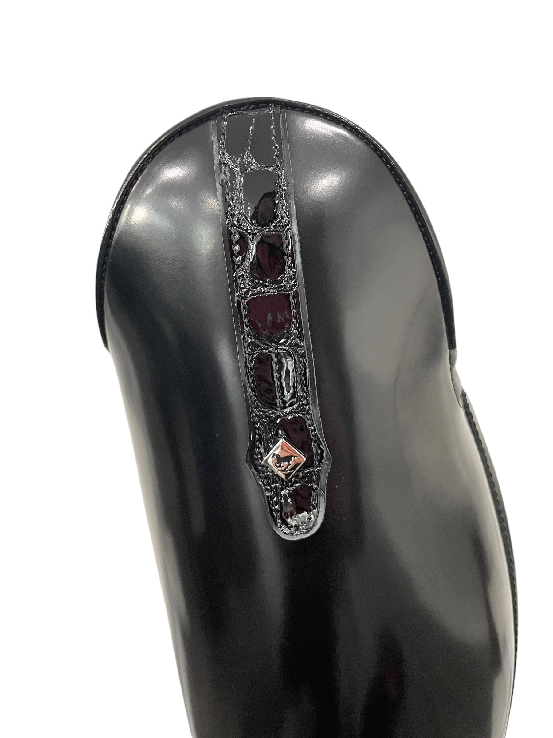 Description: Brushed black base, top tab in lucido black with silver logo, E3 toecap, comfort knee and V-gusset on inside, and black outsole.