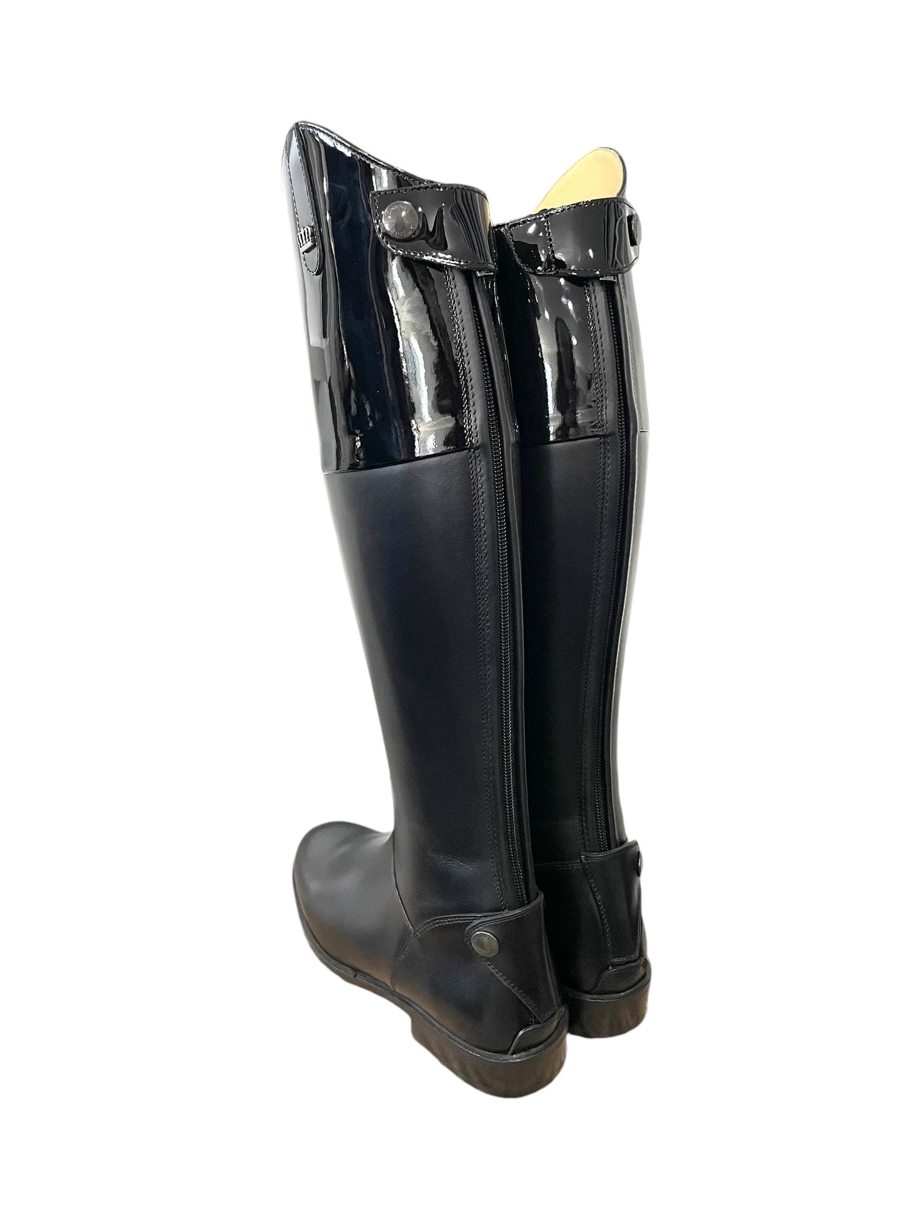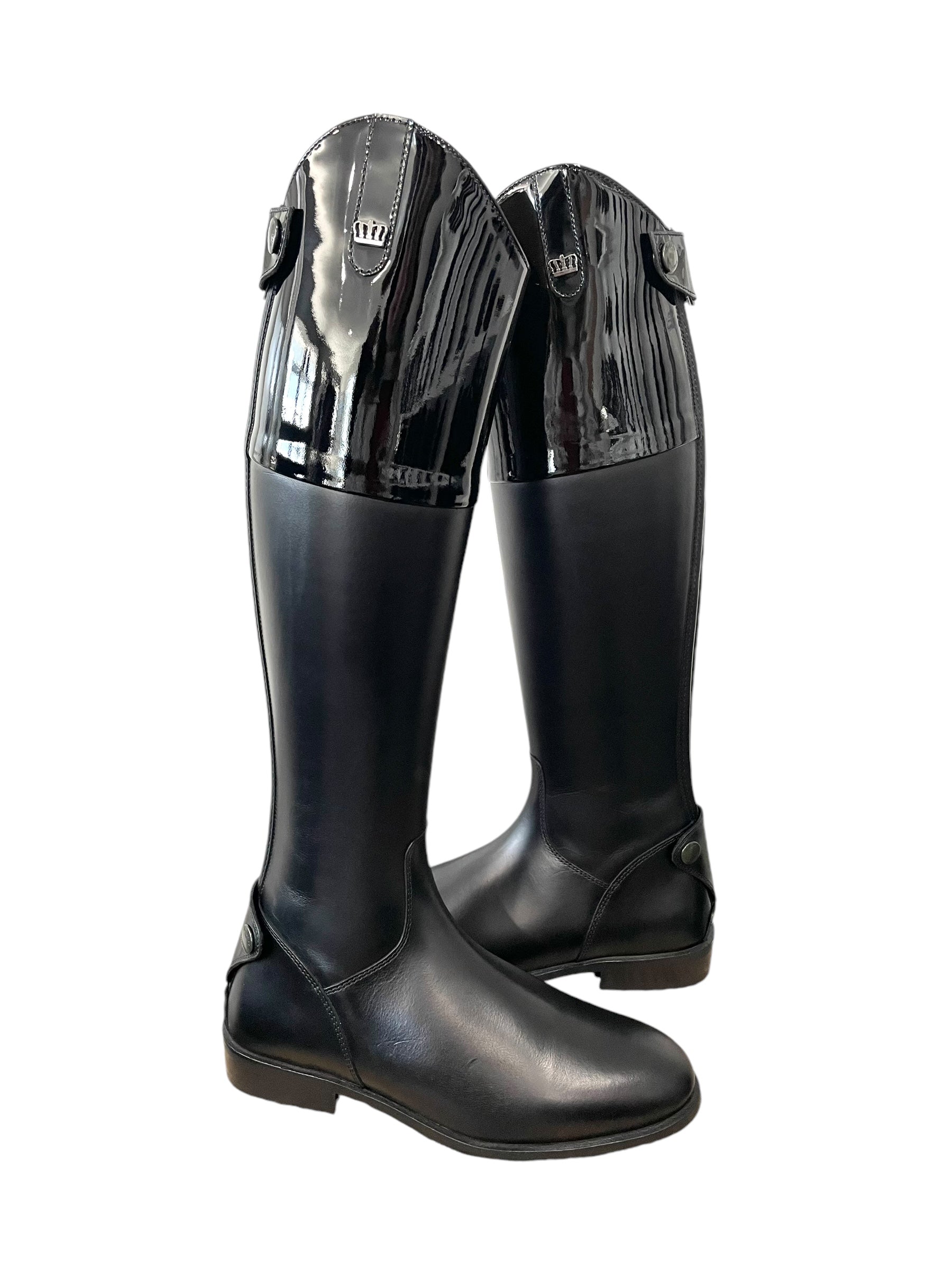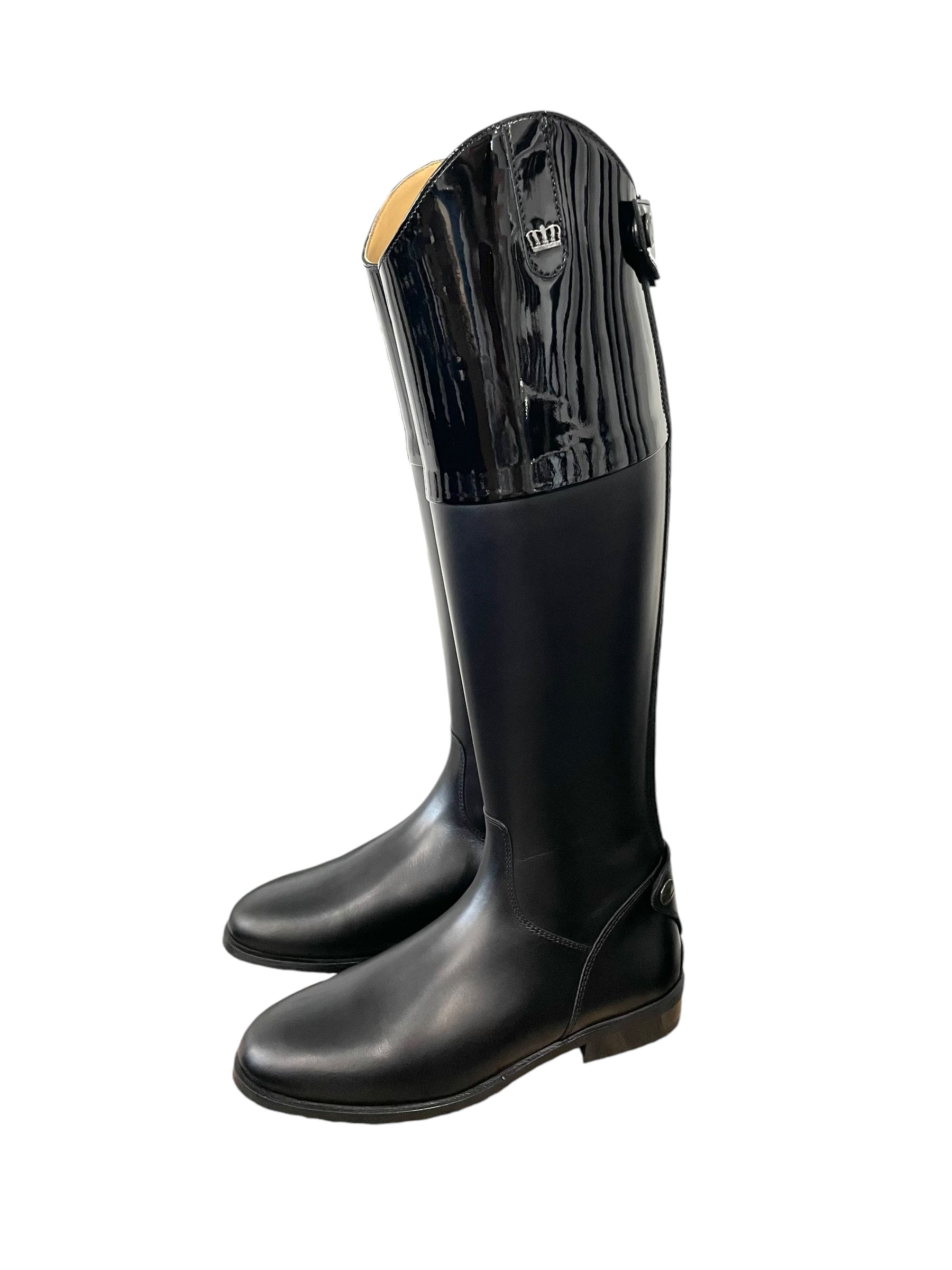 Description: Nature black base, Hunter top in patent black, top zip protector in patent black and lower zip protector in nature black, polished black logo crown, and black outsole.