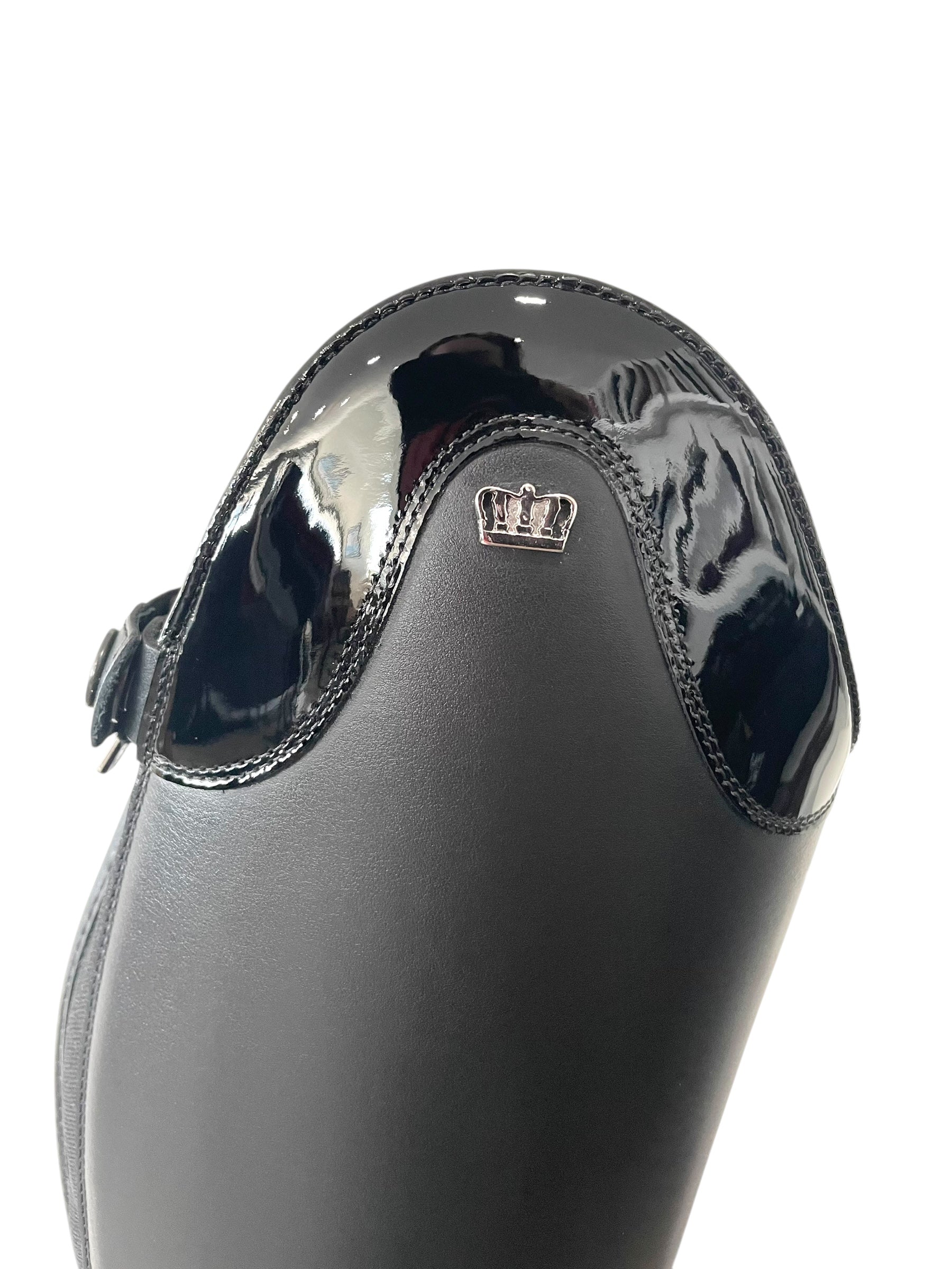 Description: Aspen black base, Libra top in roma black, black elastic along shaft, silver logo crown, and brown outsole.