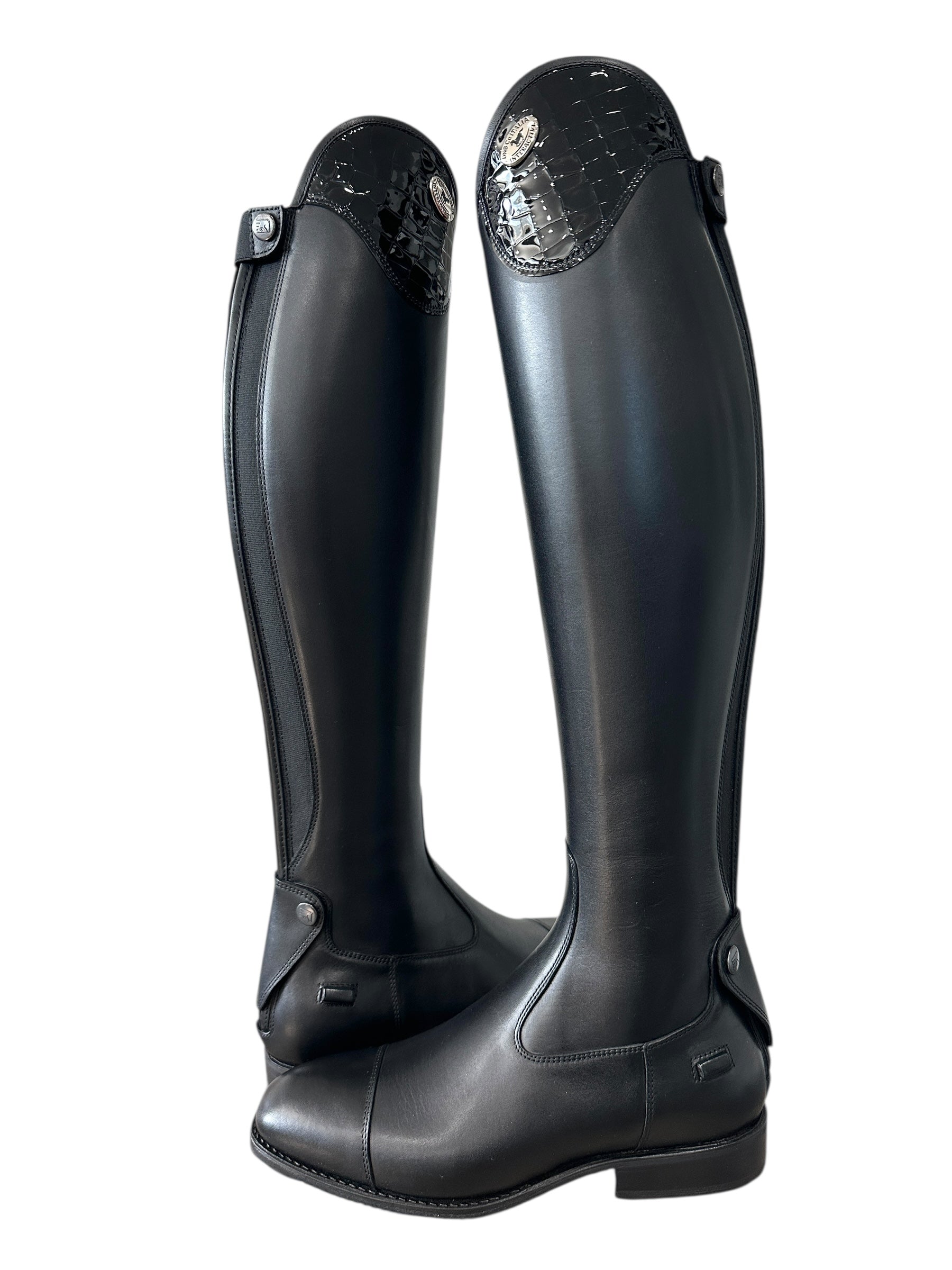 Description: WRAT black base, Salento top in patent cocco nero, silver logo, E2 toecap, and black sole.