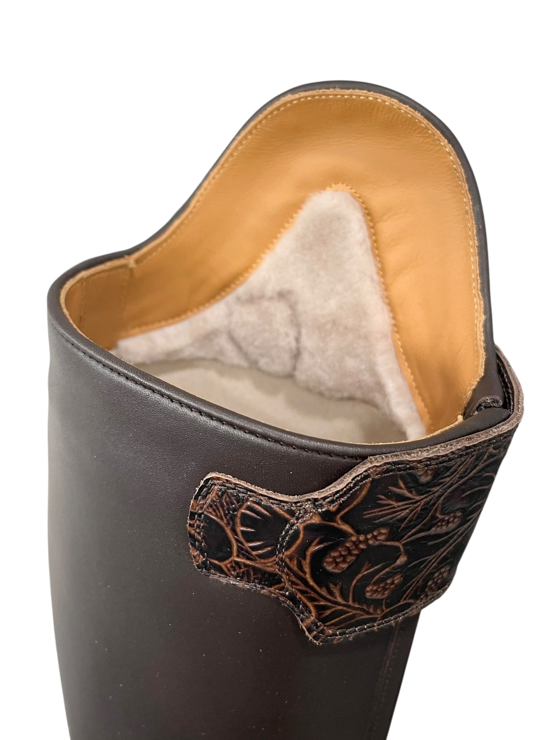 Description: WRAT caffe base, top strap in anna brown with gold buckle, E2 toecap, lambskin lining, gold logo, and brown outsole.
