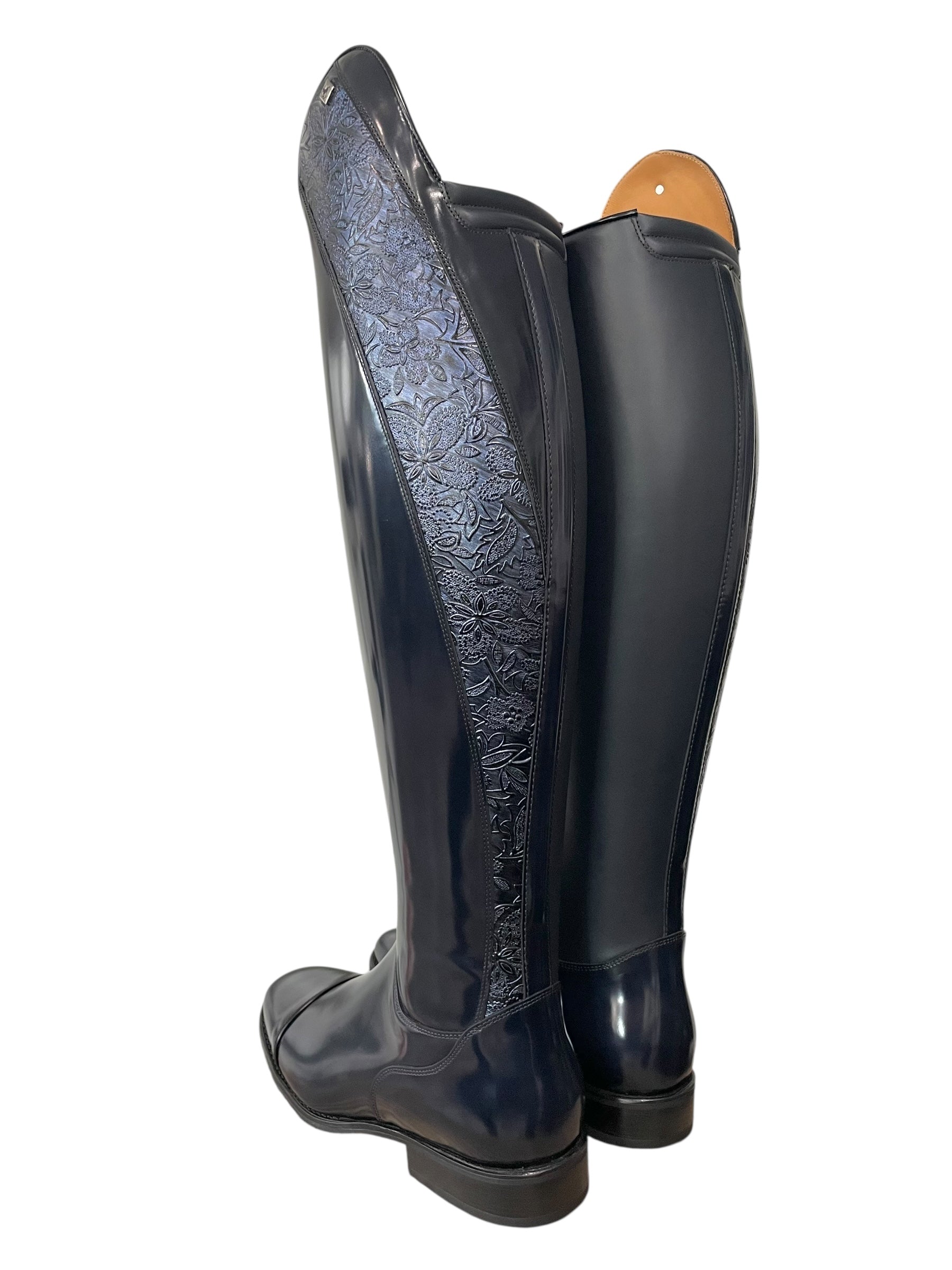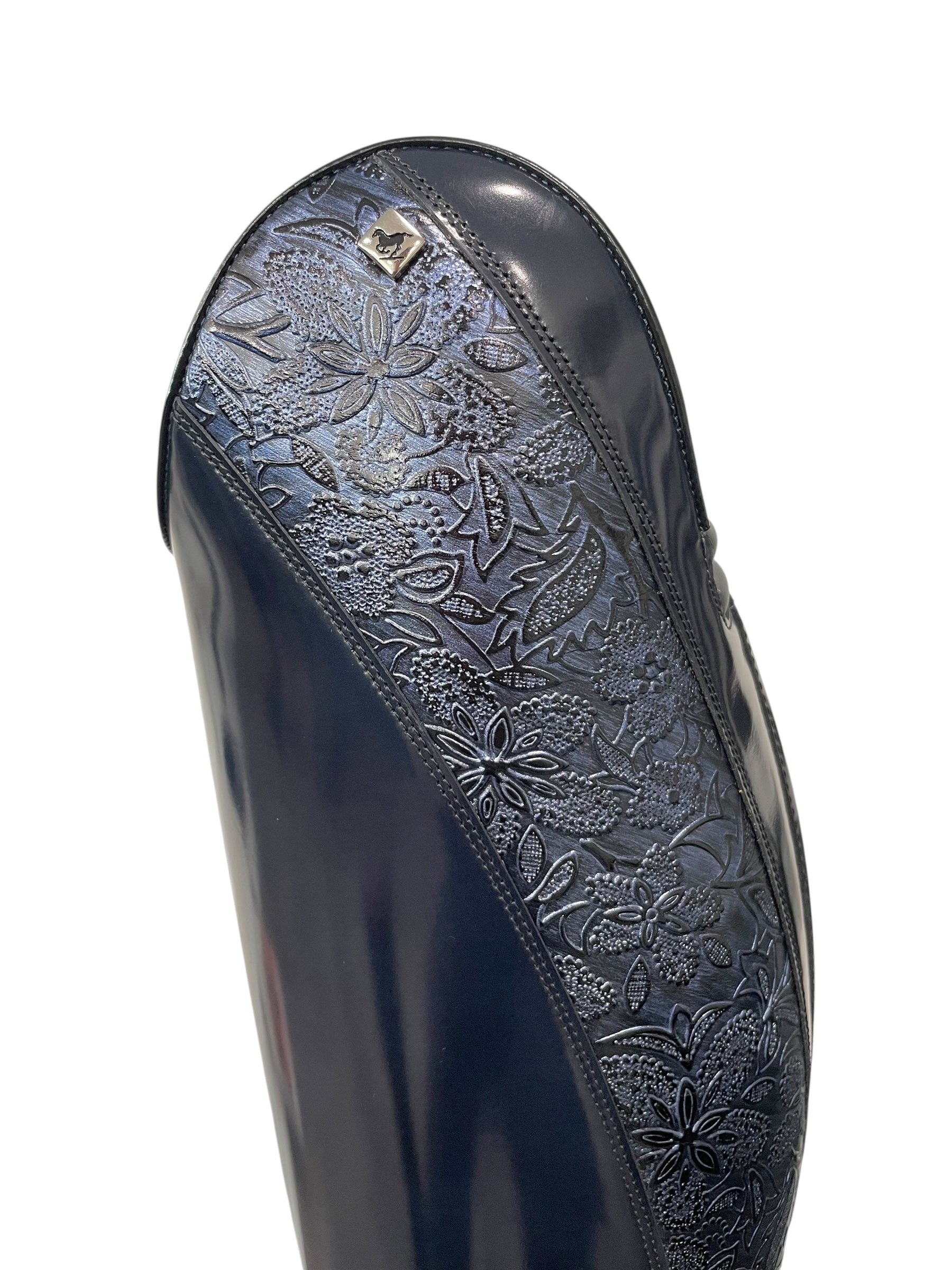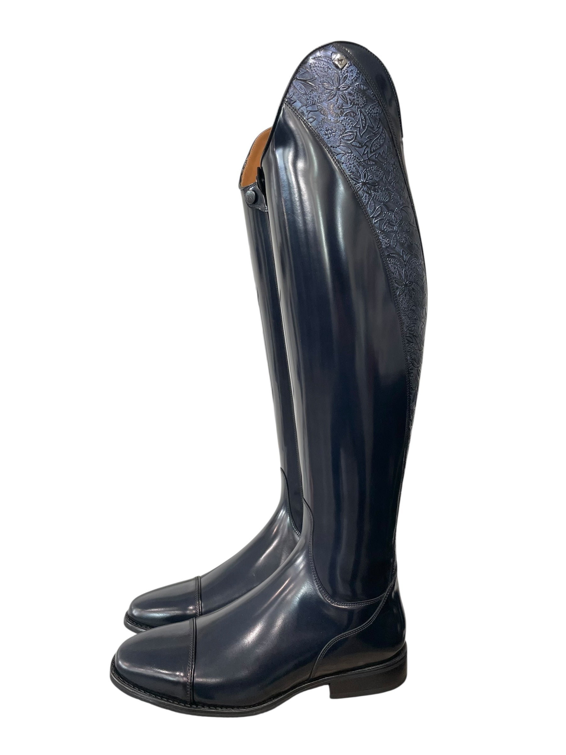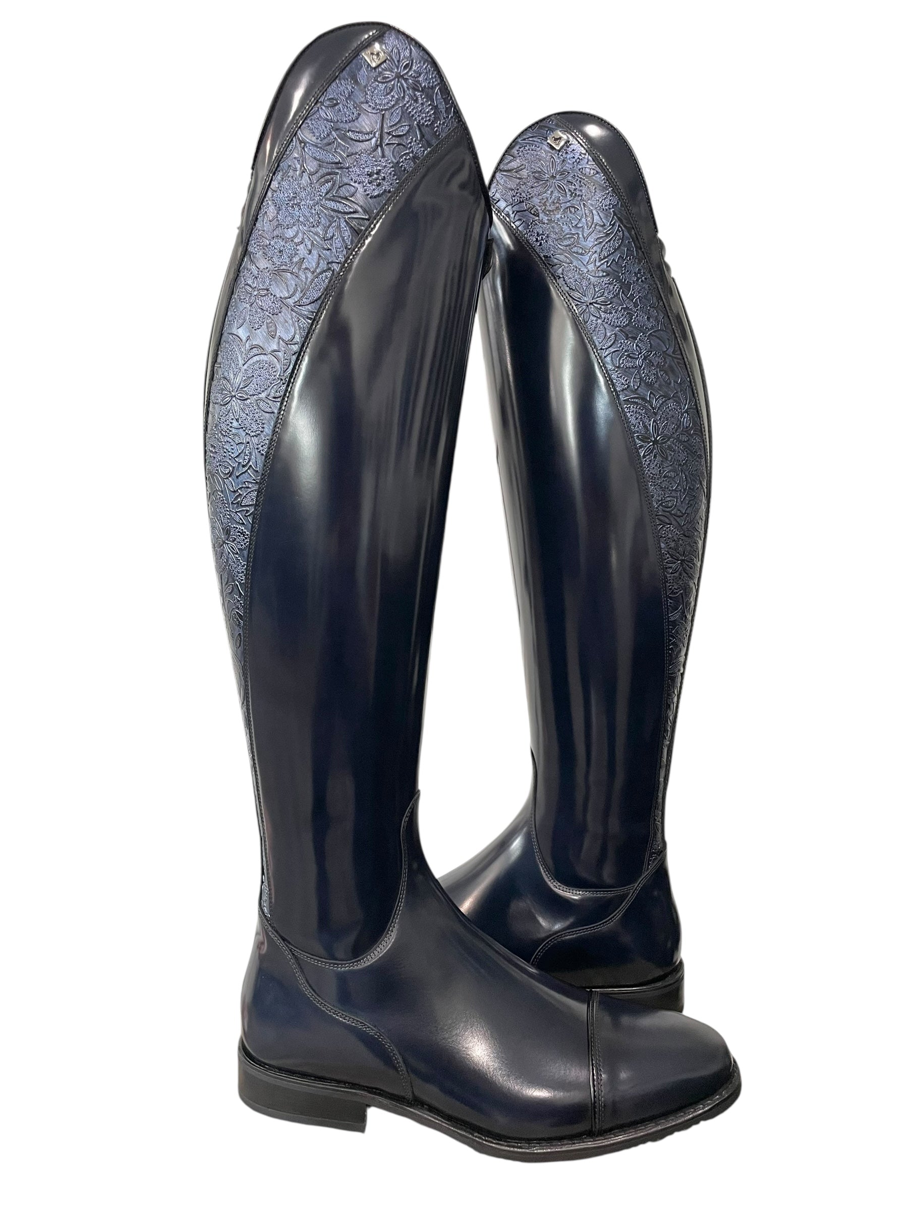 Description: Brushed blue uniform base, G39 Gali top in greta electric blue, Q13 comfort knee, inside shaft in WRAT indaco, silver logo, top and toecap piping in brushed black, and black outsole.