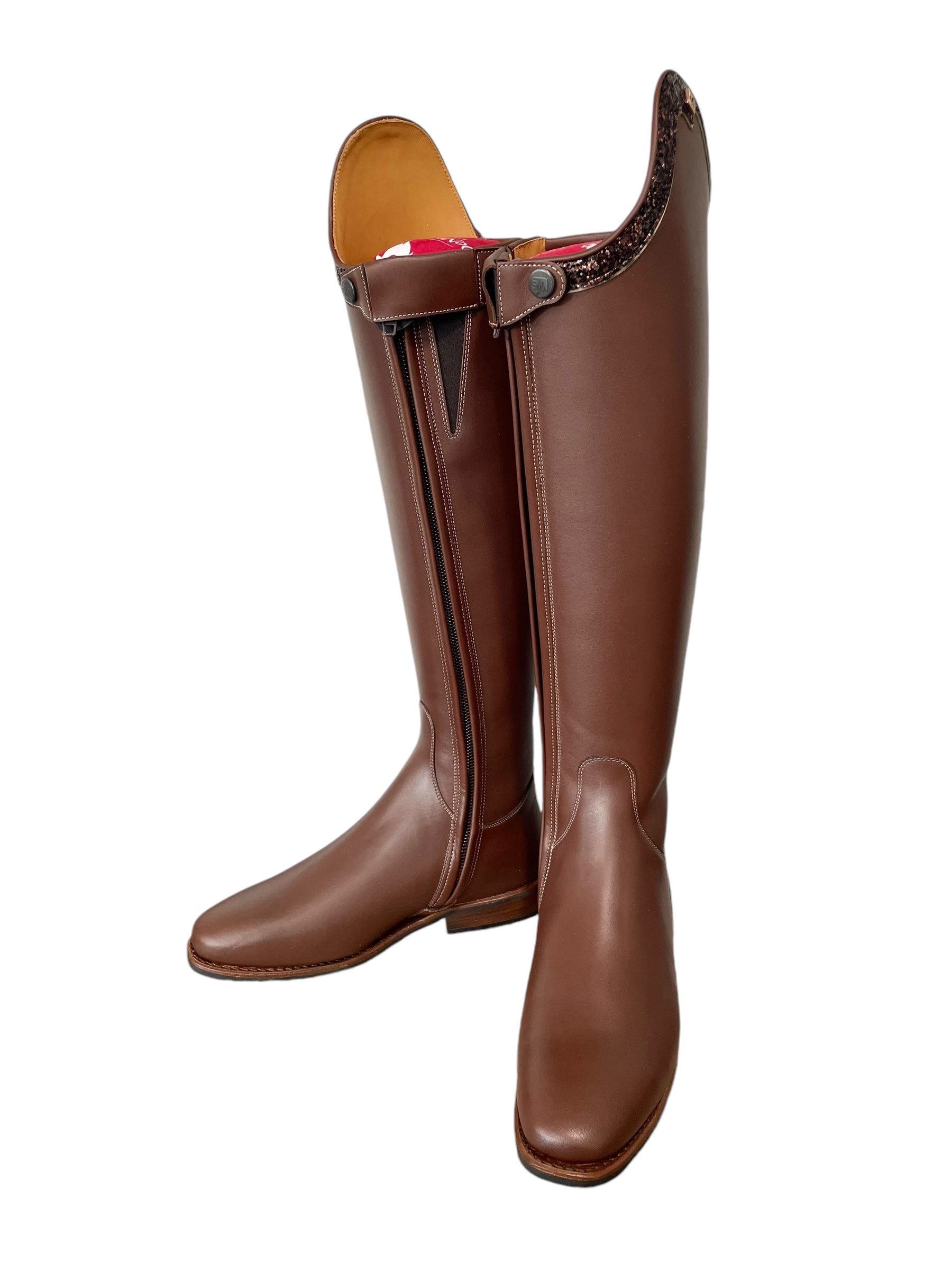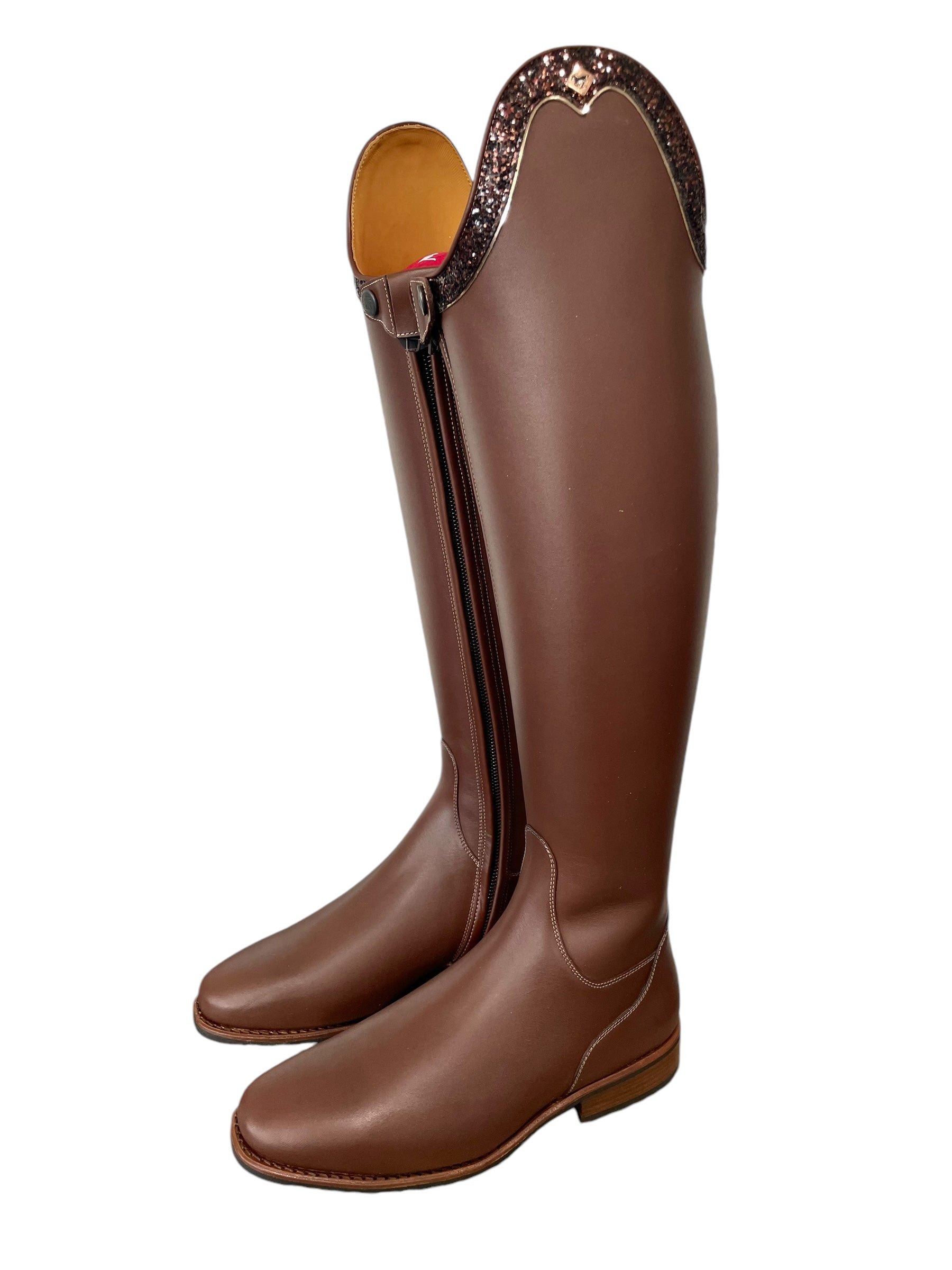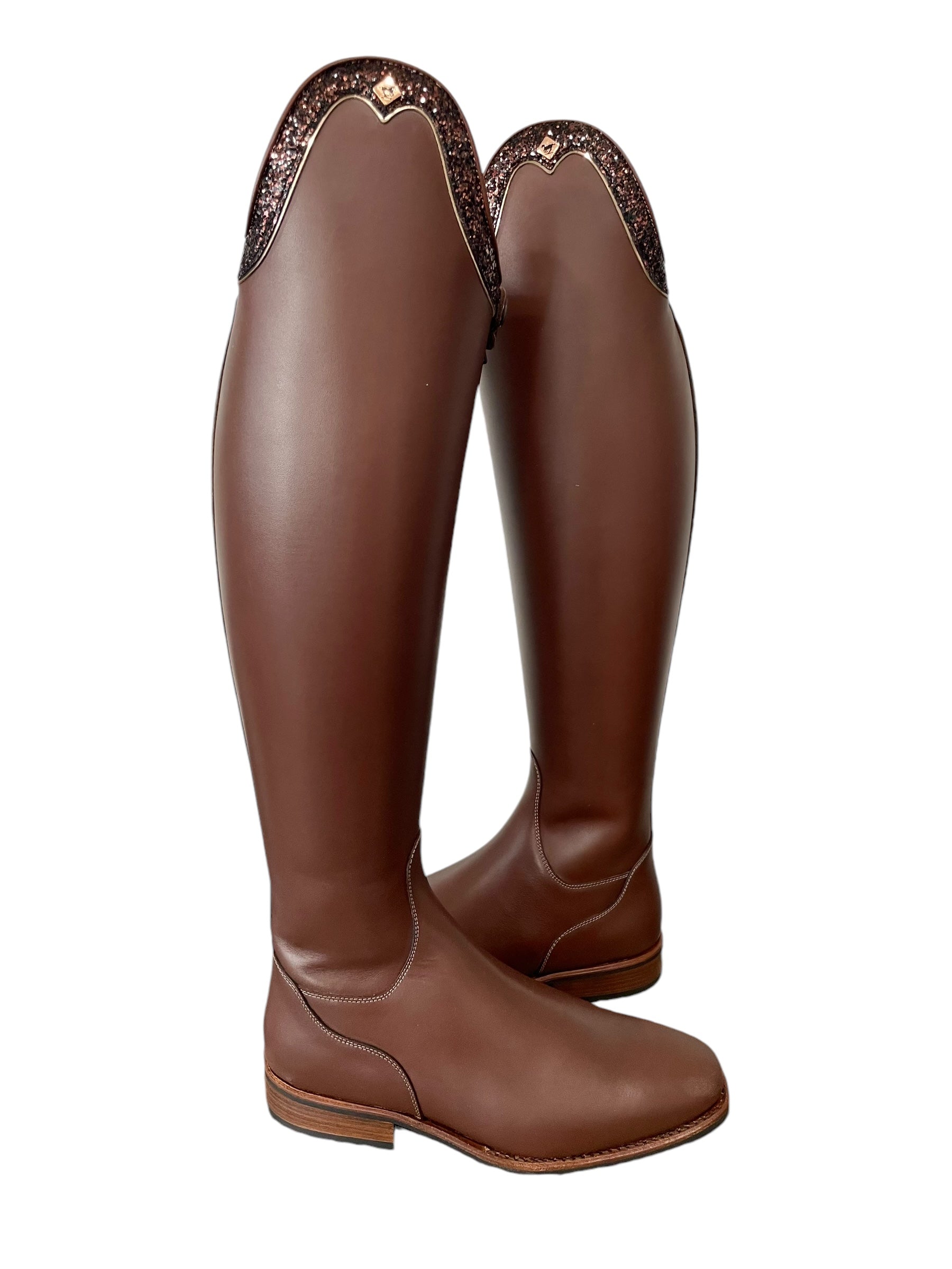 Description: WRAT brown 527 base, G9 top in gala brown with specchio rame piping, Q13 and Q12 elastic, rose gold logo, and brown outsole.