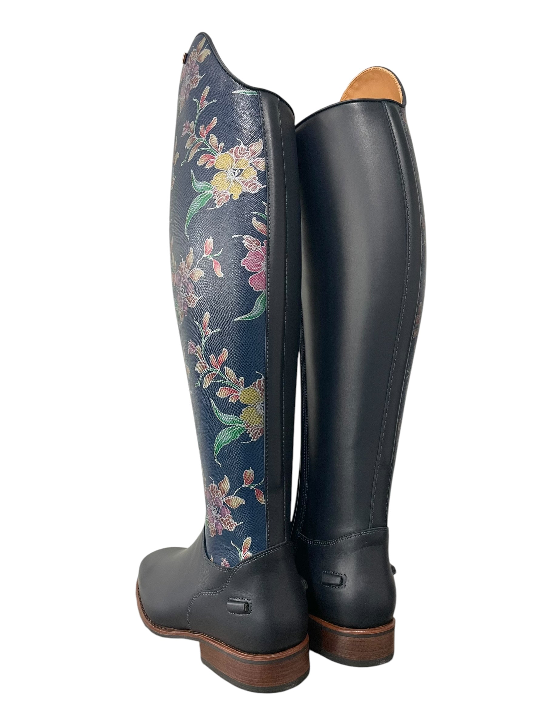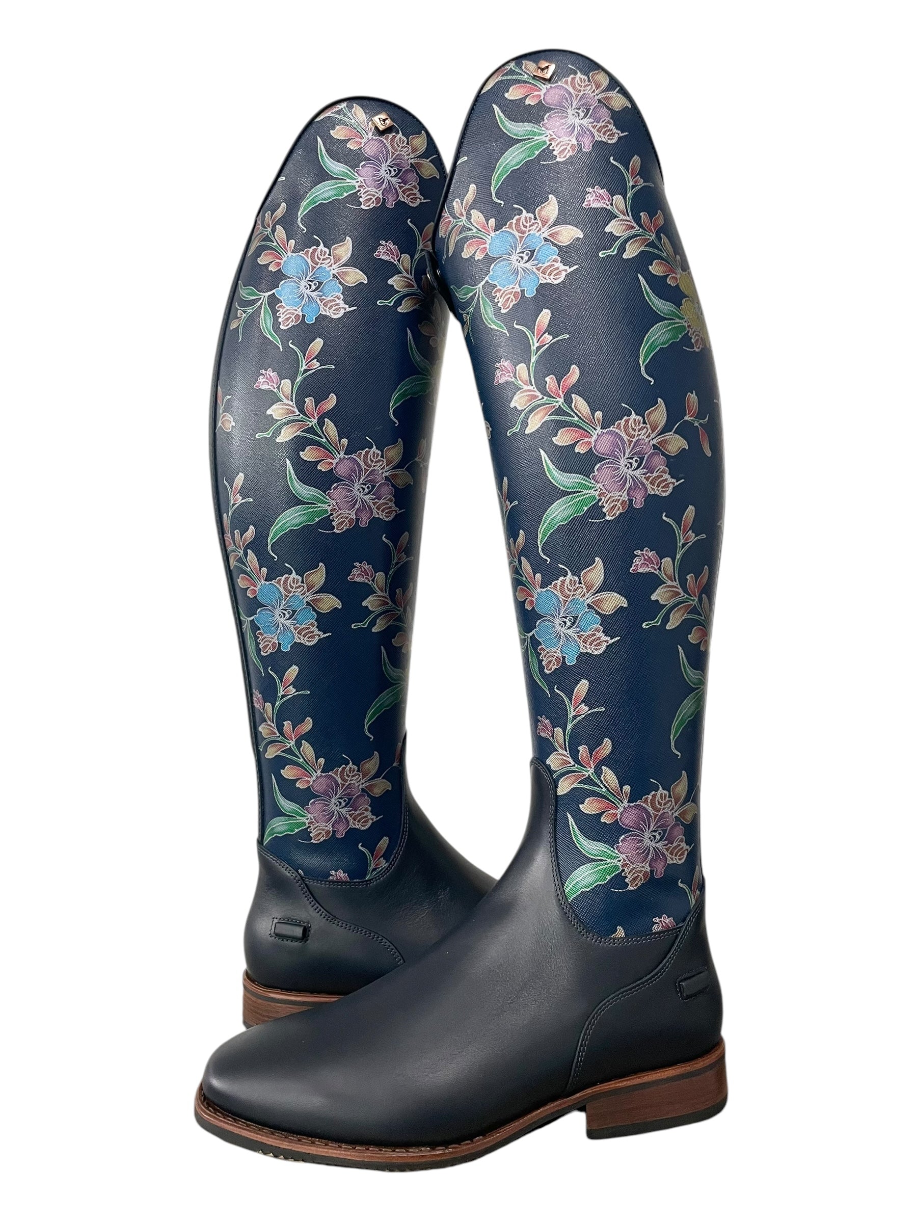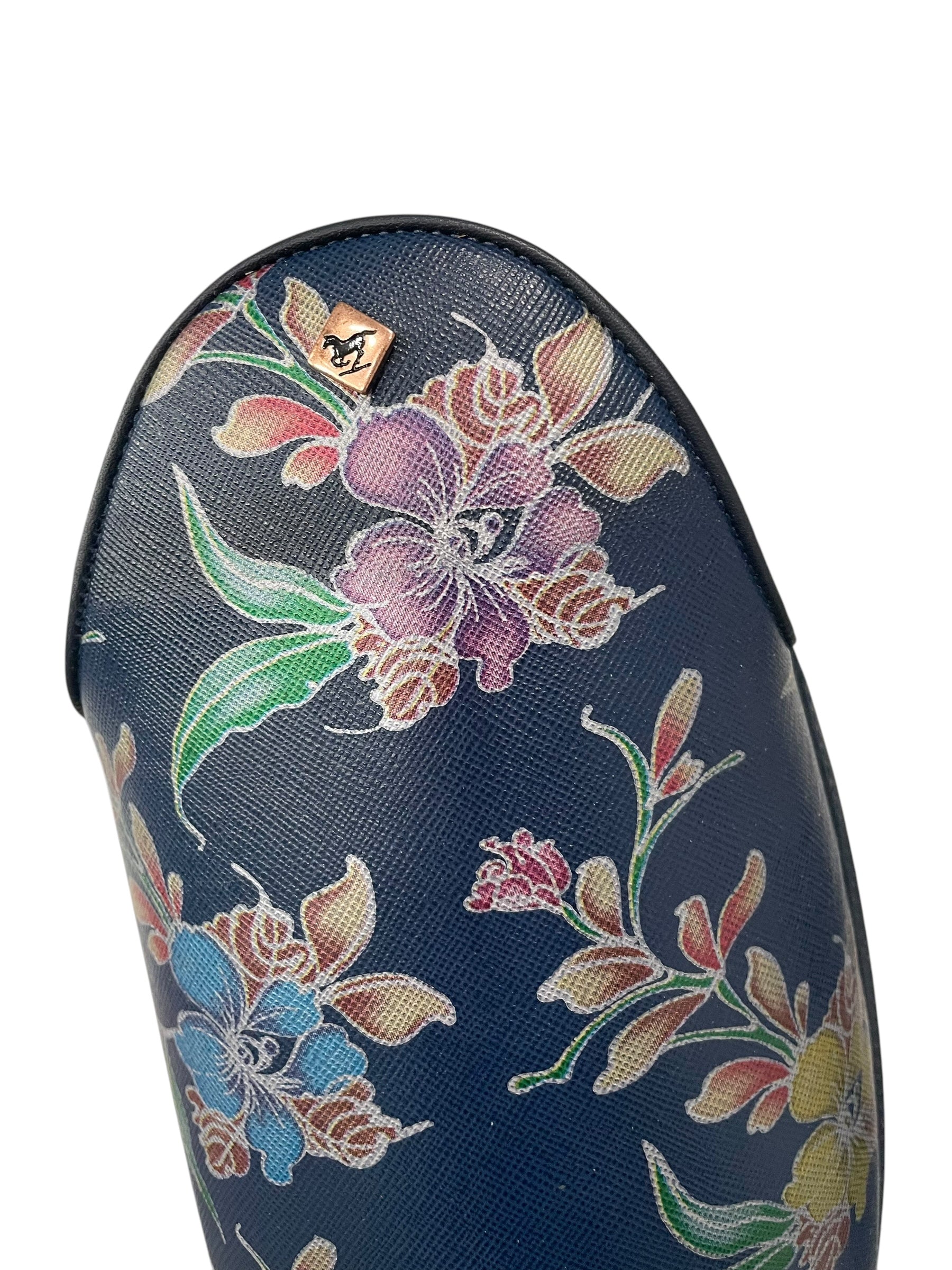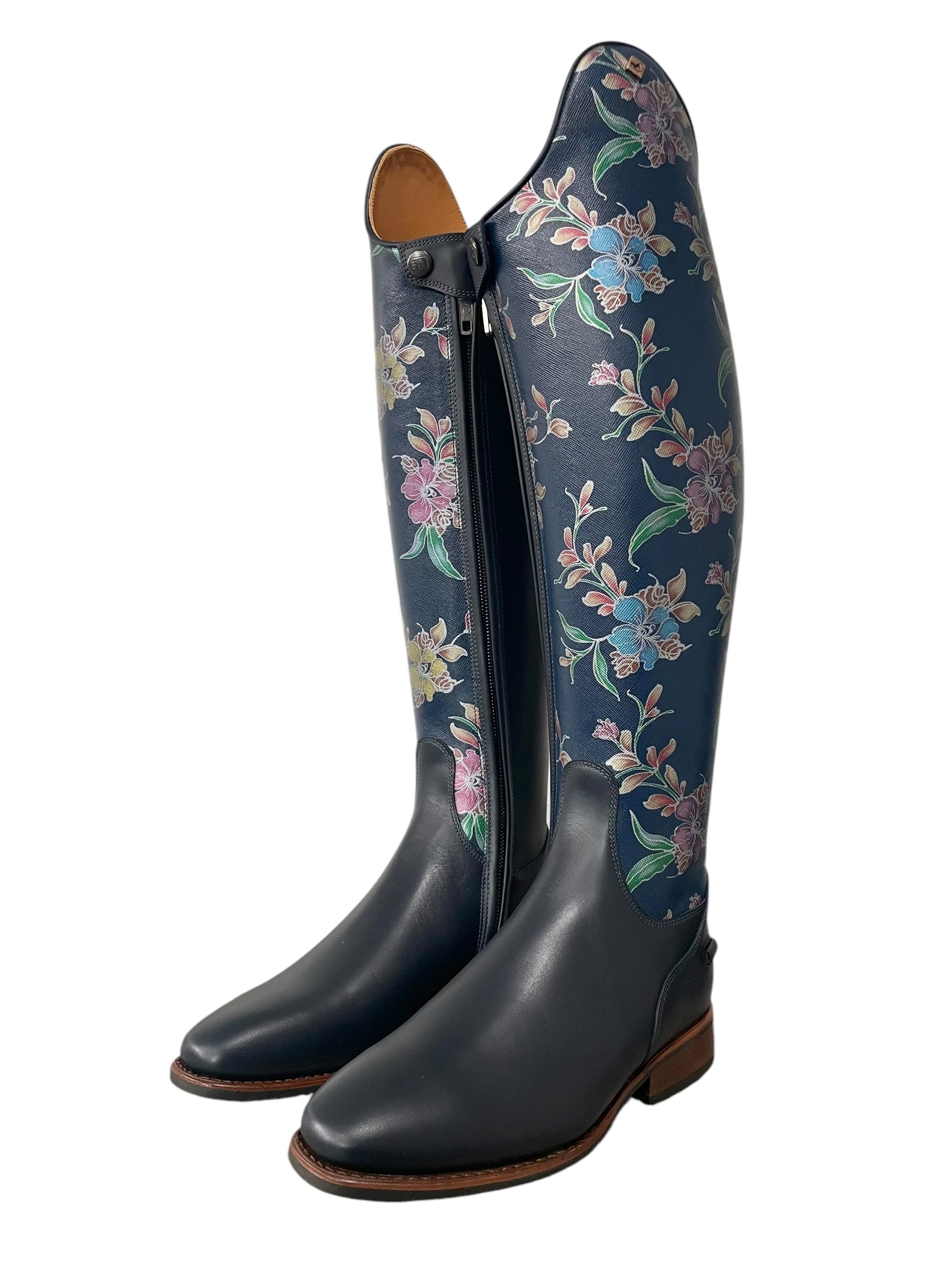 Description: WRAT indaco foot and base with lilium blue shaft, rose gold logo, and brown outsole.