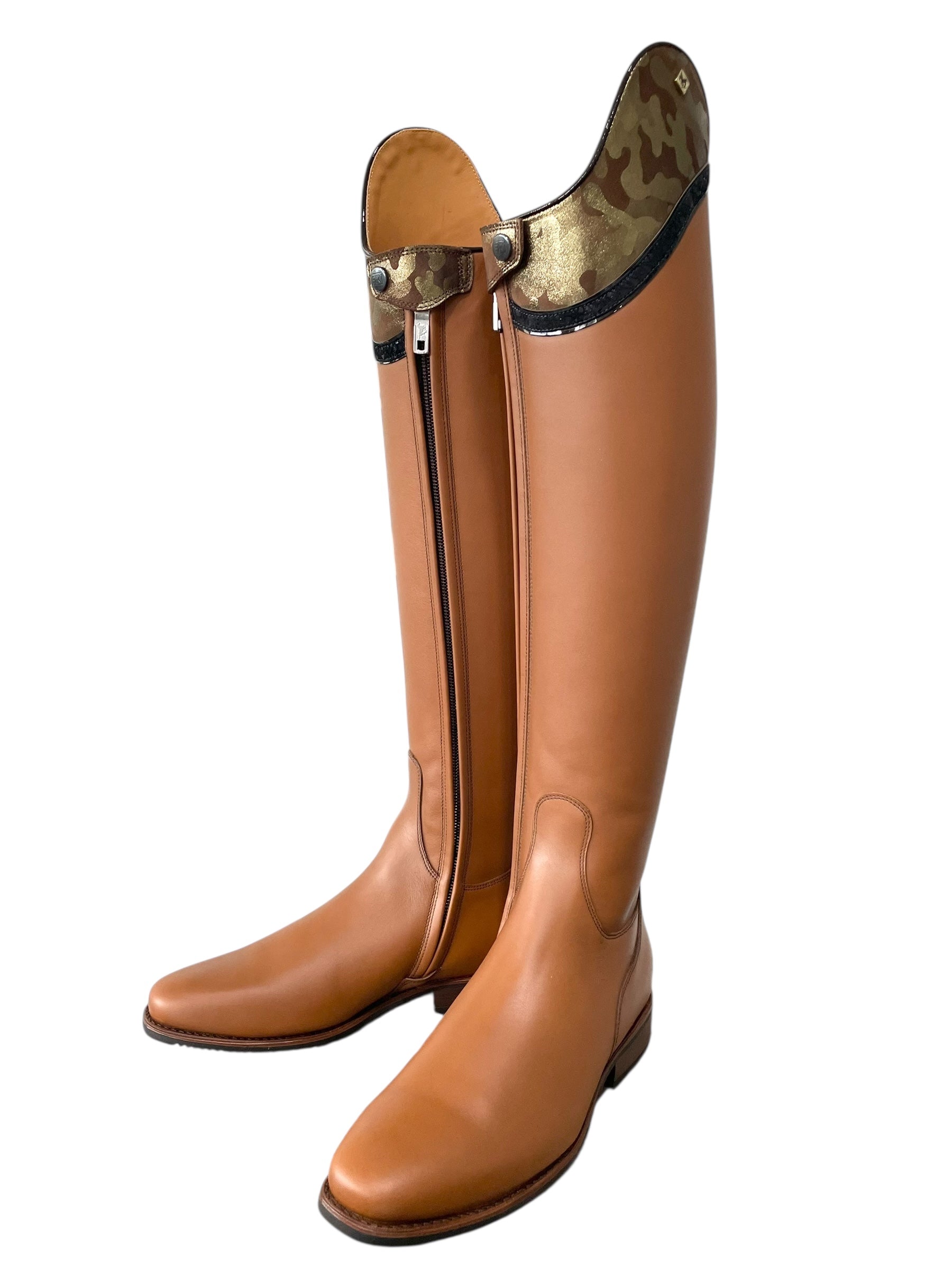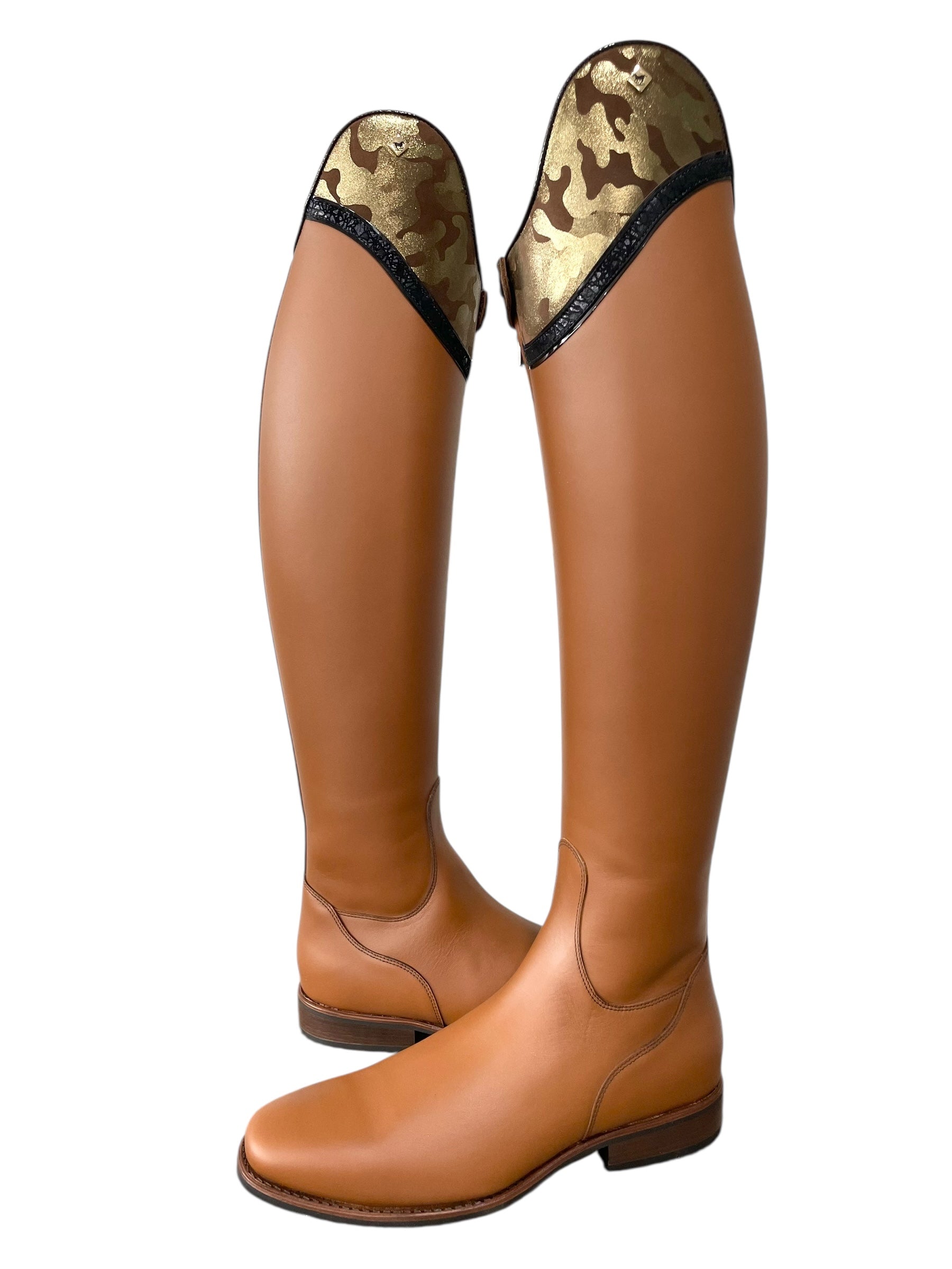 Description: WRAT oxford base, G25 Lisa top in camo suede brown with dedalo blue strip and patent moka top piping, gold logo, and brown outsole.