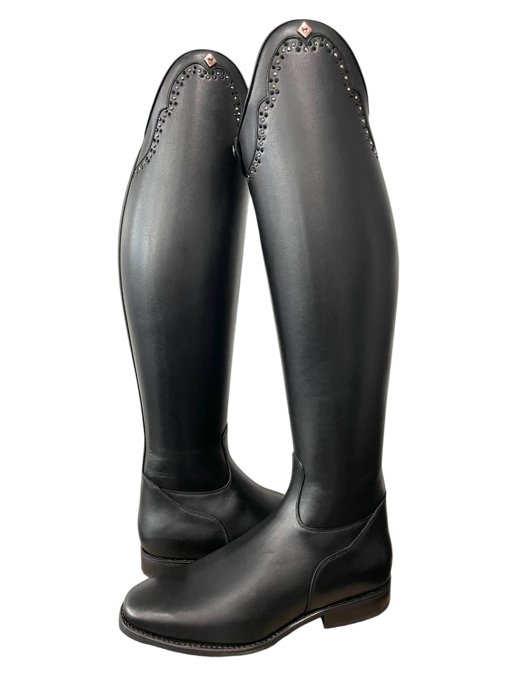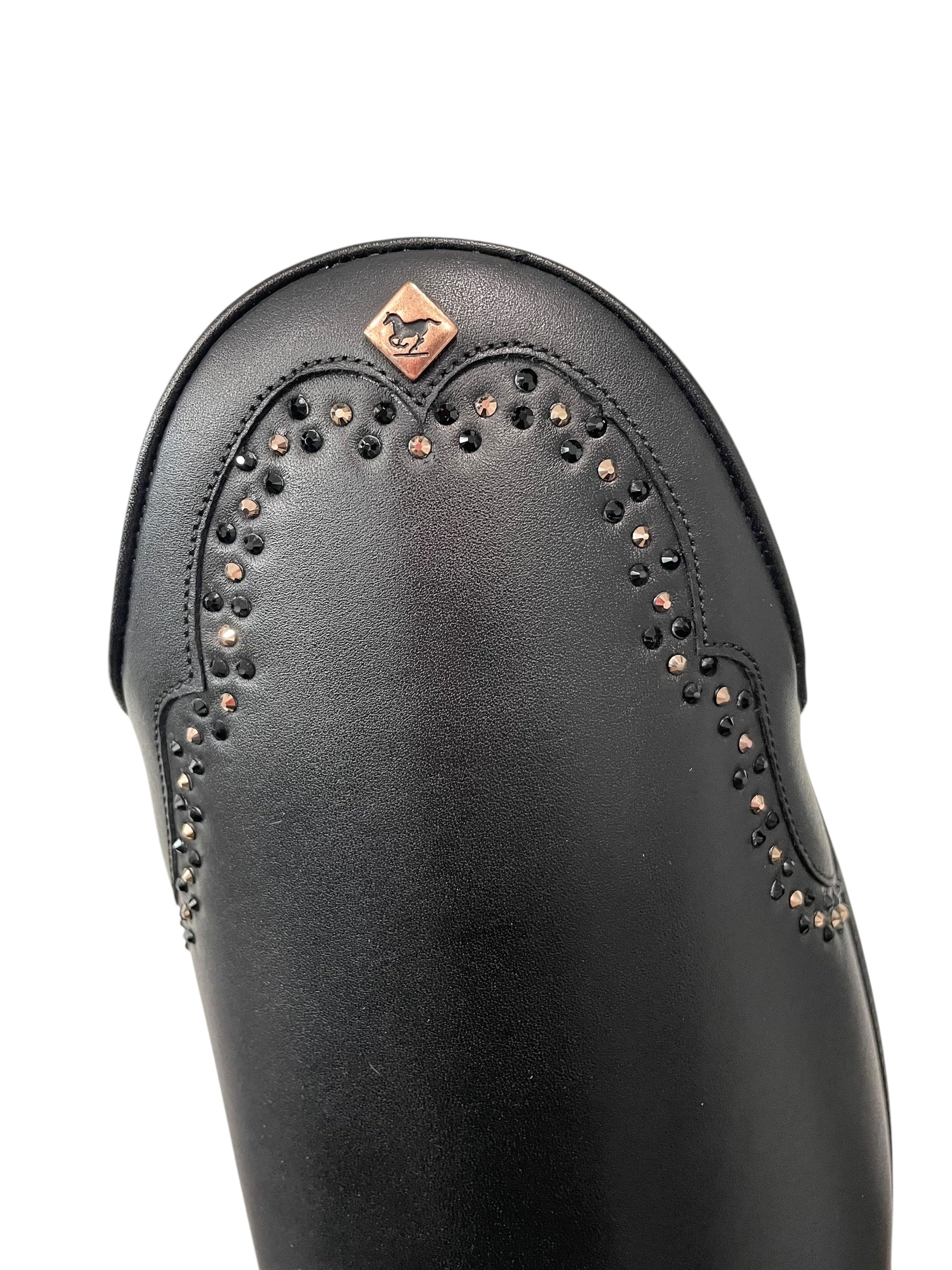 Description: WRAT black base, G33 Codone top in WRAT black with GG05 black and rose gold 2.7 mm Swarovski crystals, rose gold logo, and black outsole.