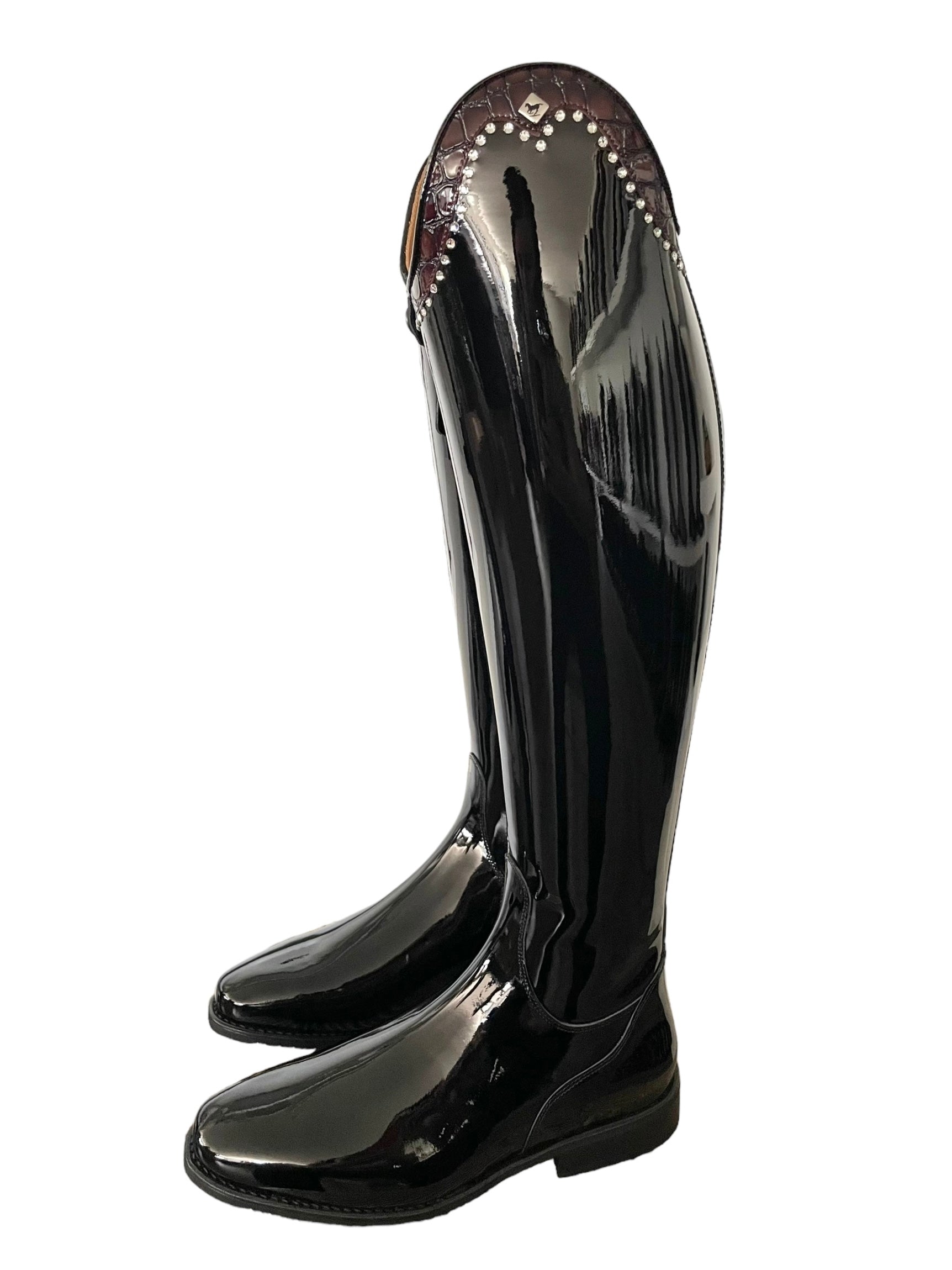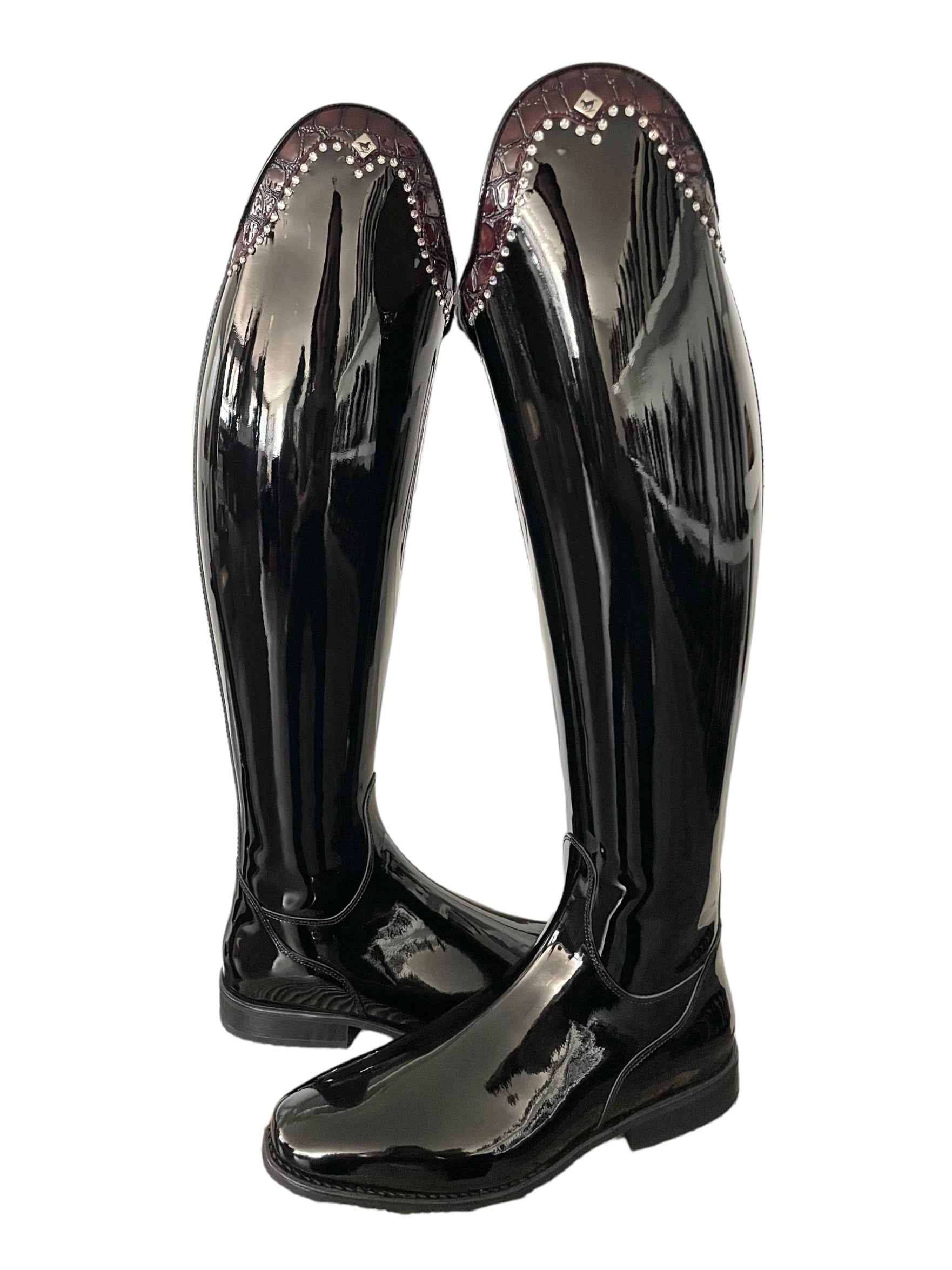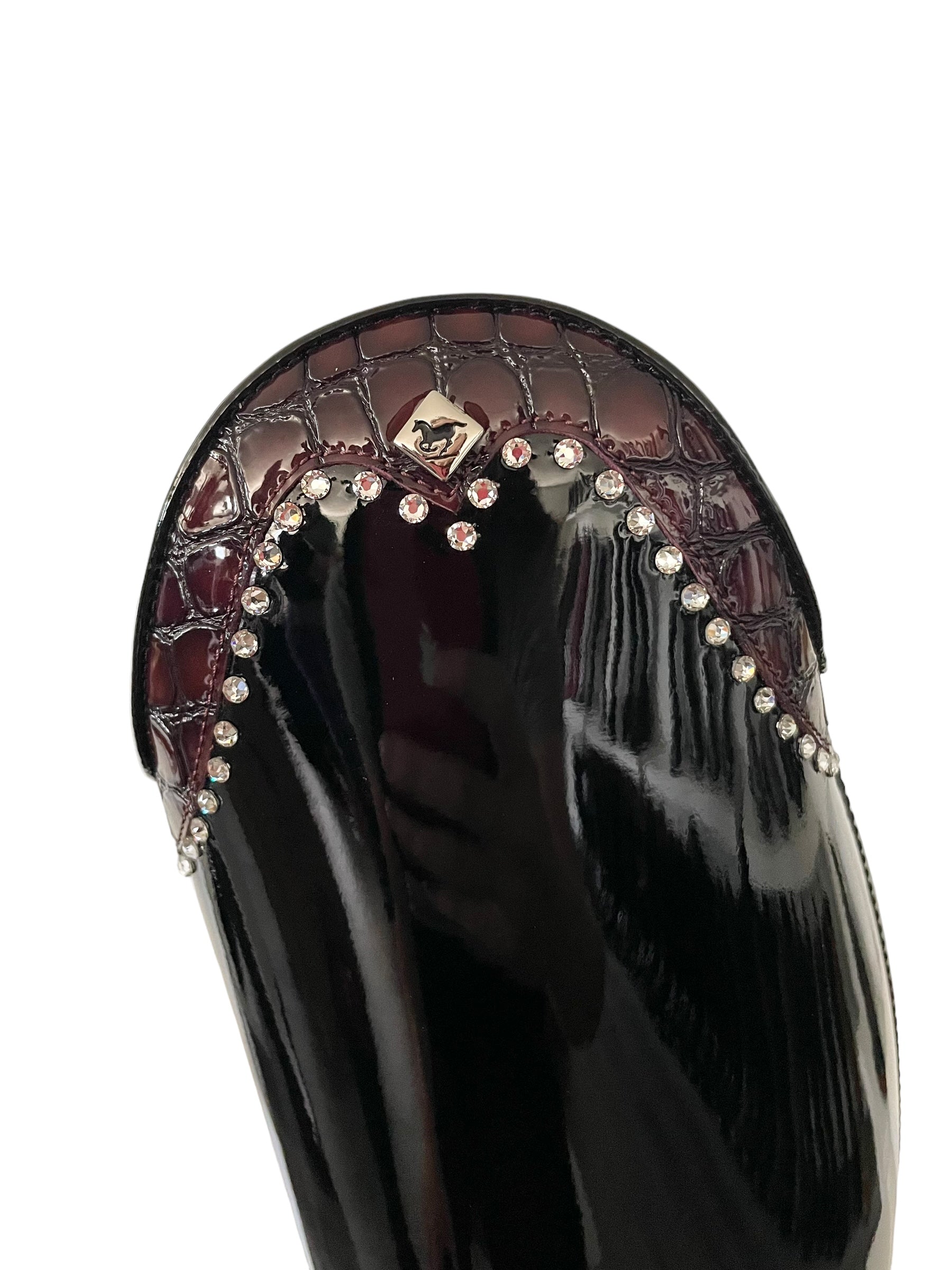 Description: Patent black base, G9 rondine top in lucidi porpora with clear crystals (GG08 in SS16), silver logo, and black outsole.