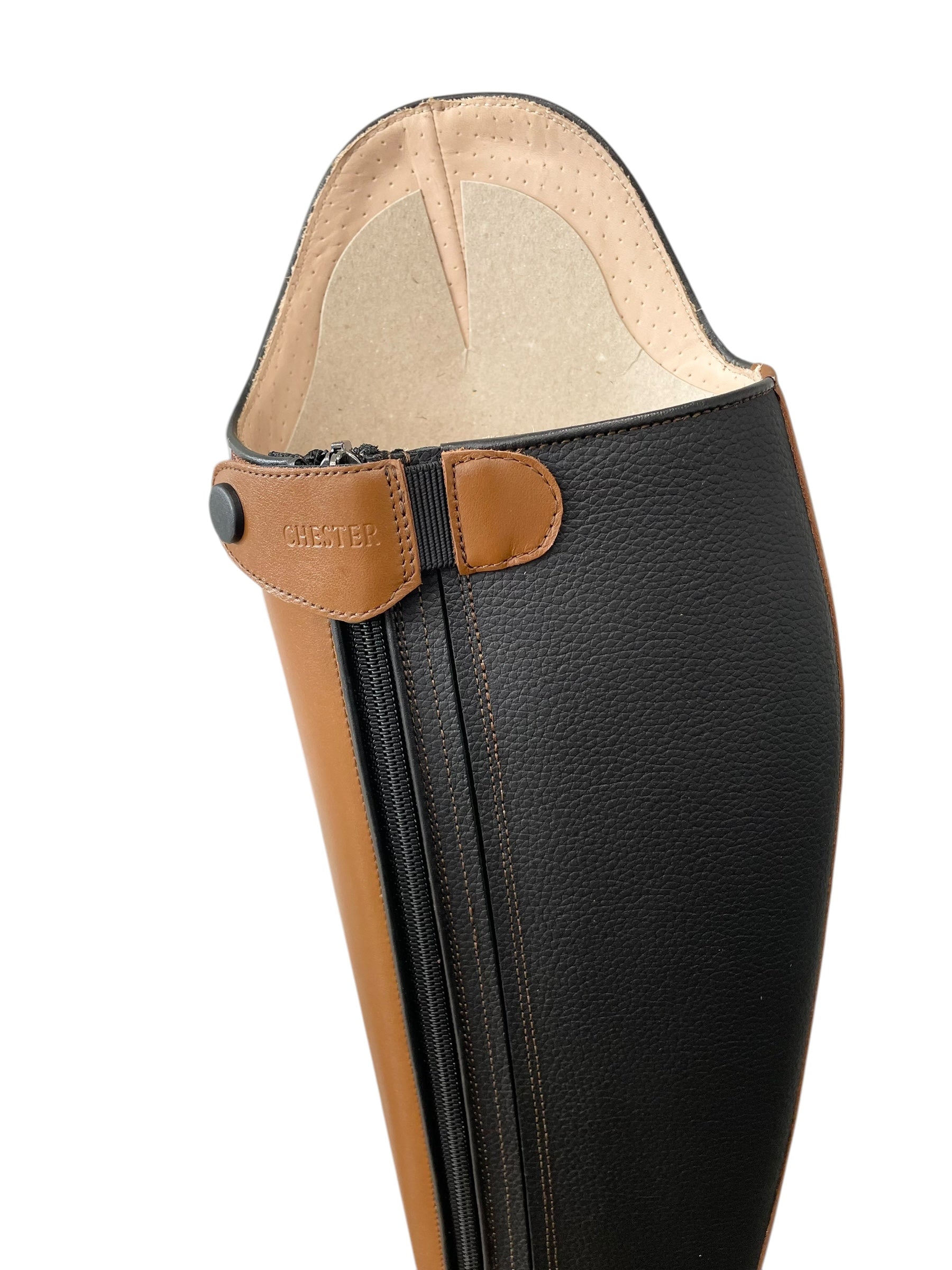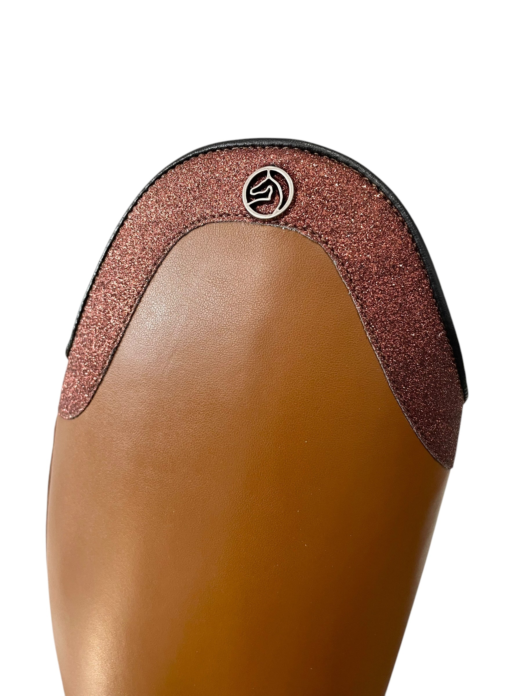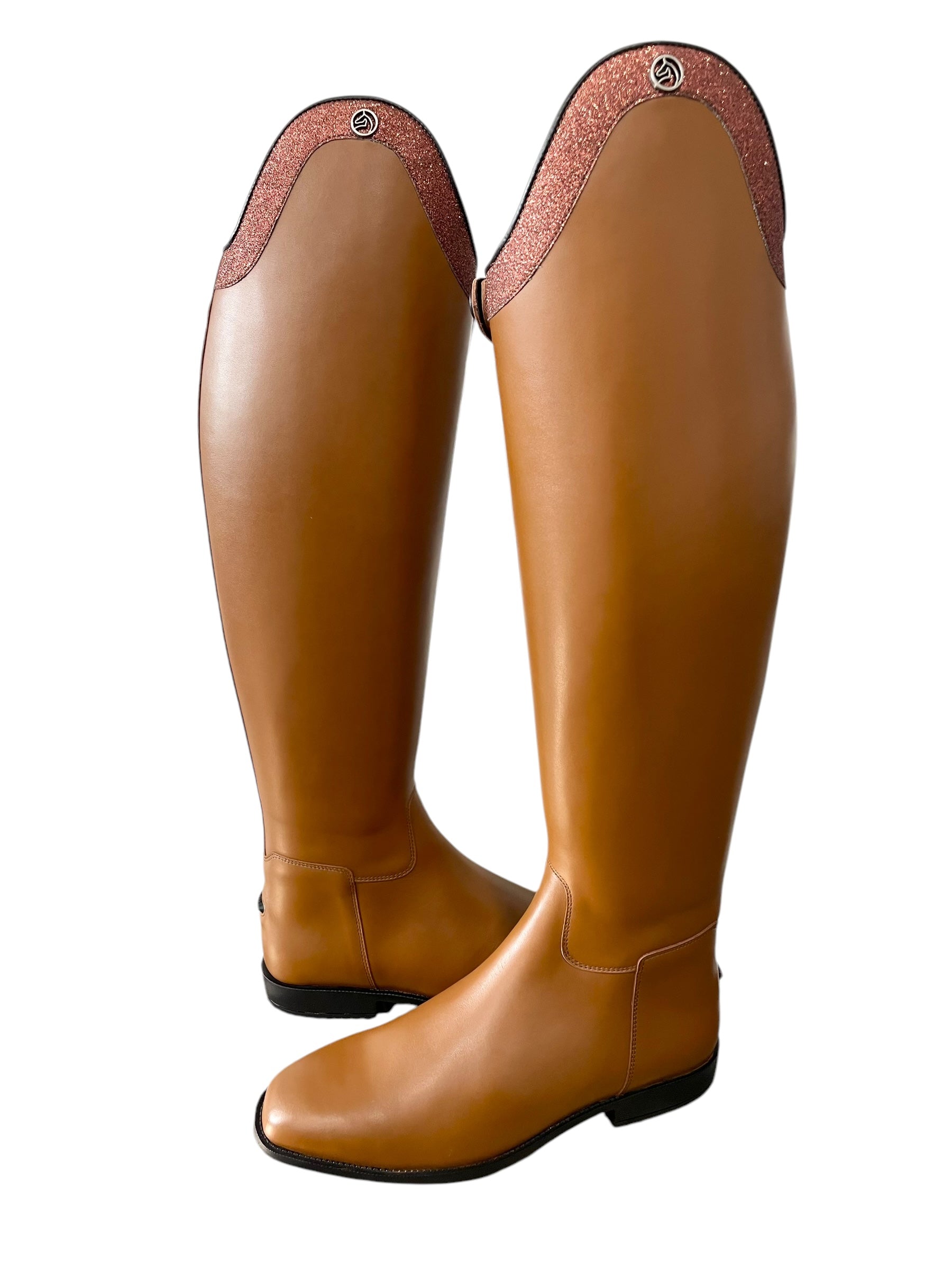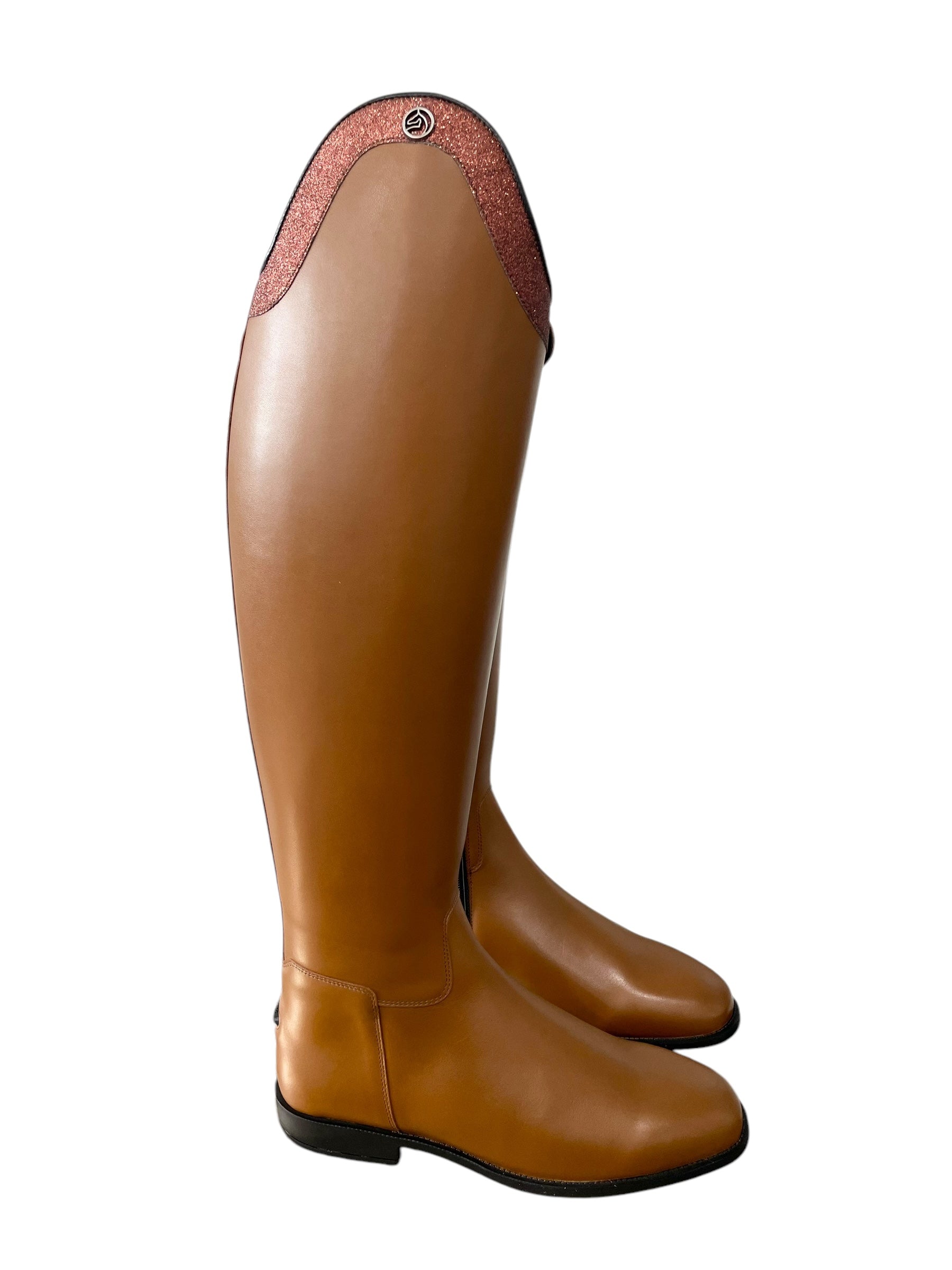 Description: P2 cognac base, T3 top in P36, SR2 spur rests, and black S3 outsole.
