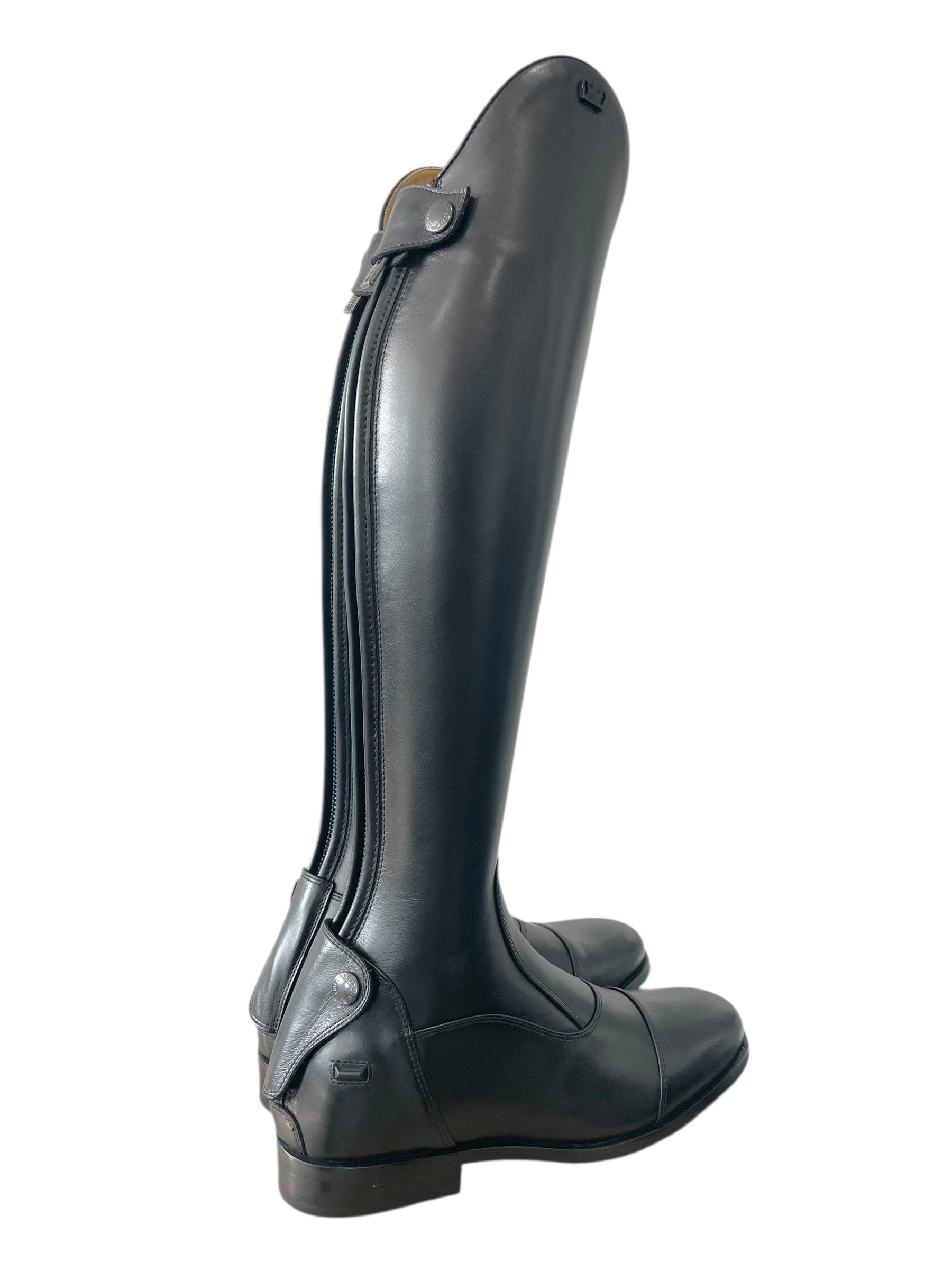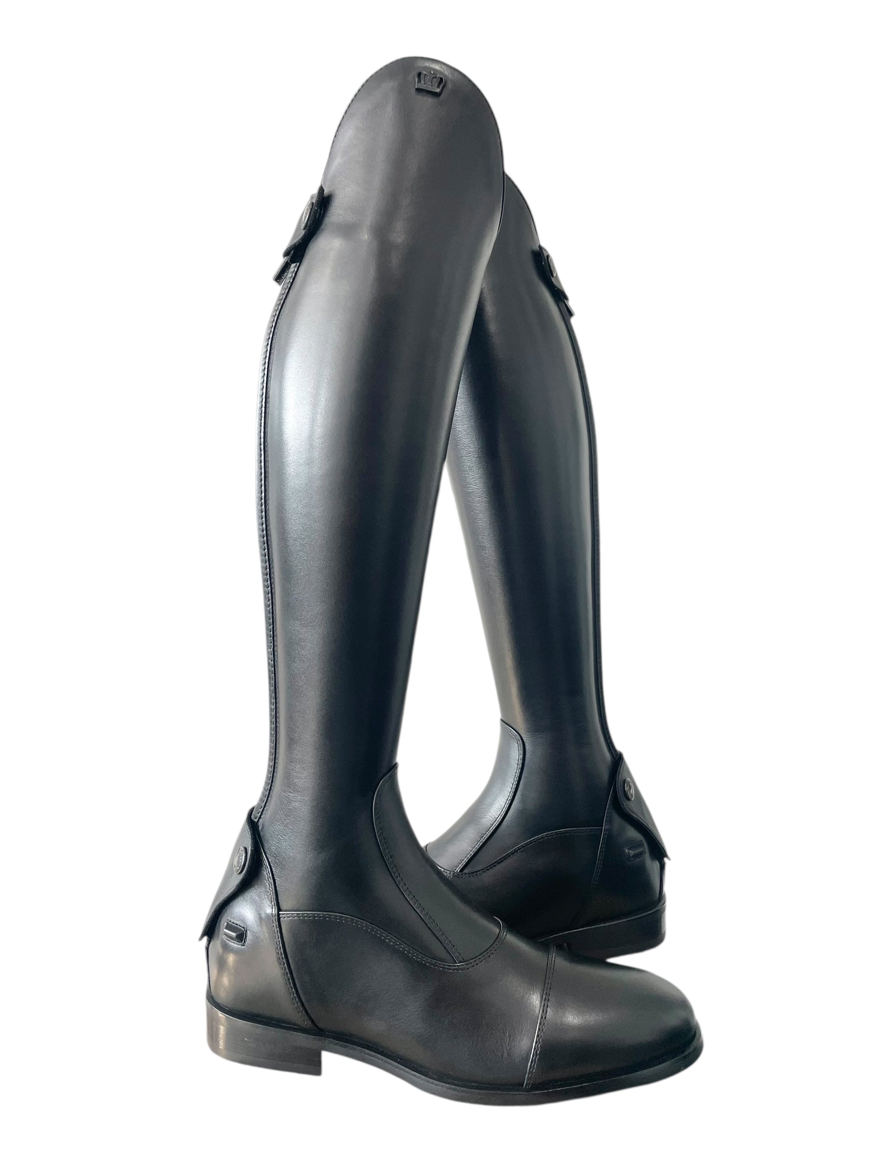 Description: Elastic leather black base, matte black logo crown, and black sole.