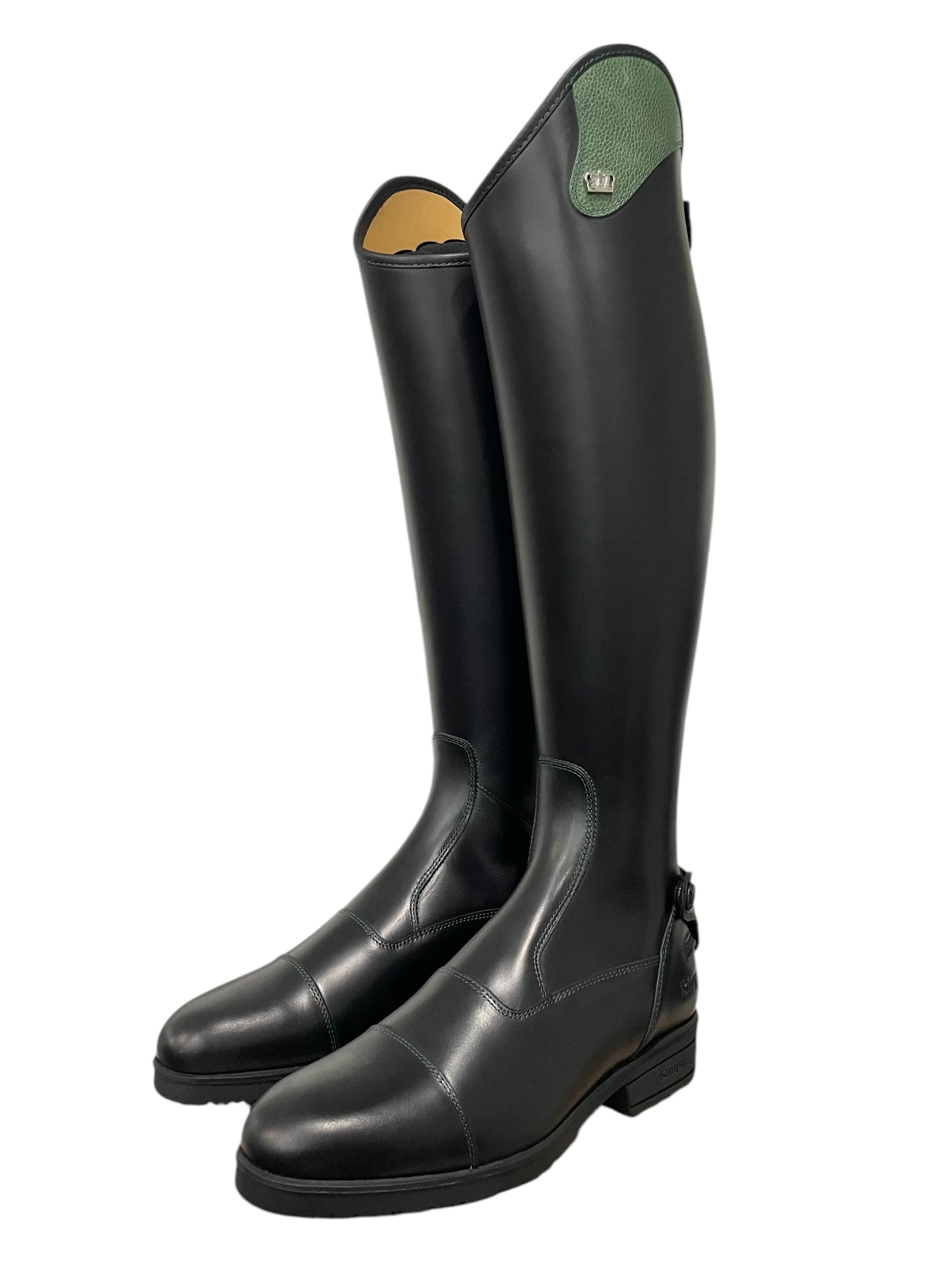 Description: Nature black base, paxson green top, dark emerald stitching, silver logo crown, black elastic, and black outsole.