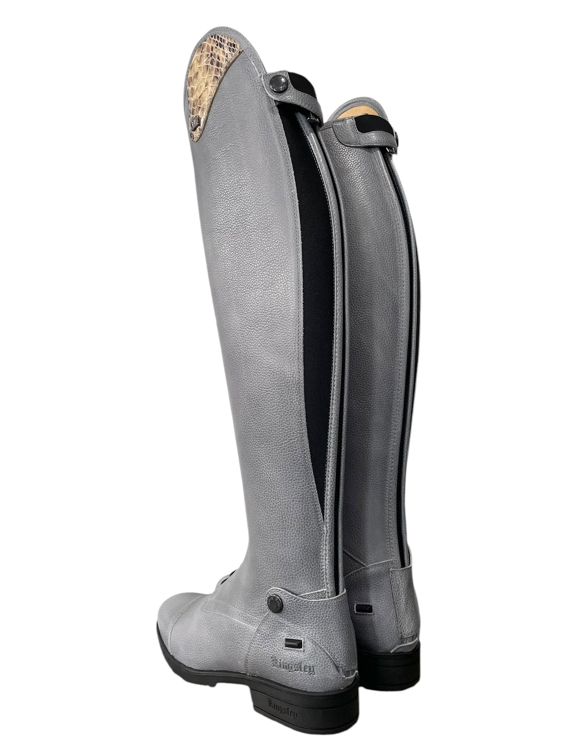 Description: Paxson grey base, top in python special creme, black laces, polished black logo crown, and black outsole.