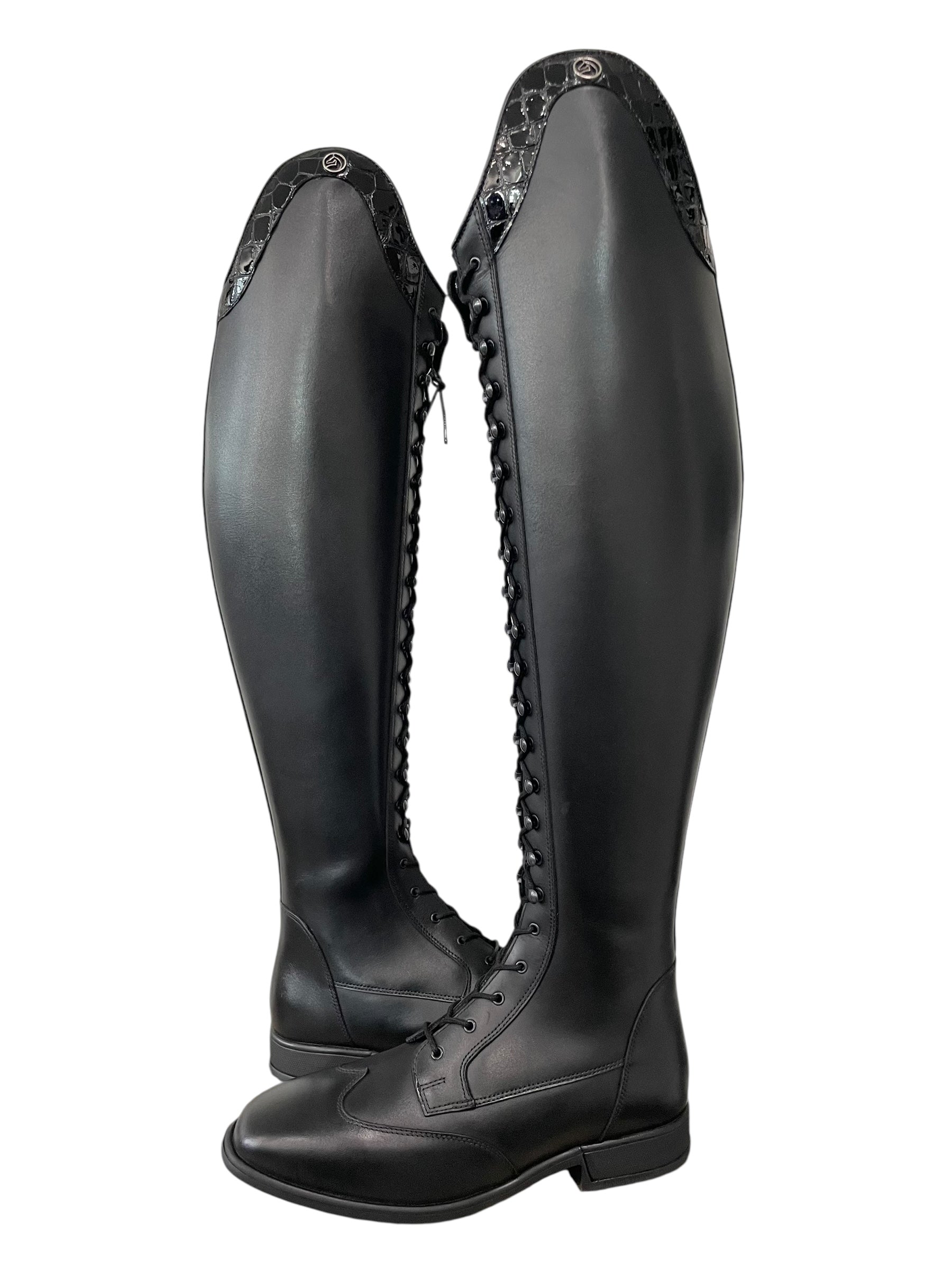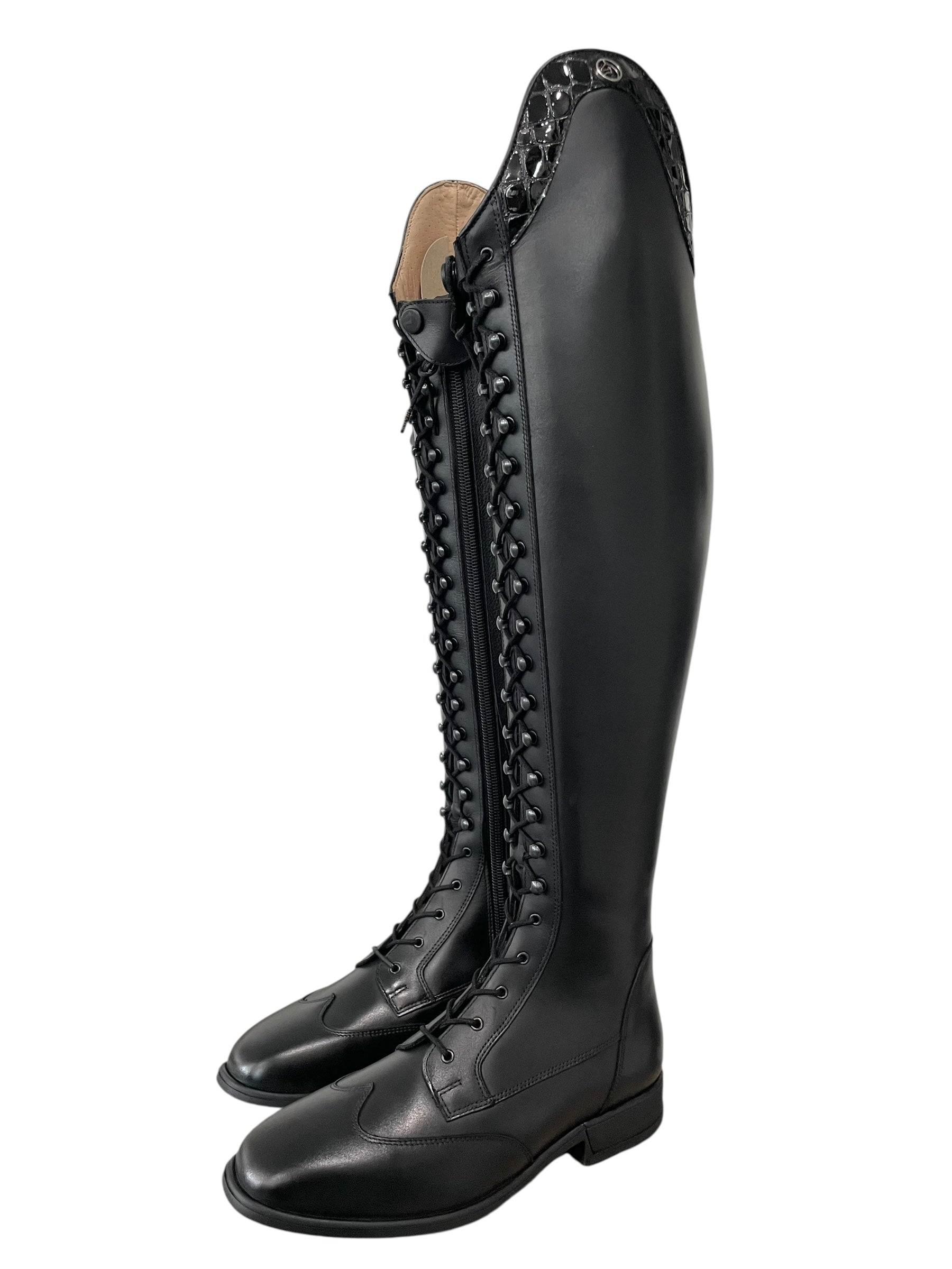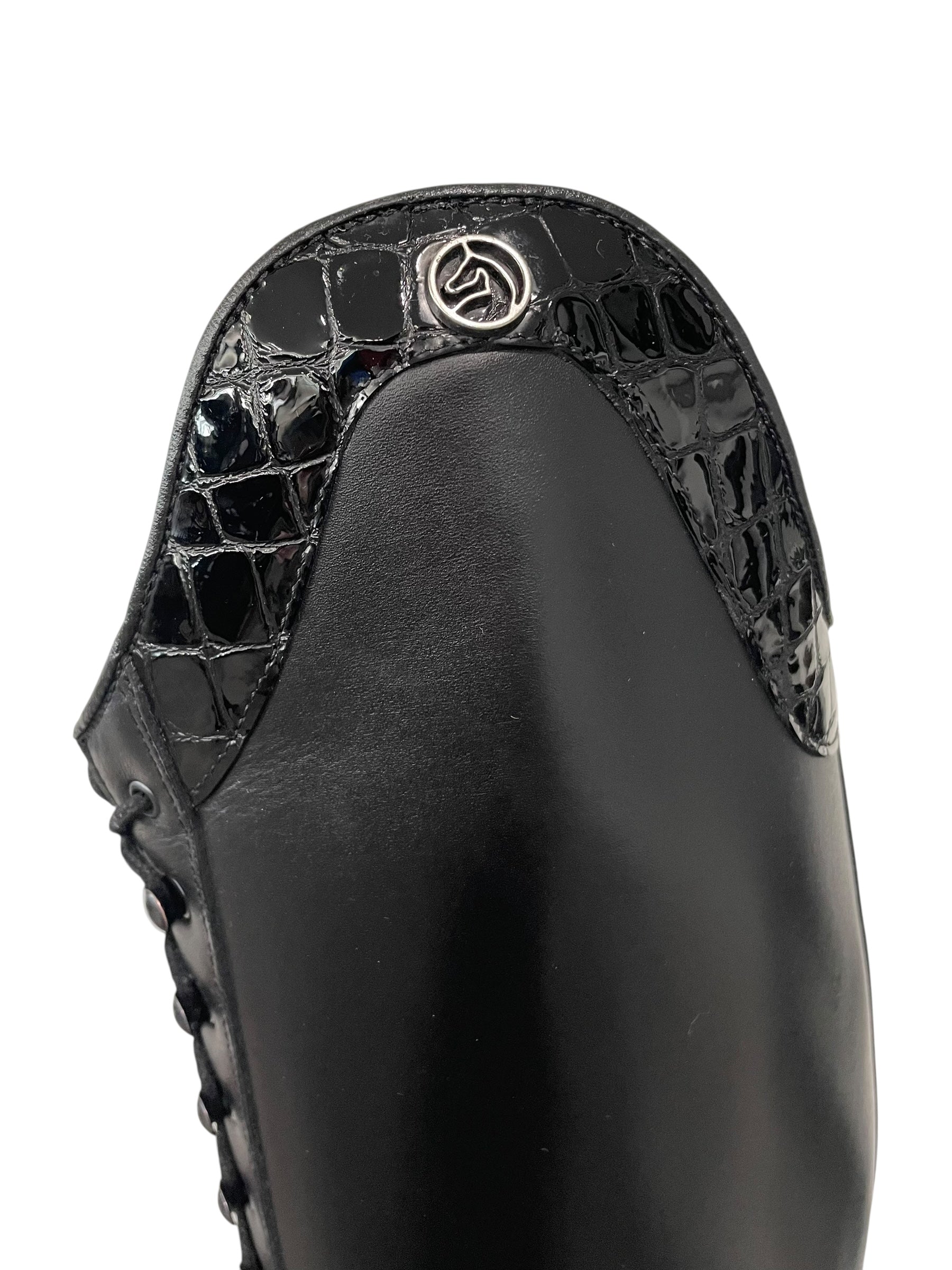 Description: P4 black base, T3 top in black patent croc, black laces, B2 toecap, and S2 outsole.