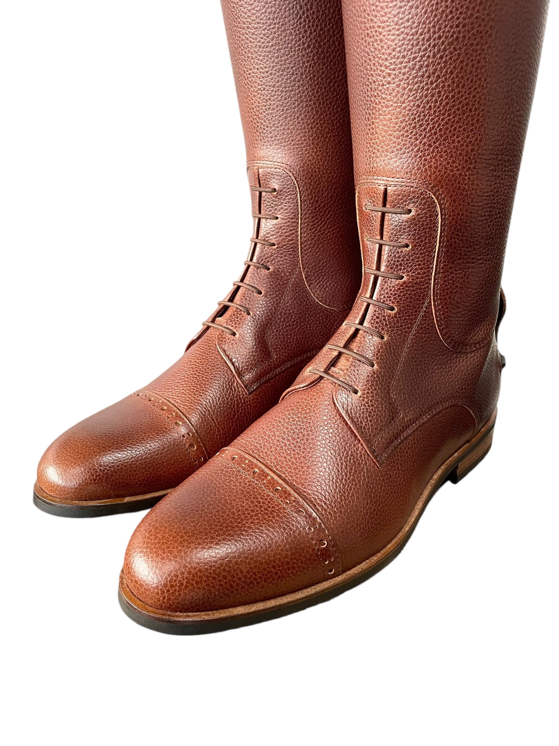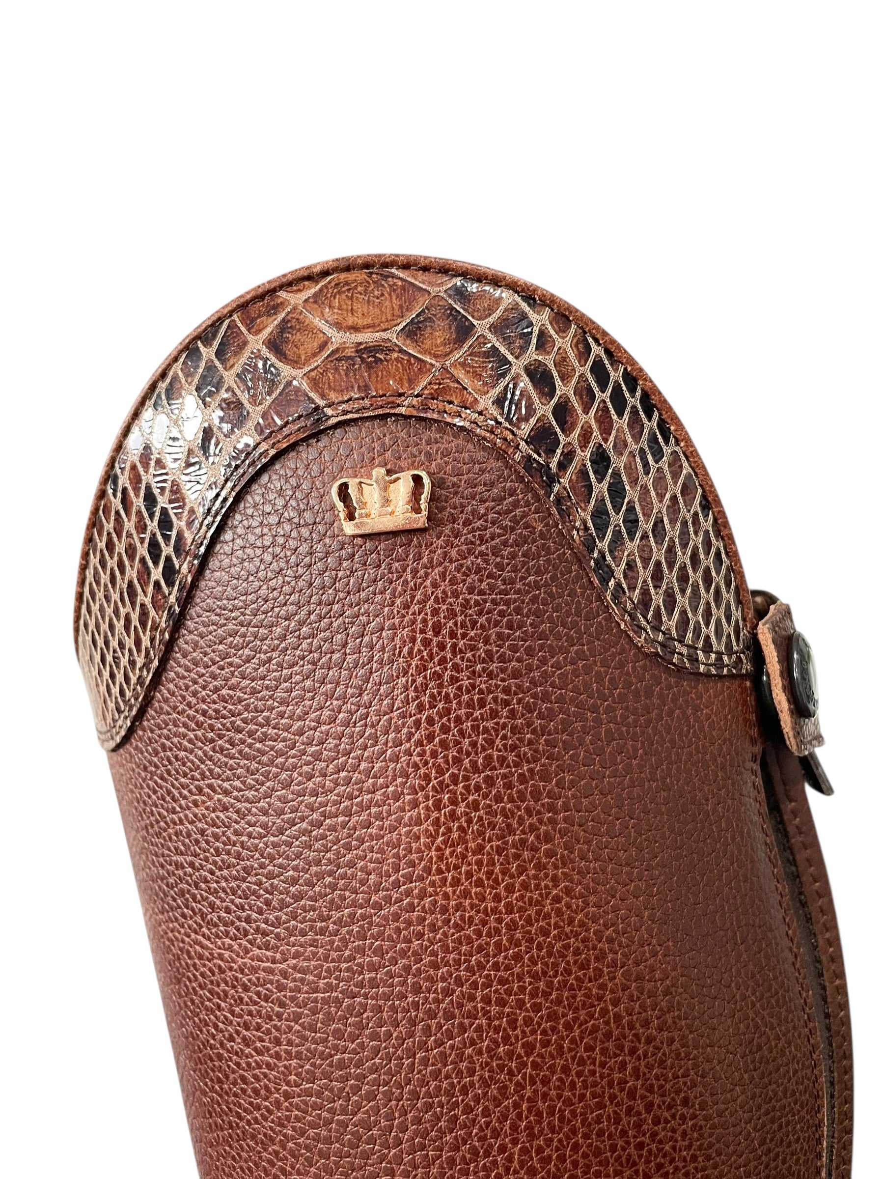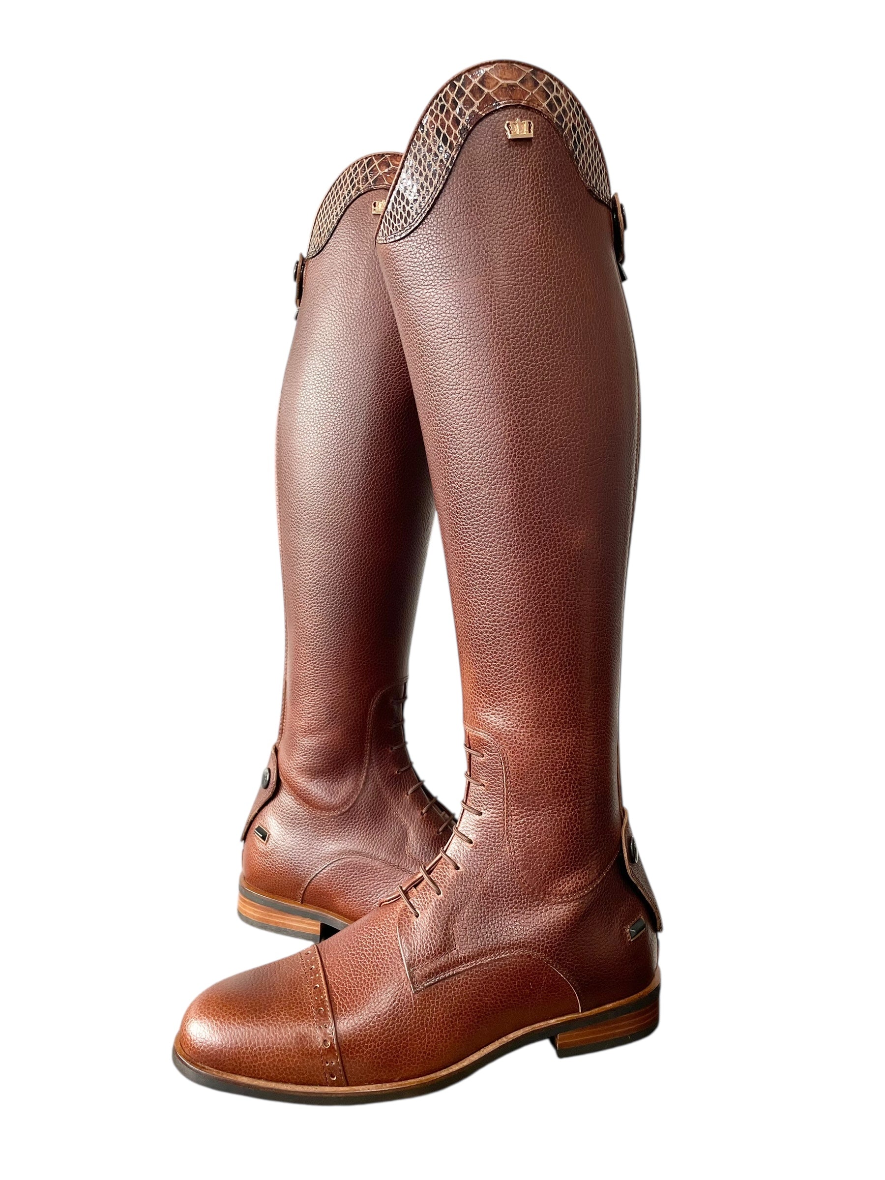 Description: Paxson chestnut base, Jenny top in python special brown, toecap with brogues, brown laces, brown elastic, rose gold logo crown, and brown sole.
