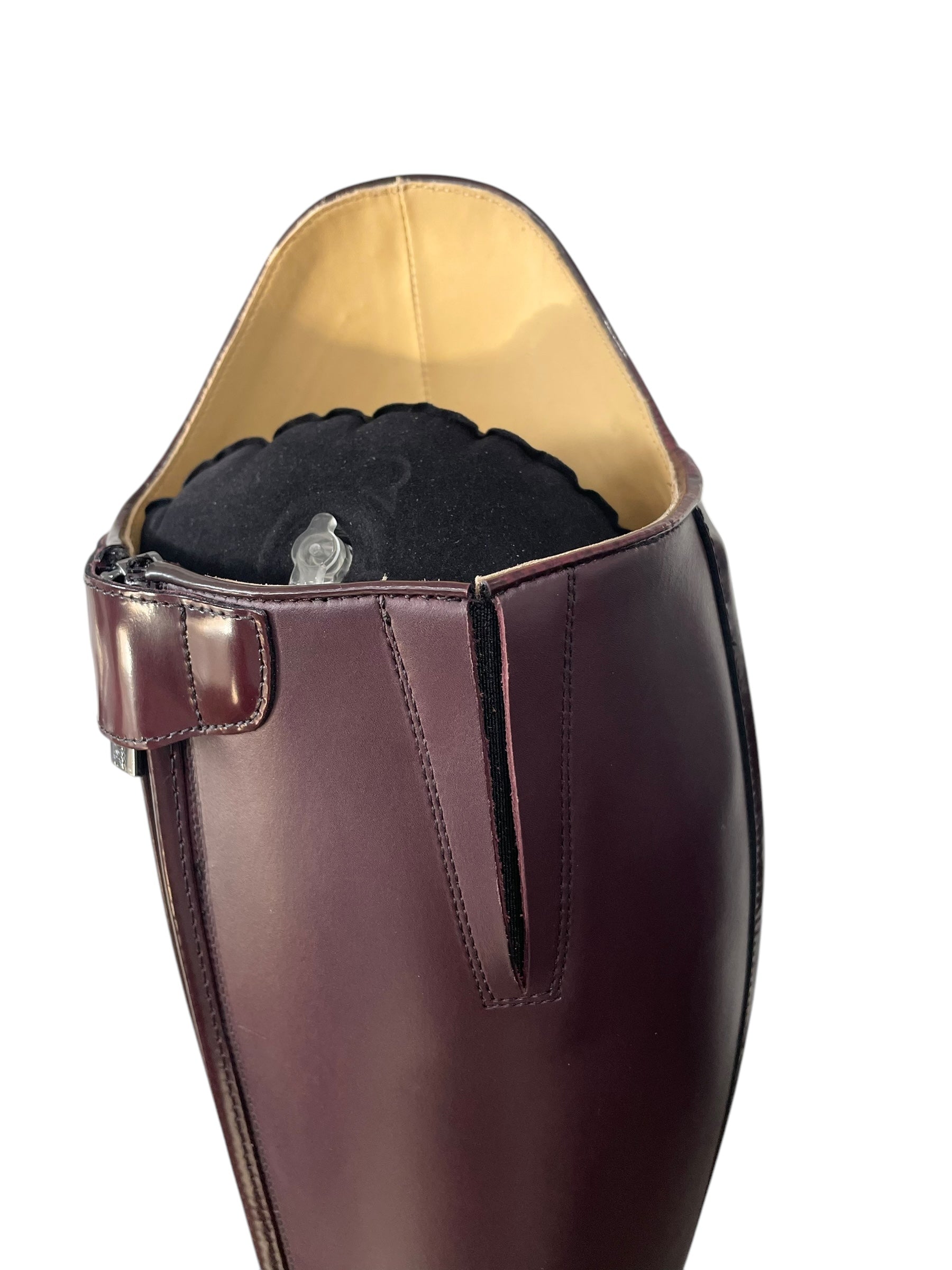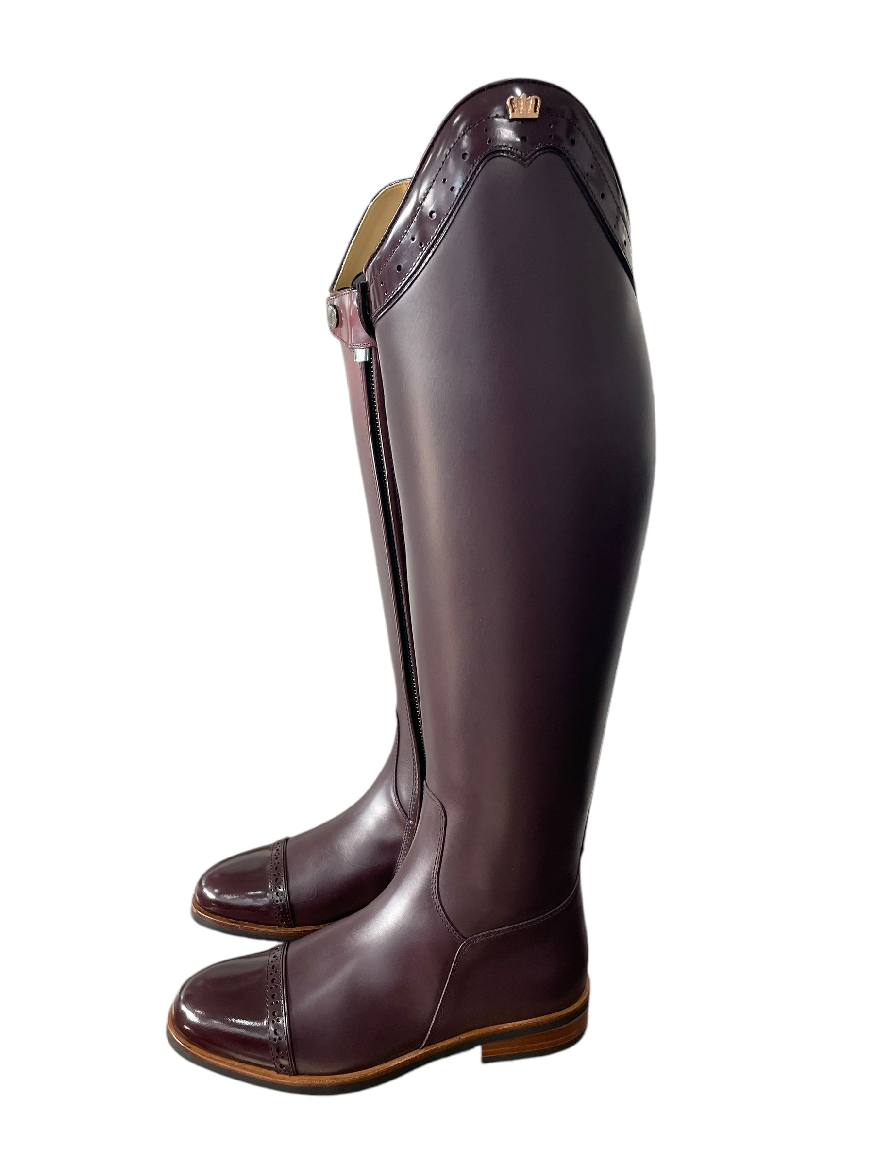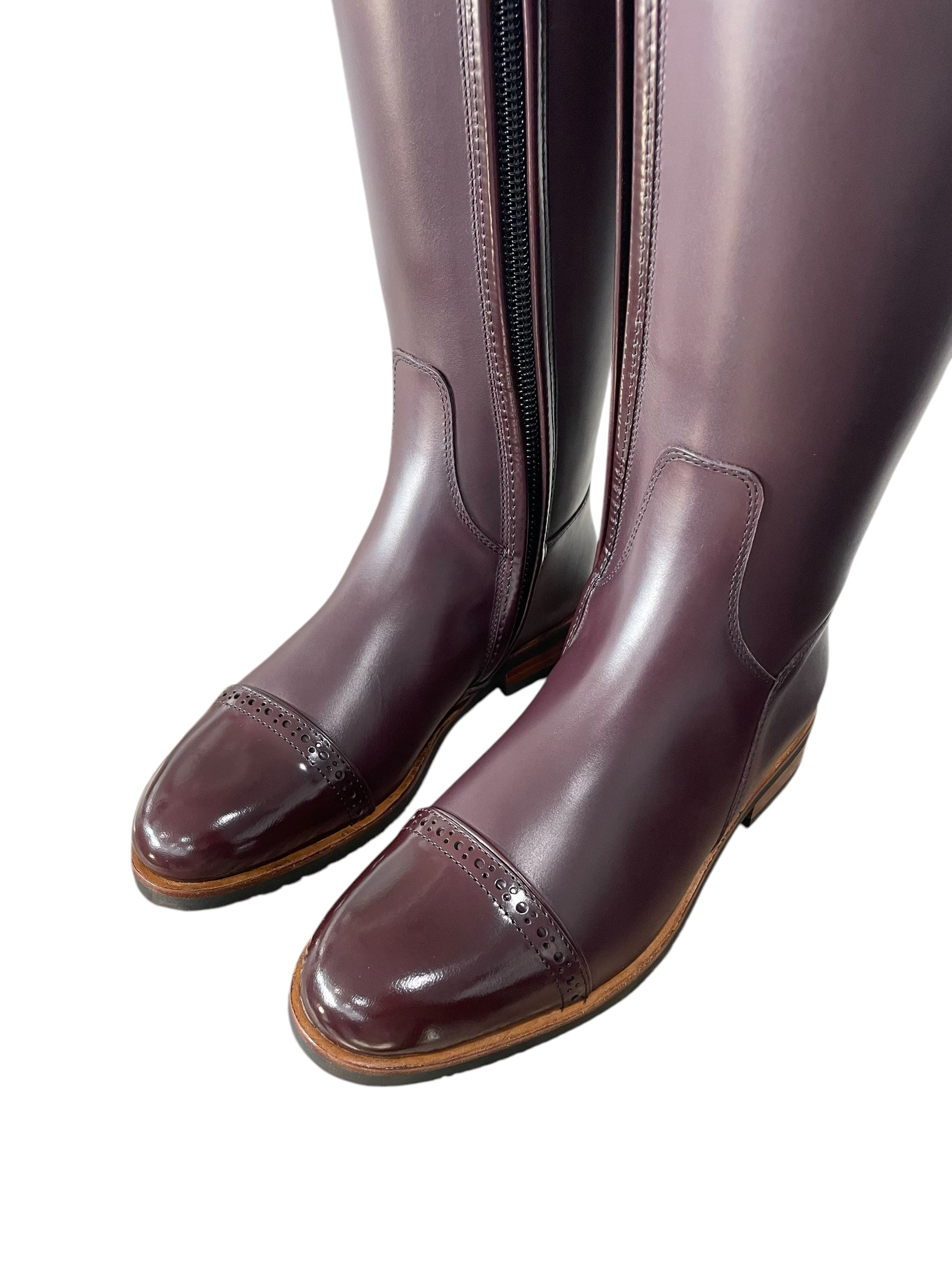Description: Nature bordeaux base, Ziva top in uragano bordeaux with brogues, uragano bordeaux toecap with brogues, v-gusset on the inside, uragano bordeaux parts along the zipper and zip protectors, uragano bordeaux back stripe, rose gold logo crown, and brown outsole.