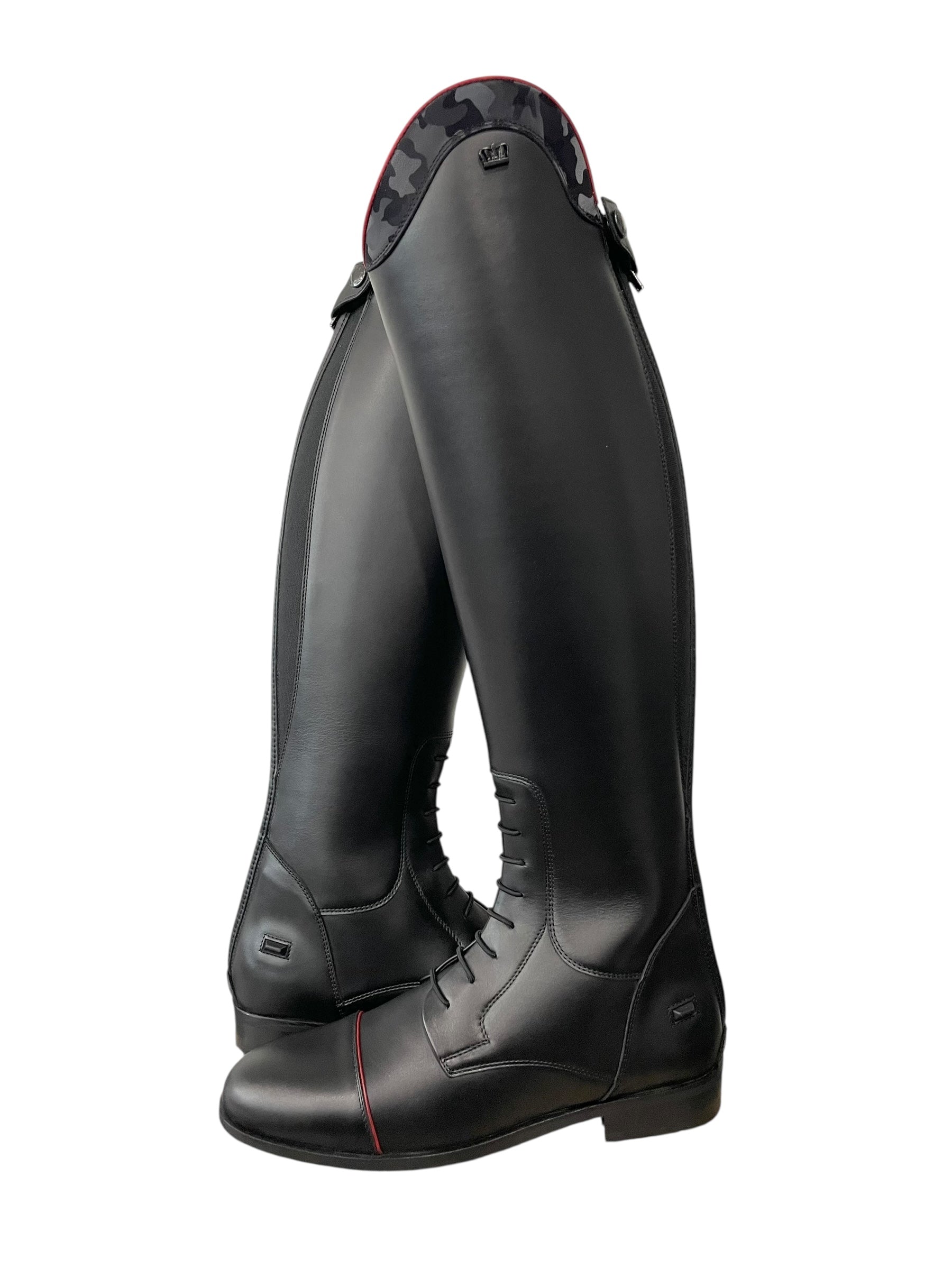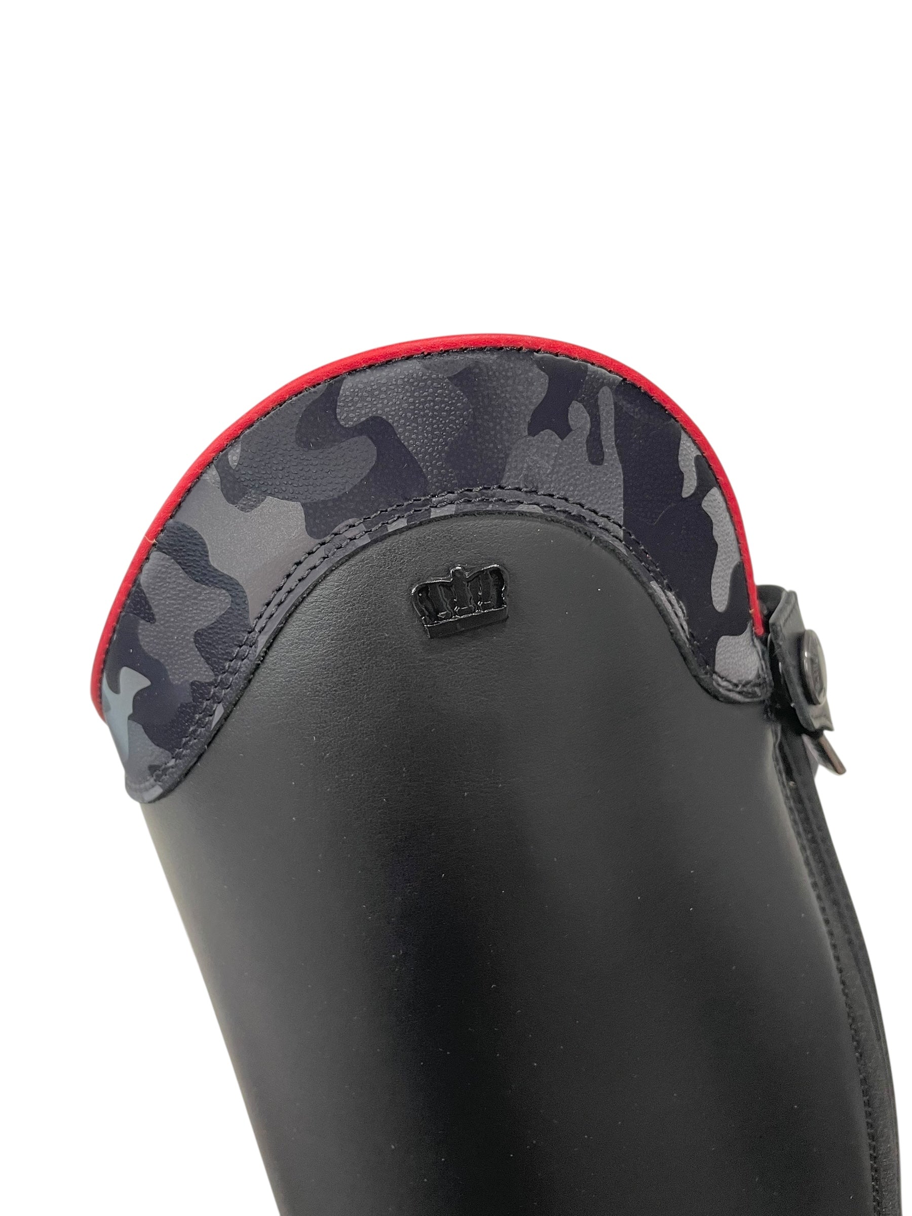 Description: Aspen black base, Jenny top in camouflage navy with nature red piping, toecap with nature red piping, black laces, black elastic, matte black logo, and black outsole.