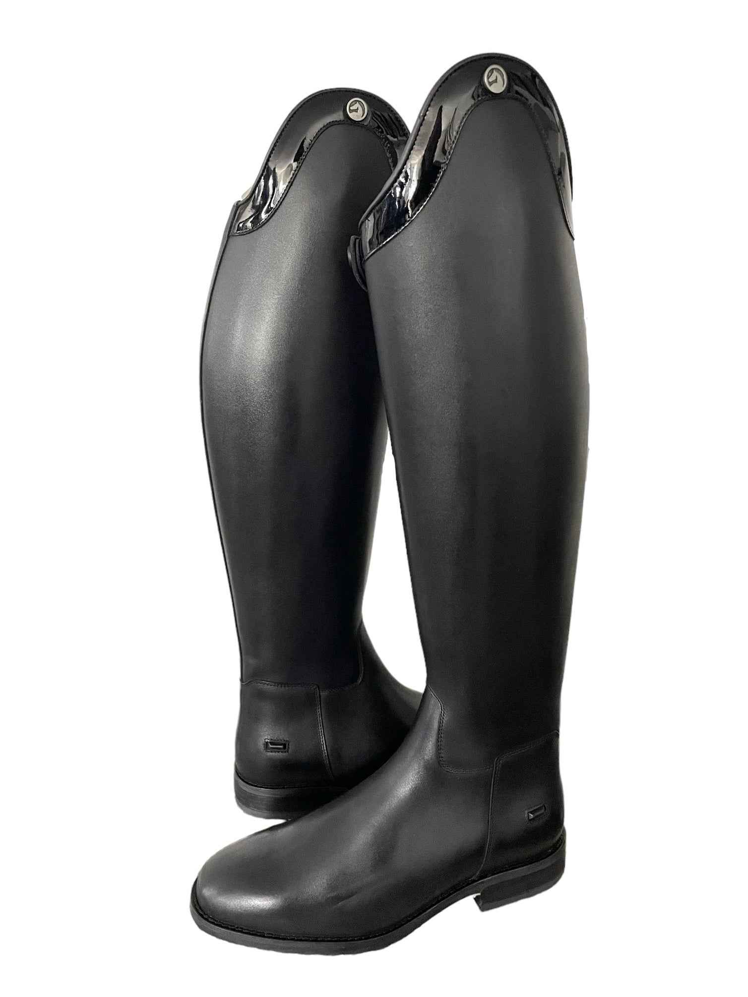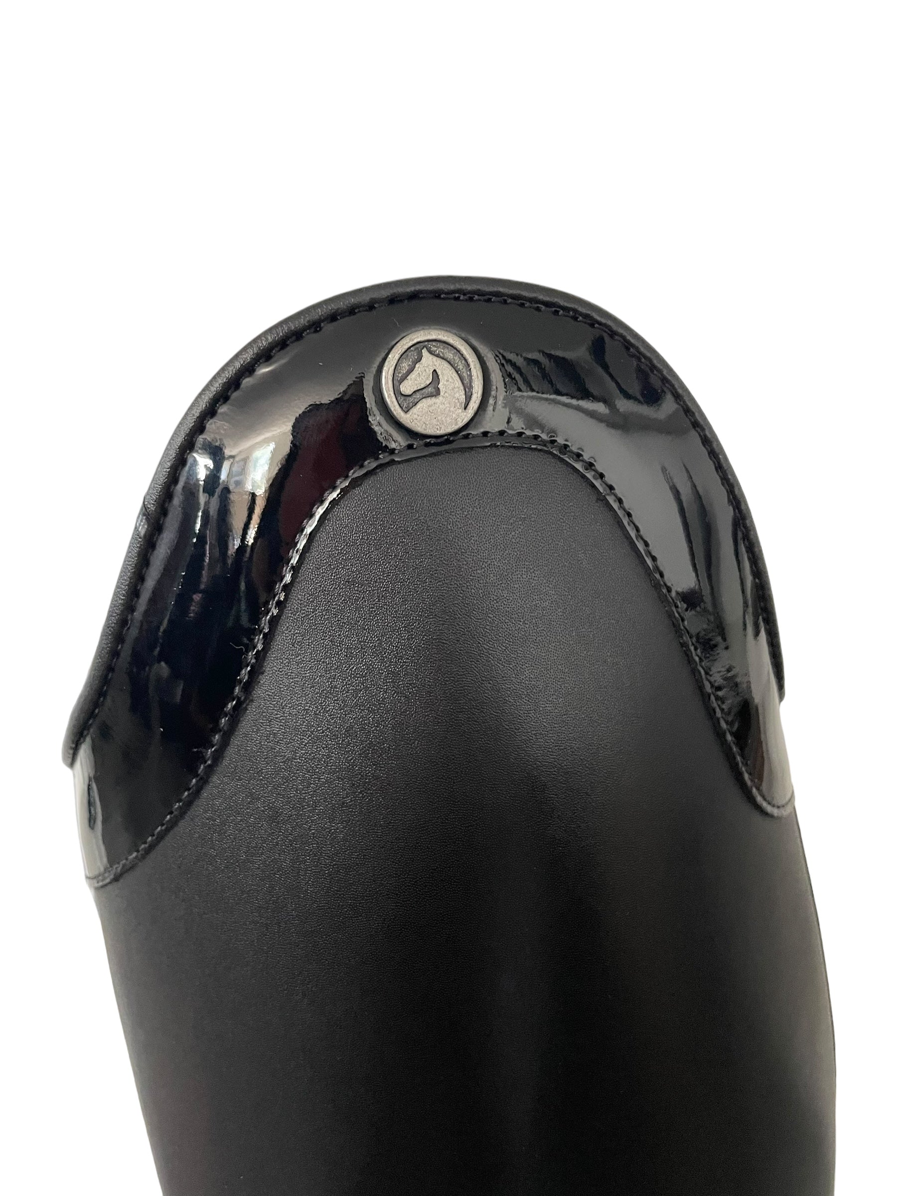 Description: Black base, T3 top in black patent, S3 spur rests, and black S1 outsole.